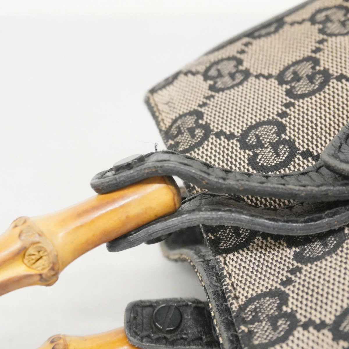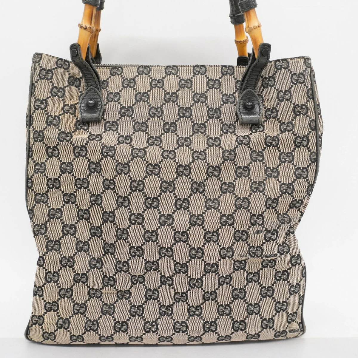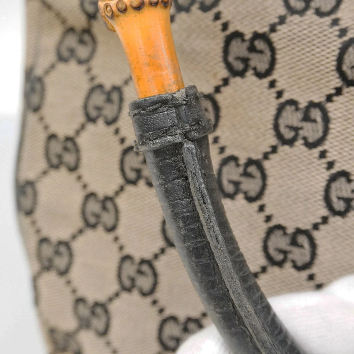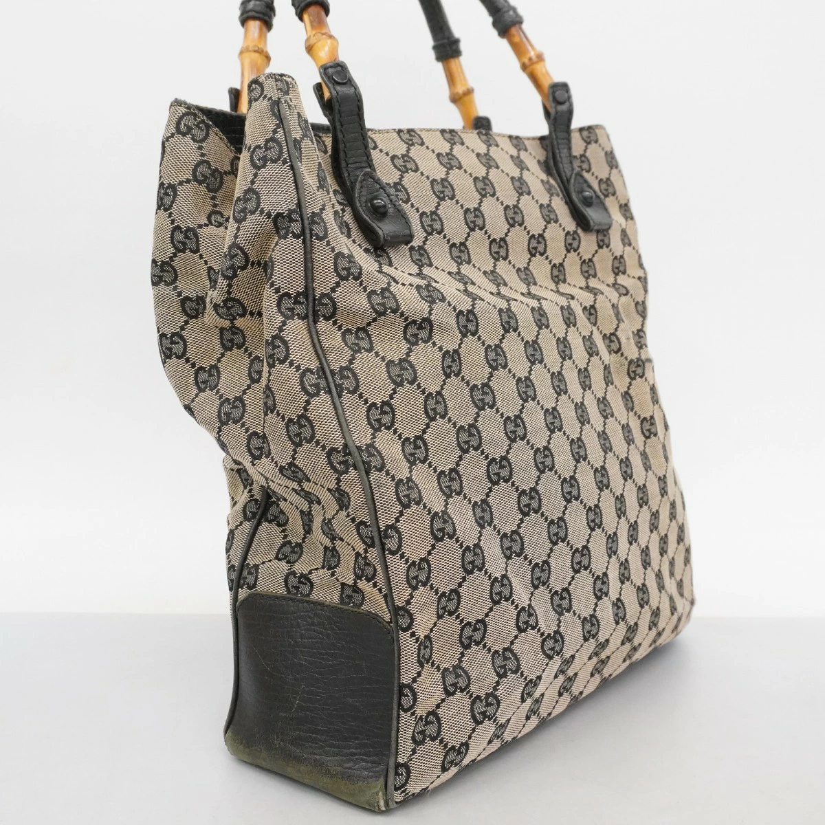 【5of6438】グッチ トートバッグ GGキャンバス/バンブー 112530 キャンバス ブラック ベージュ シルバー金具【中古】レディース
