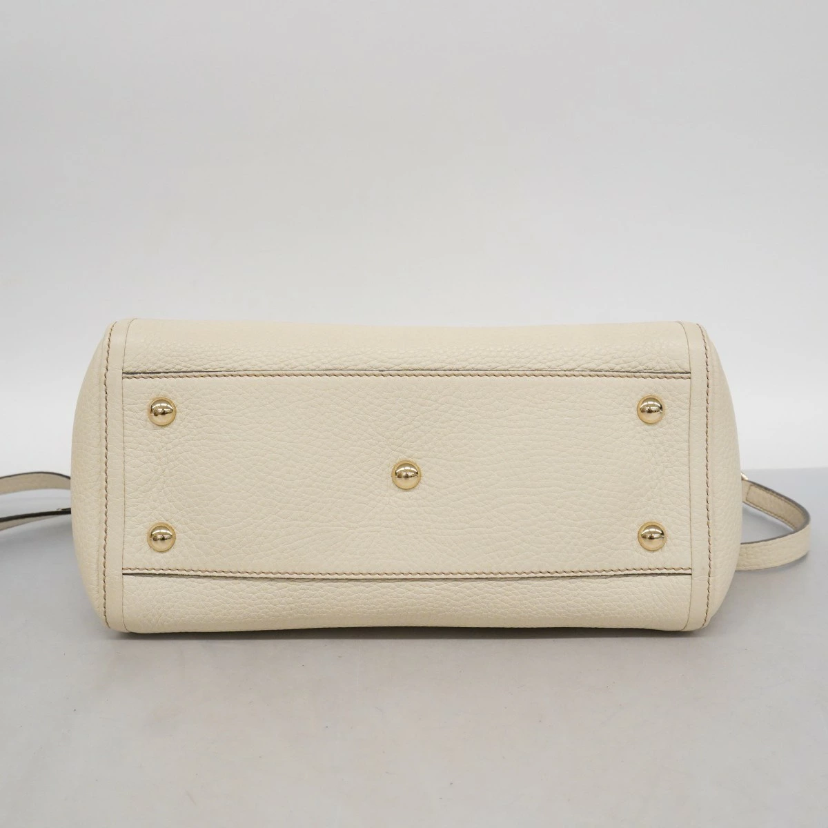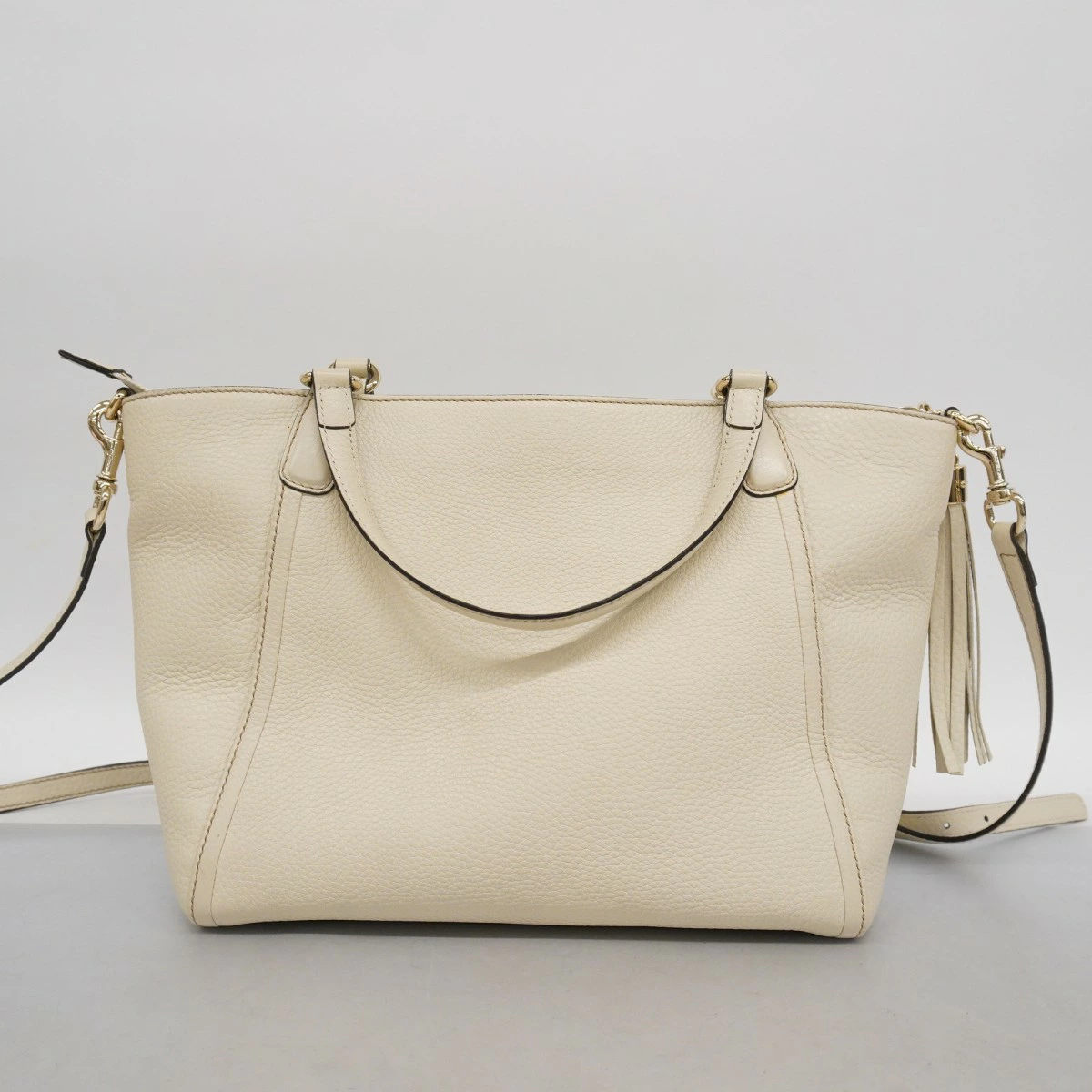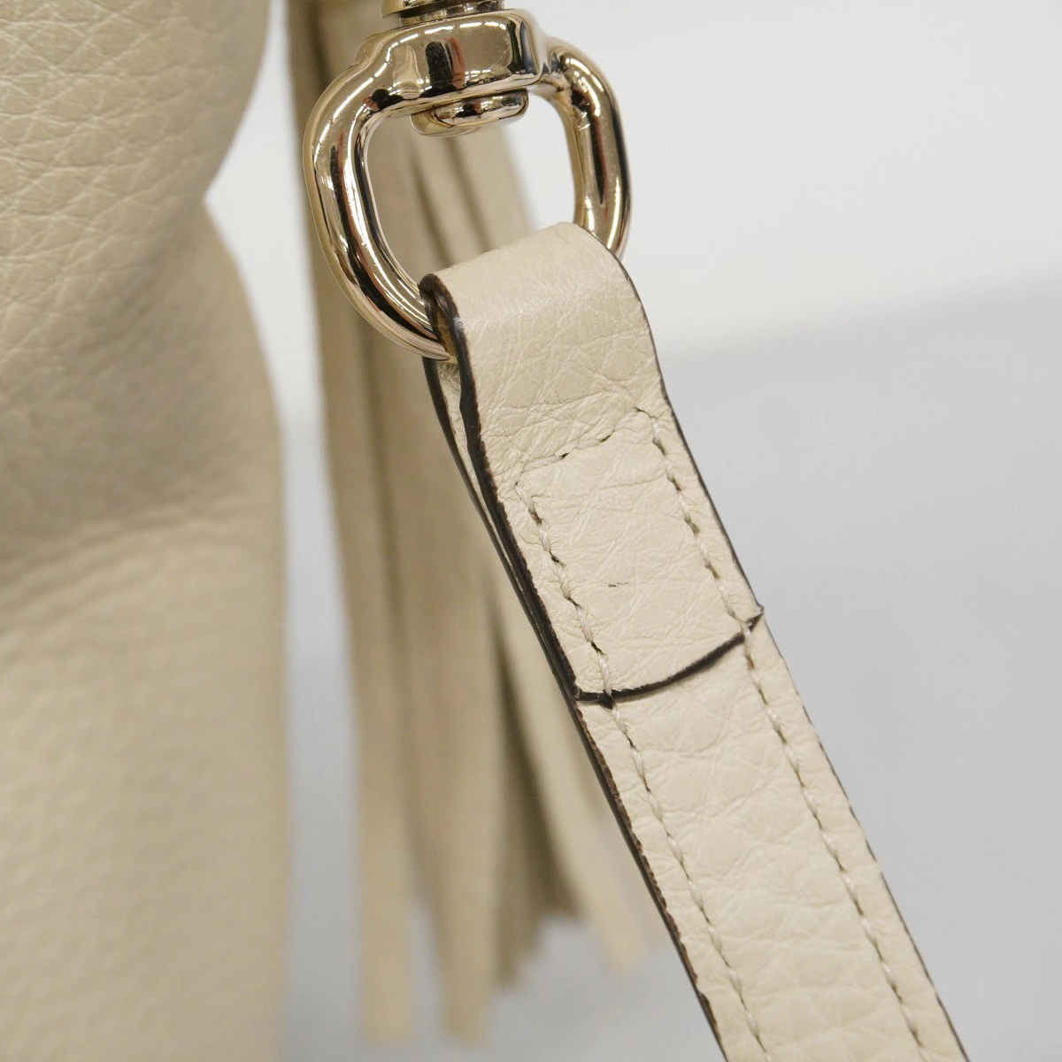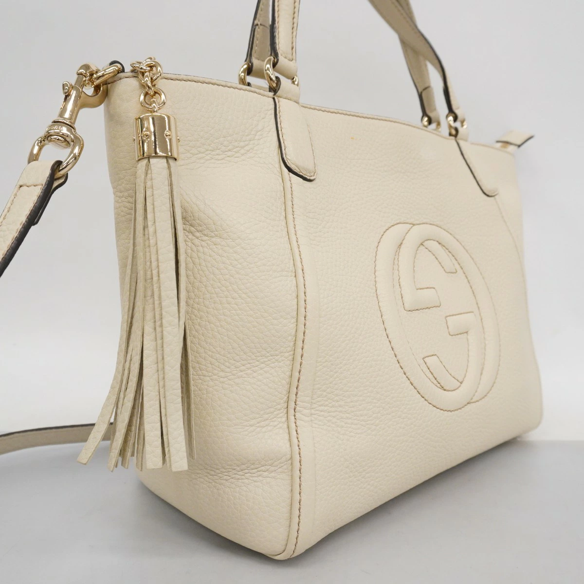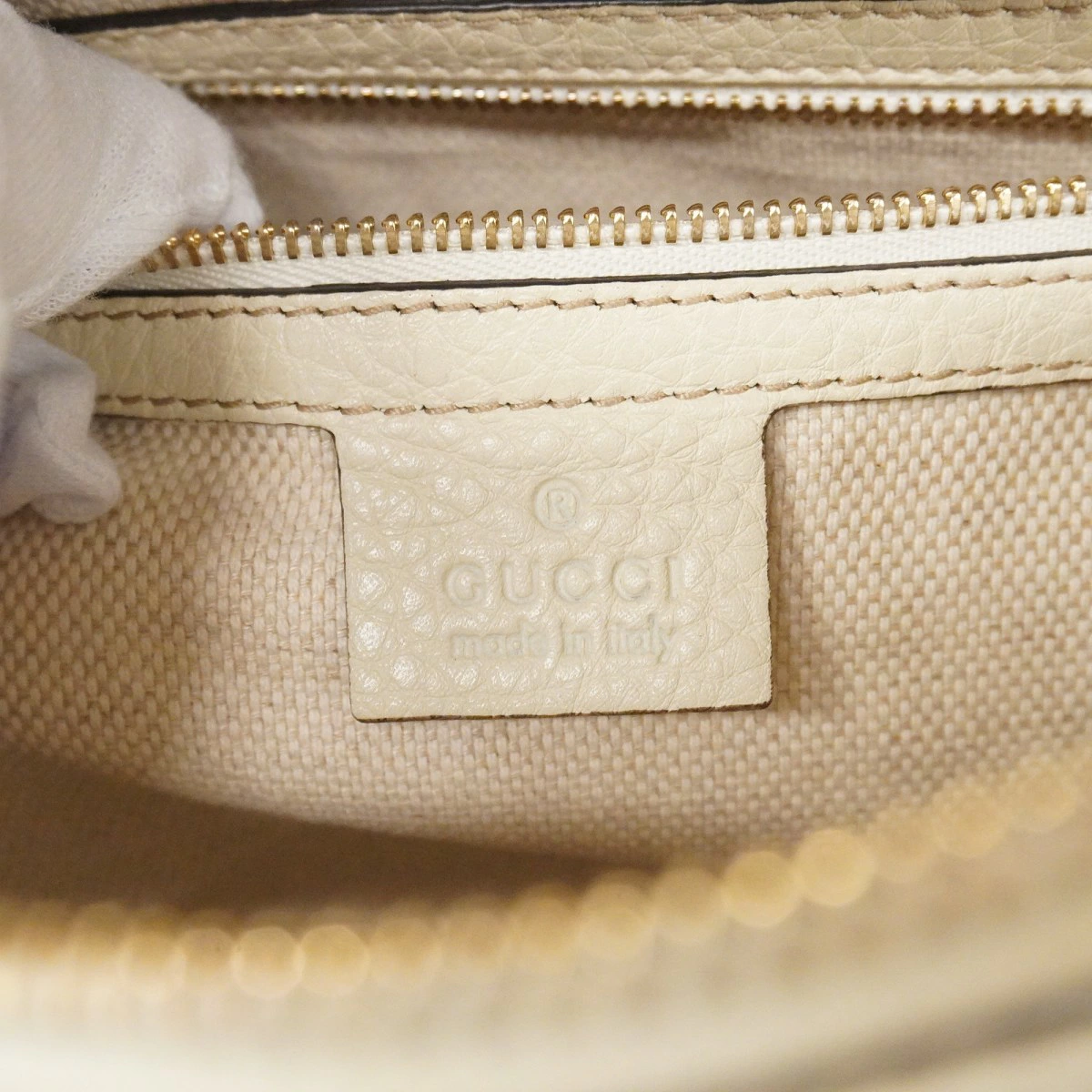 [5of6440] Gucci Soho Handbag 369176 White Leather with Champagne Gold Hardware, 2-Way Bag [Pre-owned] Women's