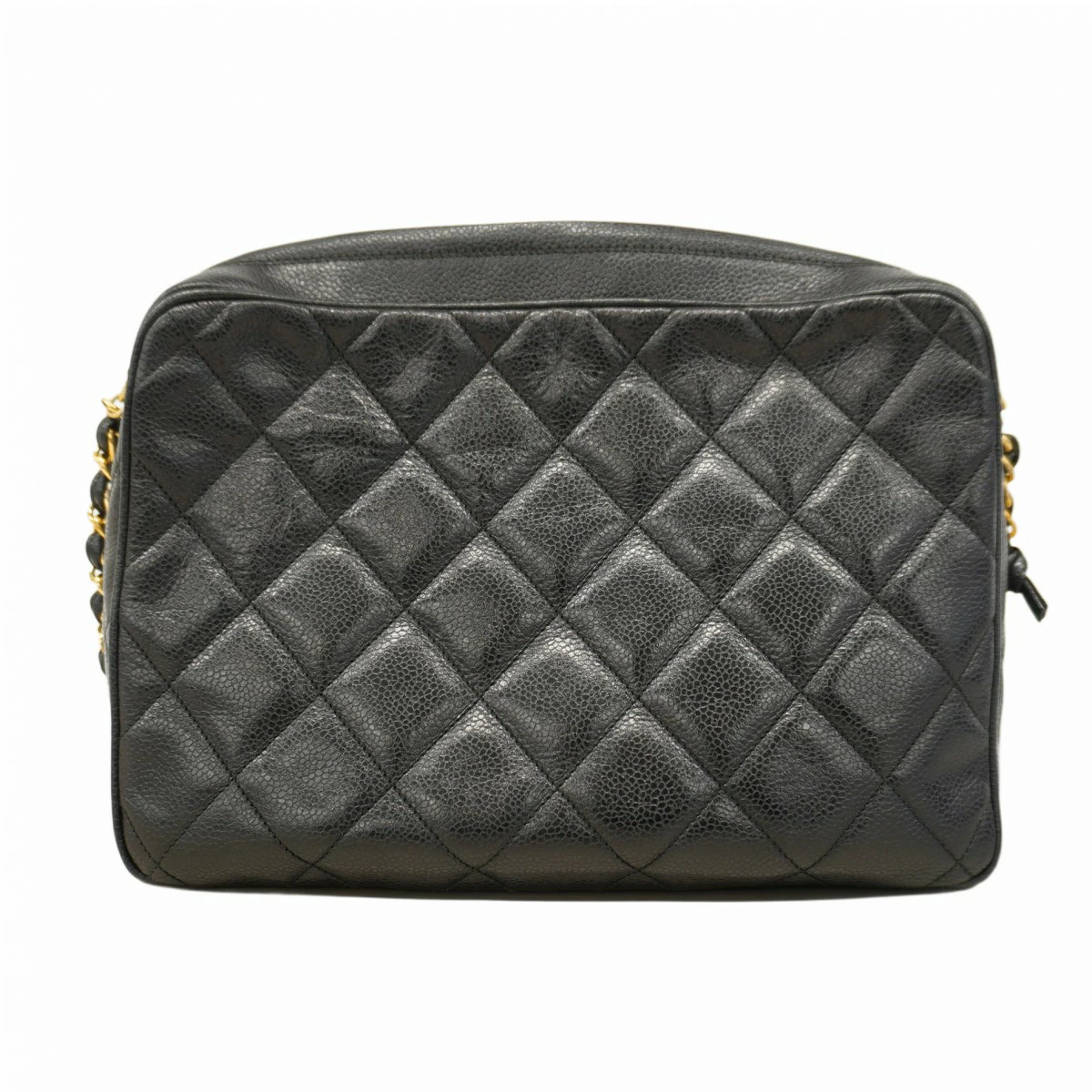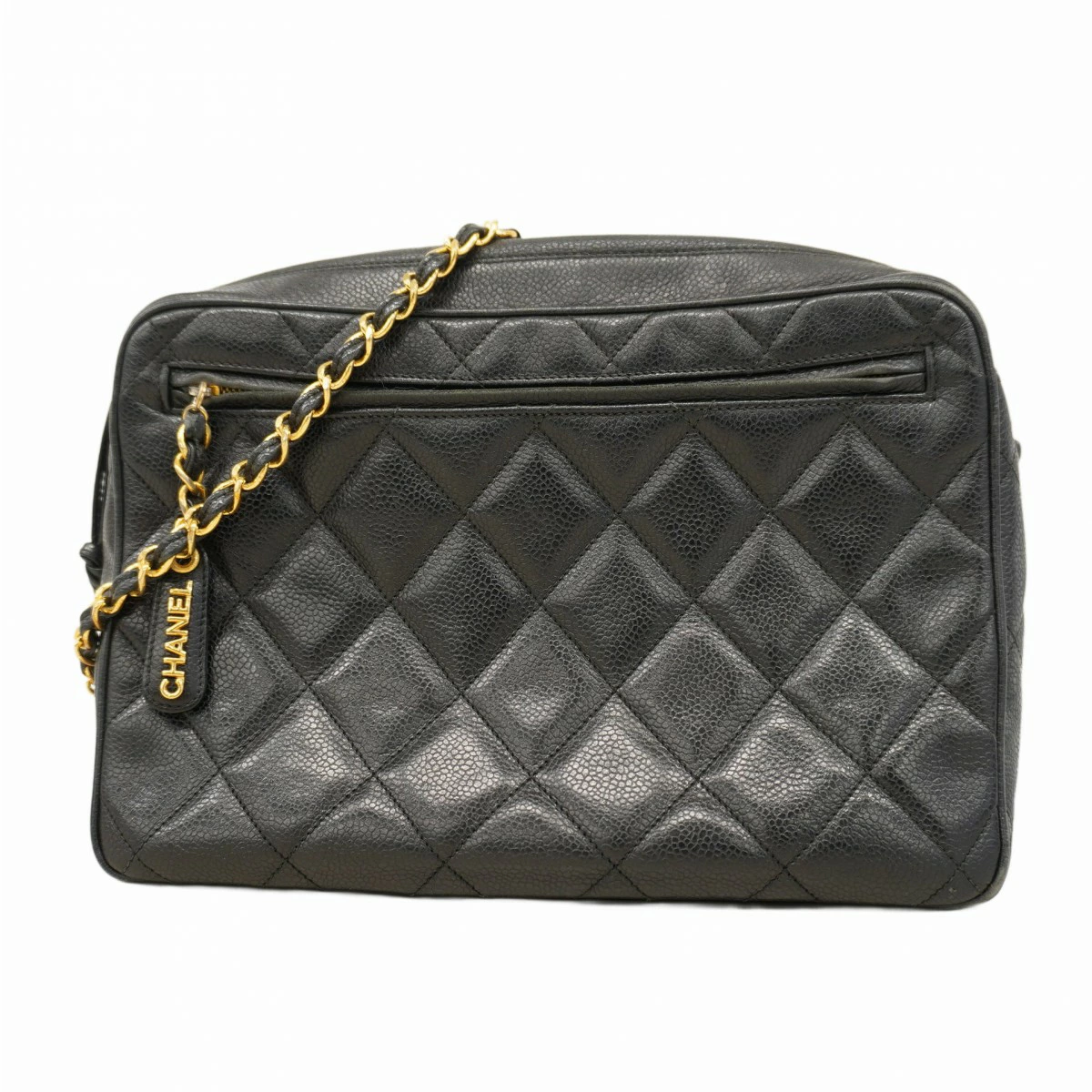 【5pa0265-h】シャネル ショルダーバッグ マトラッセ チェーンショルダー キャビアスキン ブラック ゴールド金具【中古】レディース