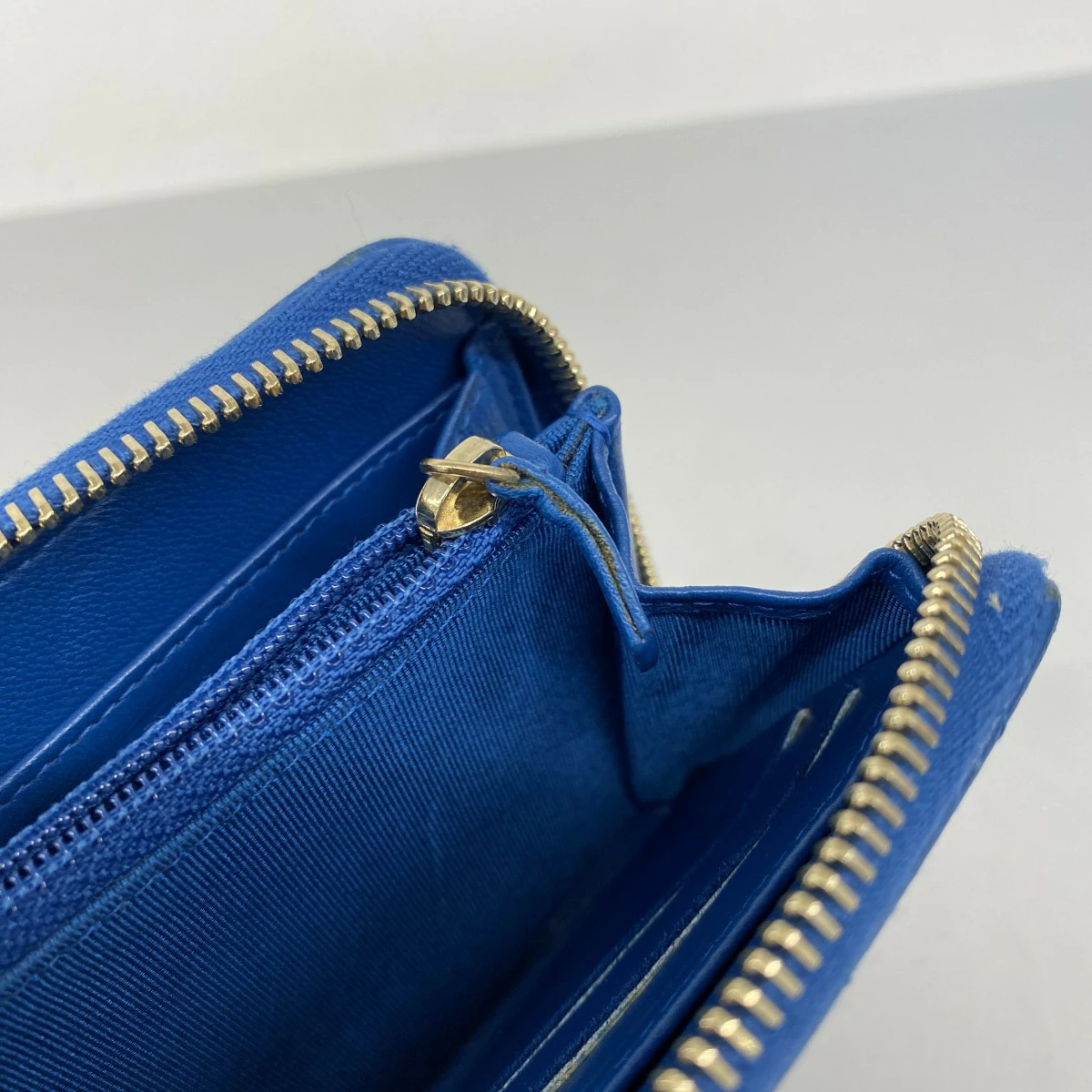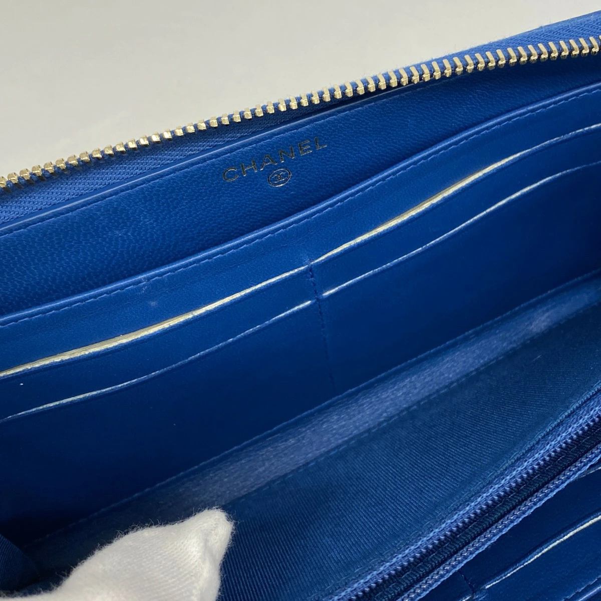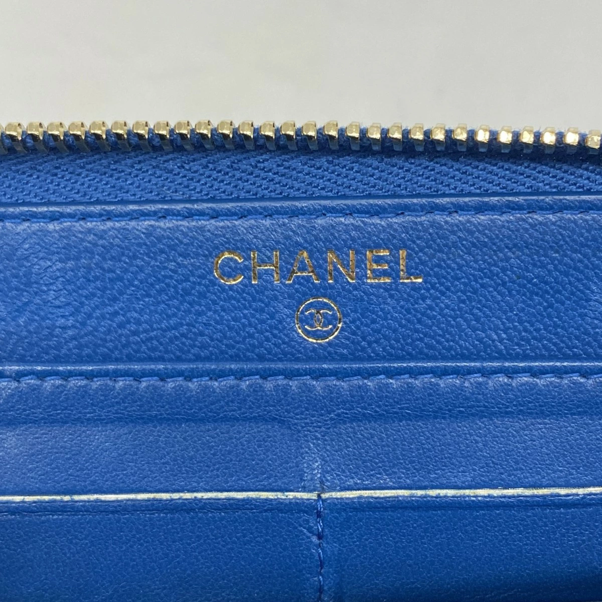 【5pa0273】シャネル 長財布 Vステッチ ラムスキン ブルー シャンパンゴールド金具【中古】レディース