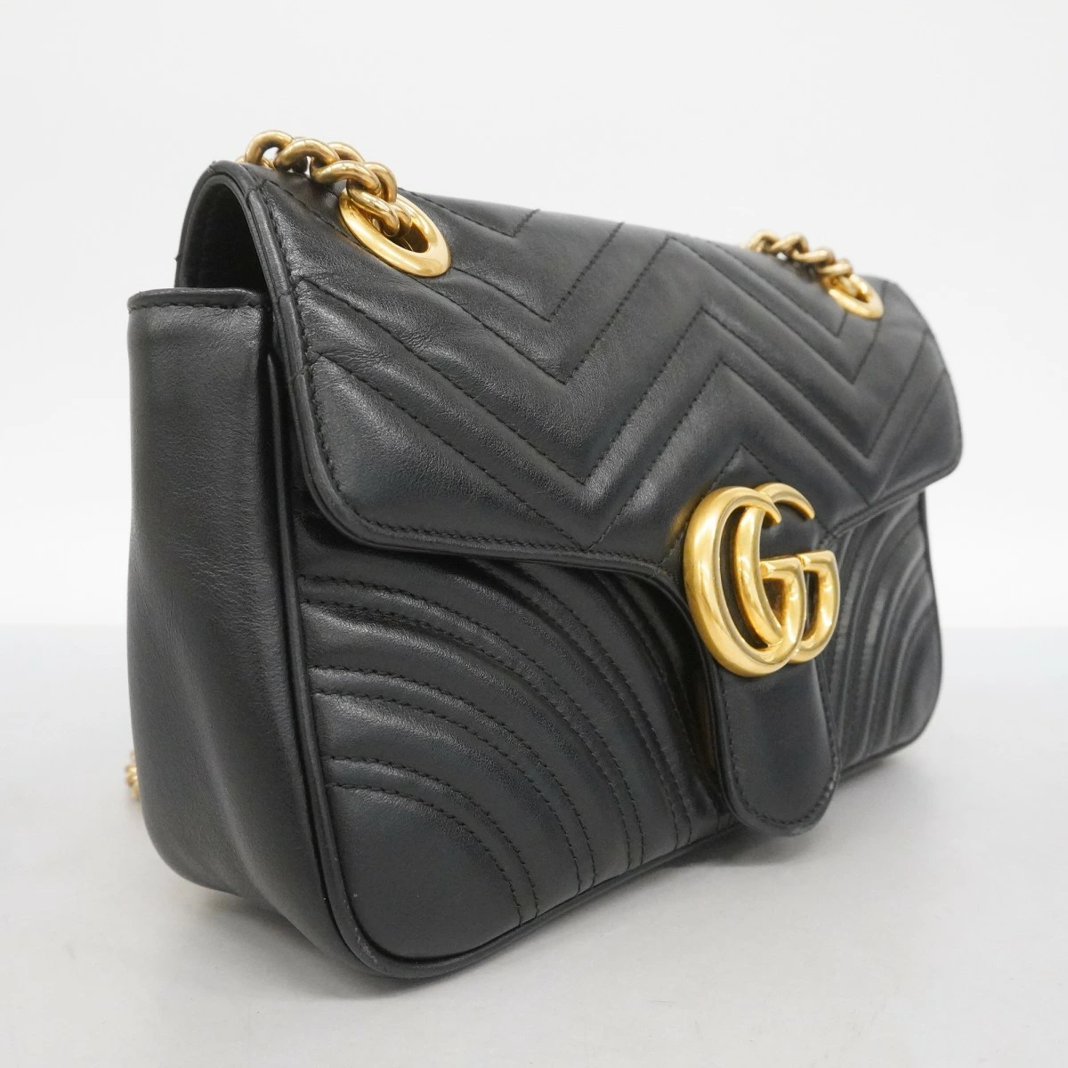 【5pa0321】グッチ ショルダーバッグ GGマーモント 443497 レザー ブラック ゴールド金具【中古】レディース