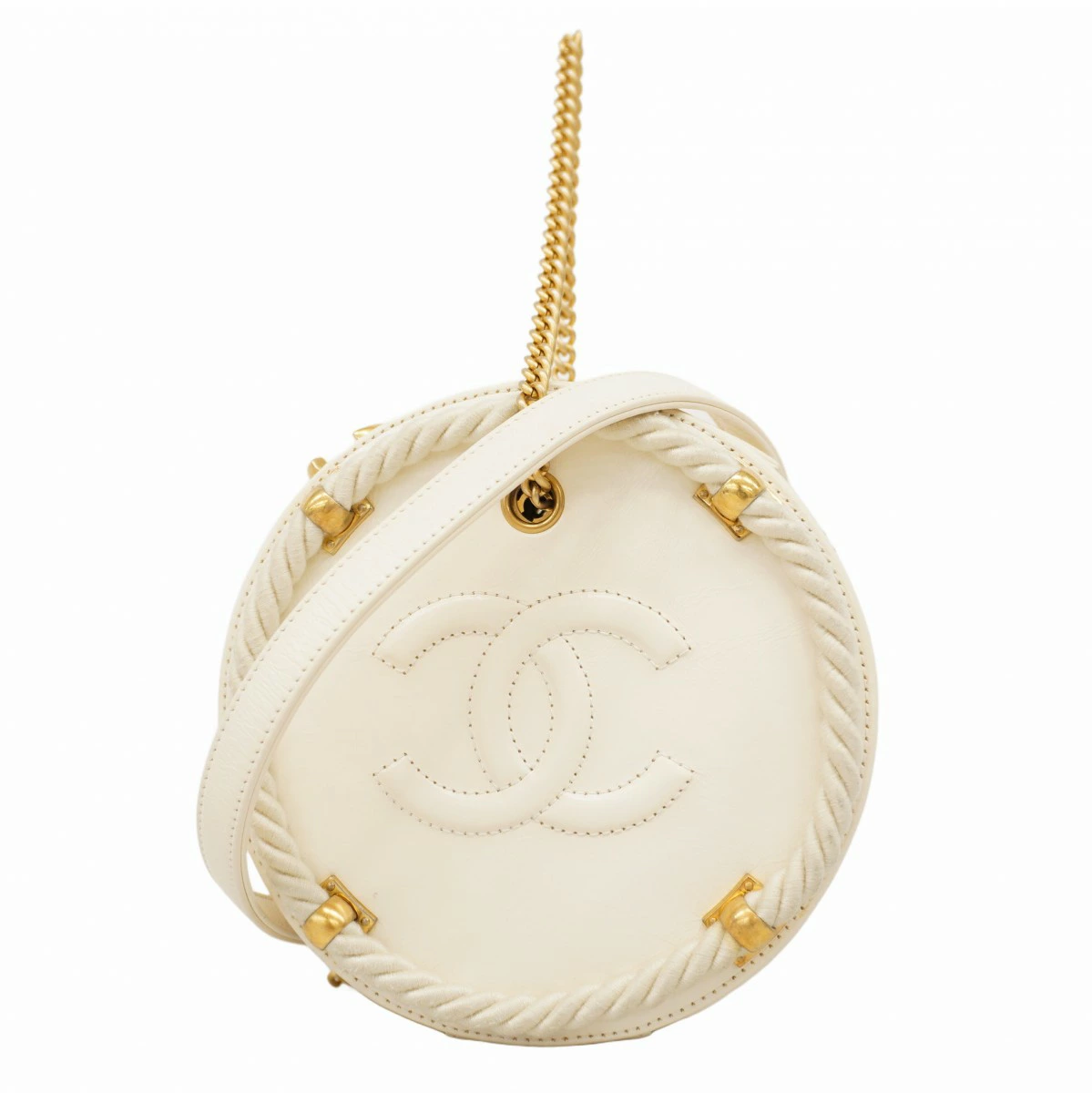 【5pa0355-h】シャネル ショルダーバッグ チェーンショルダー カーフスキン ホワイト ゴールド金具【中古】レディース