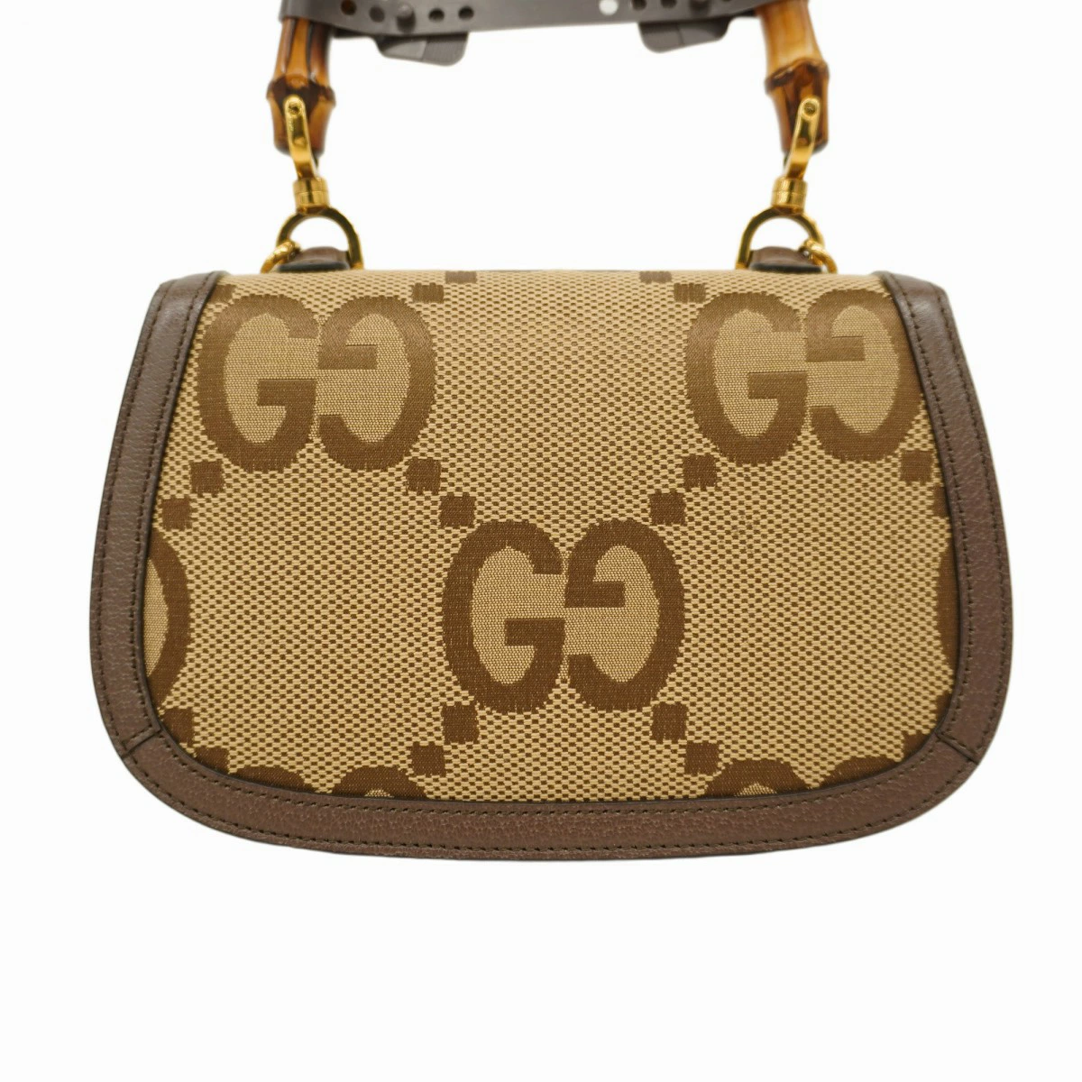 【5pa0357-h】グッチ ハンドバッグ バンブー ジャンボGG 675797 キャンバス レザー ベージュ ブラウン ゴールド金具 2wayバッグ【中古】レディース