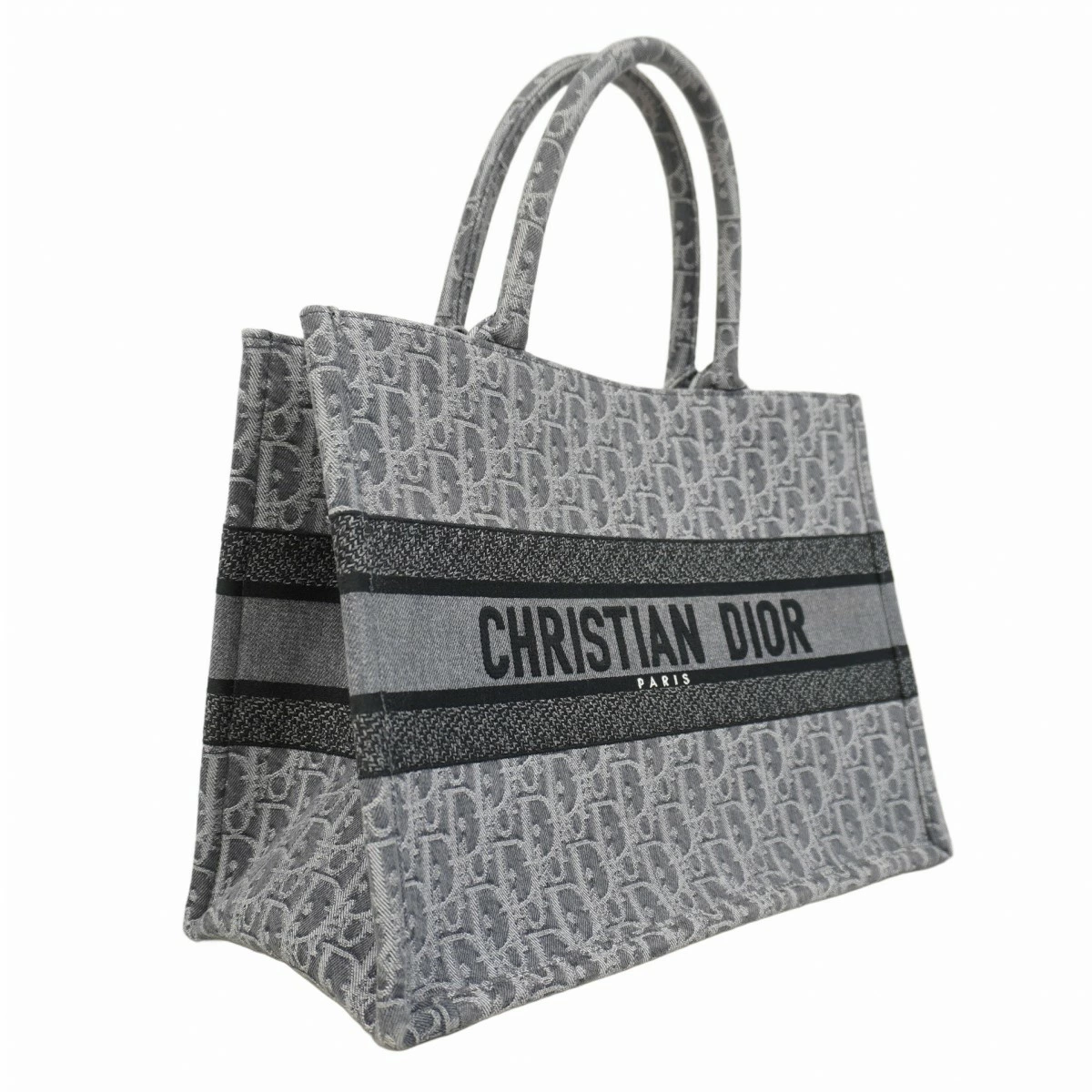 【5pa0470-h】クリスチャンディオール トートバッグ オブリーク ブックトート デニム グレー【中古】レディース