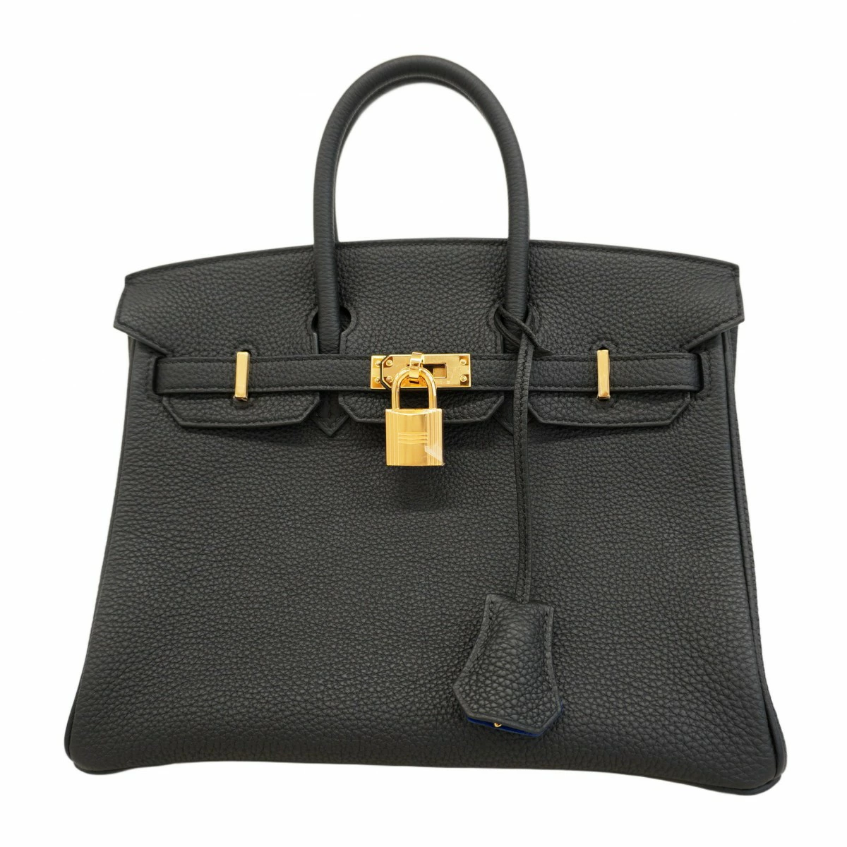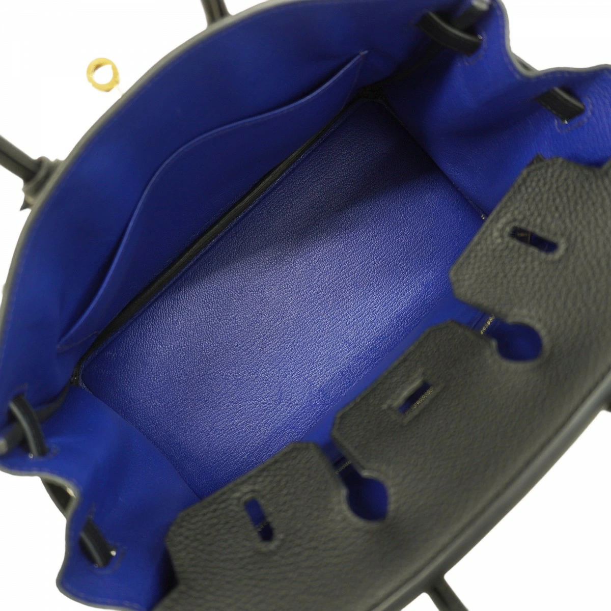 【5pa0523-g-h】エルメス ハンドバッグ バーキン25 ヴェルソ トゴ ブラック ブルーサフィール ゴールド金具 W刻印【中古】レディース