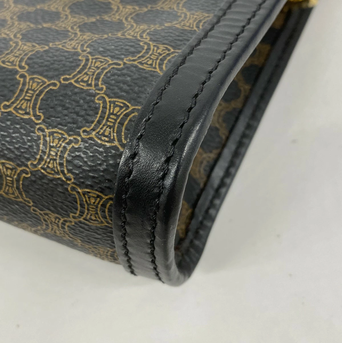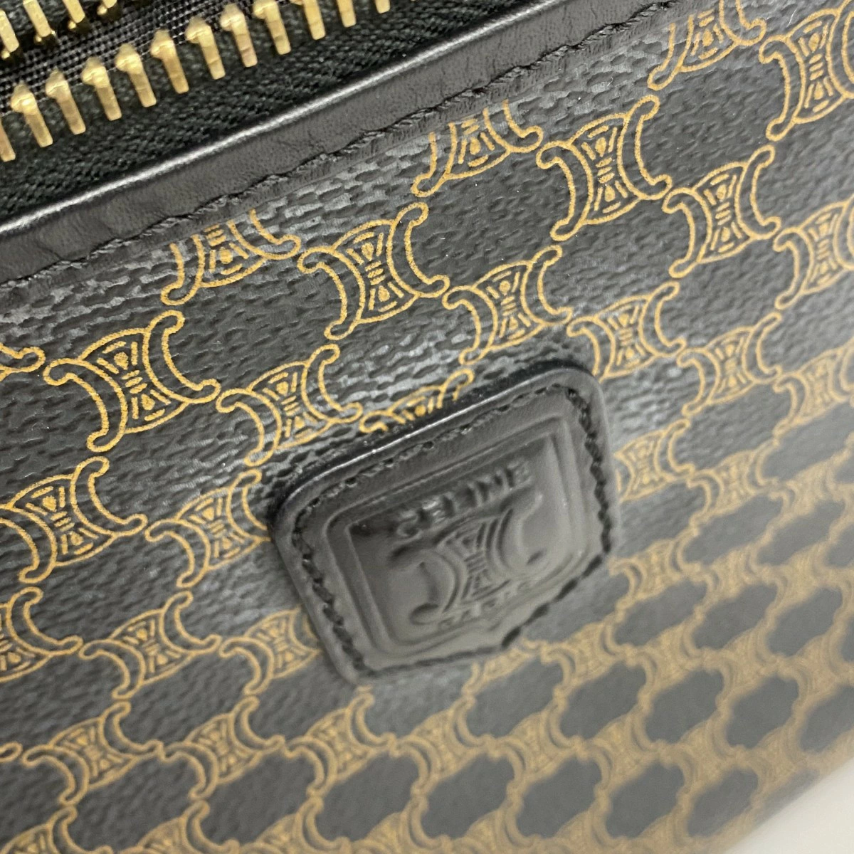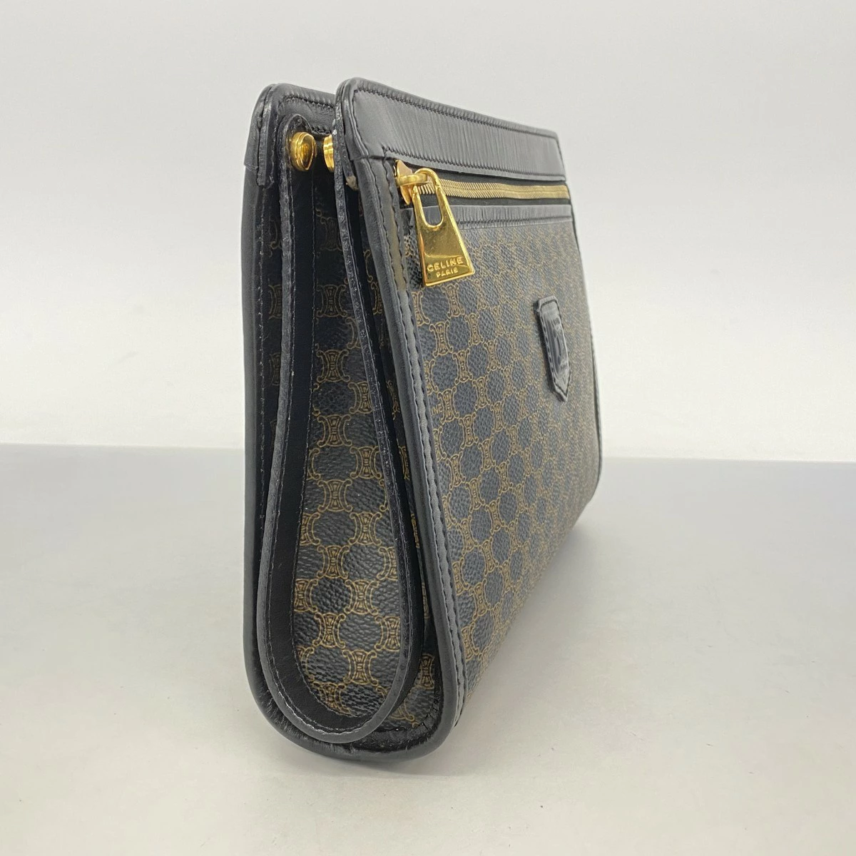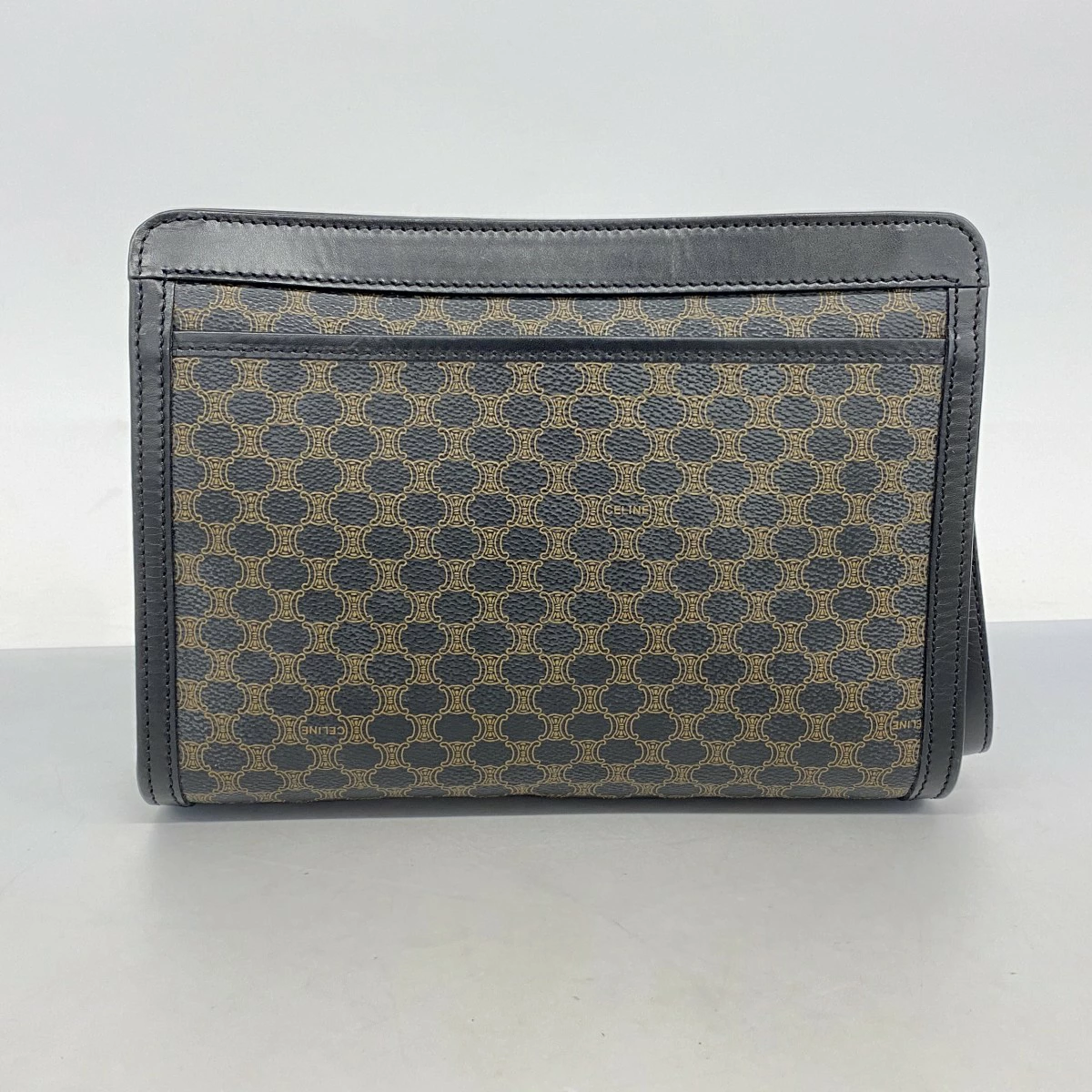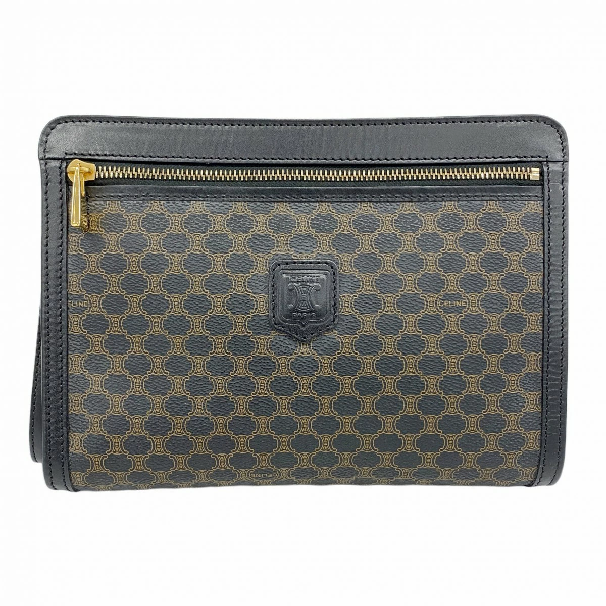 【5pa0916】セリーヌ クラッチバッグ マカダム PVC ブラック ブラウン ゴールド金具【中古】メンズ