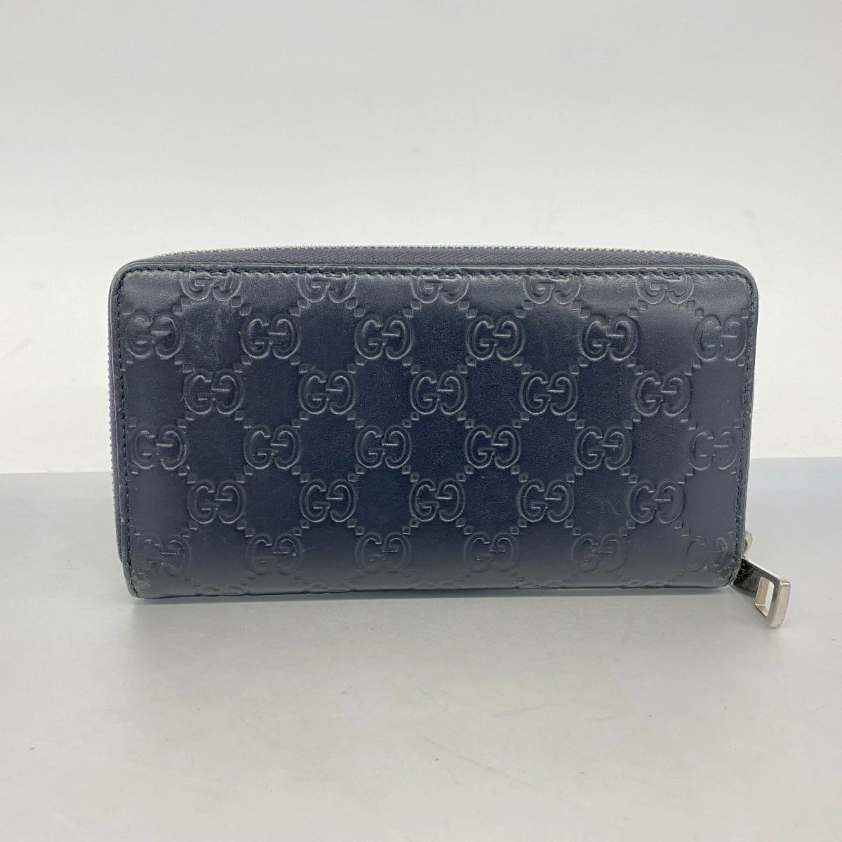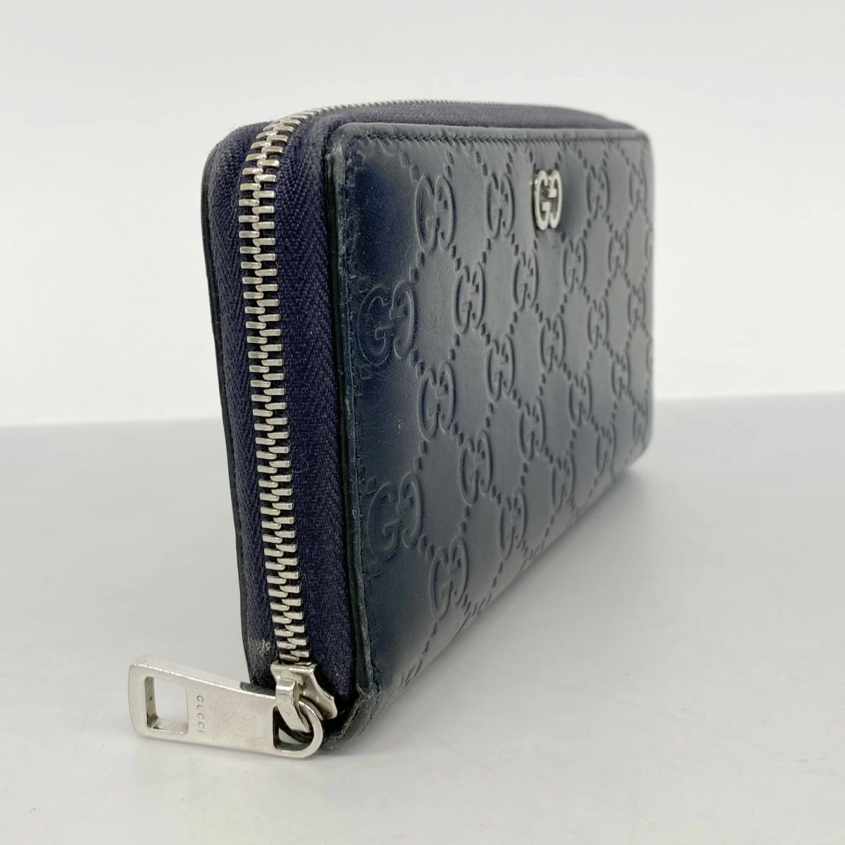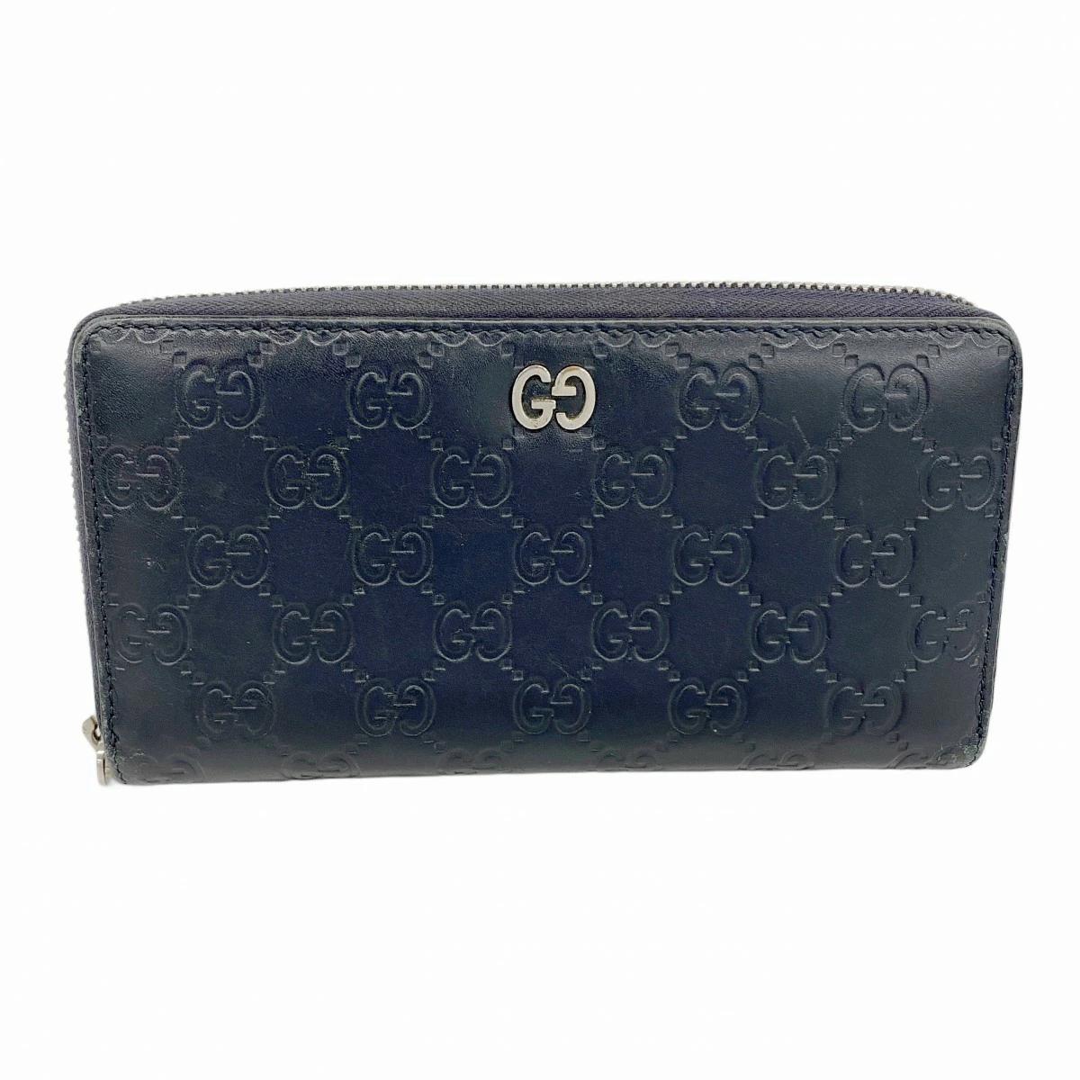 ★SALE【5pa0975】グッチ 長財布 グッチシマ 473928 レザー ネイビー シルバー金具【中古】メンズ