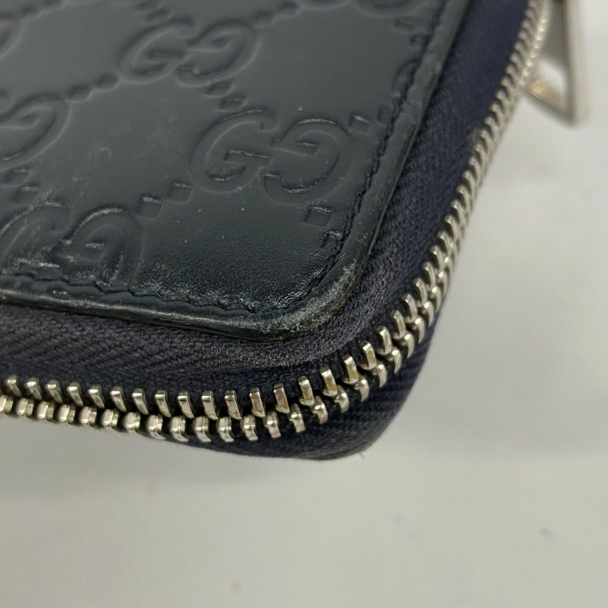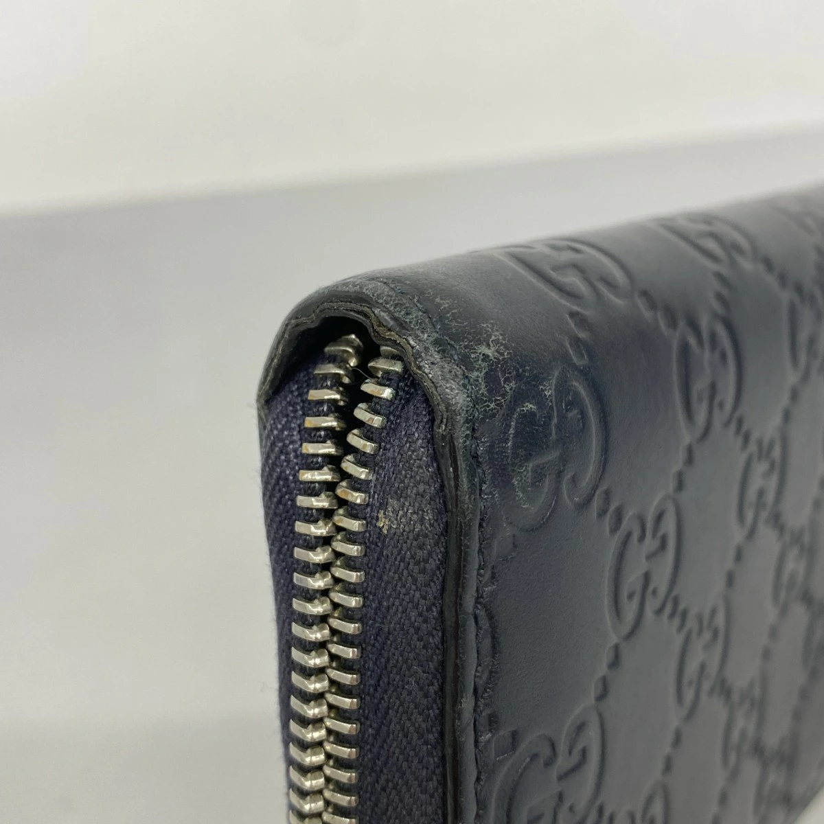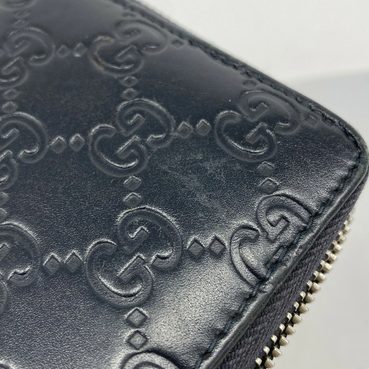 ★SALE【5pa0975】グッチ 長財布 グッチシマ 473928 レザー ネイビー シルバー金具【中古】メンズ