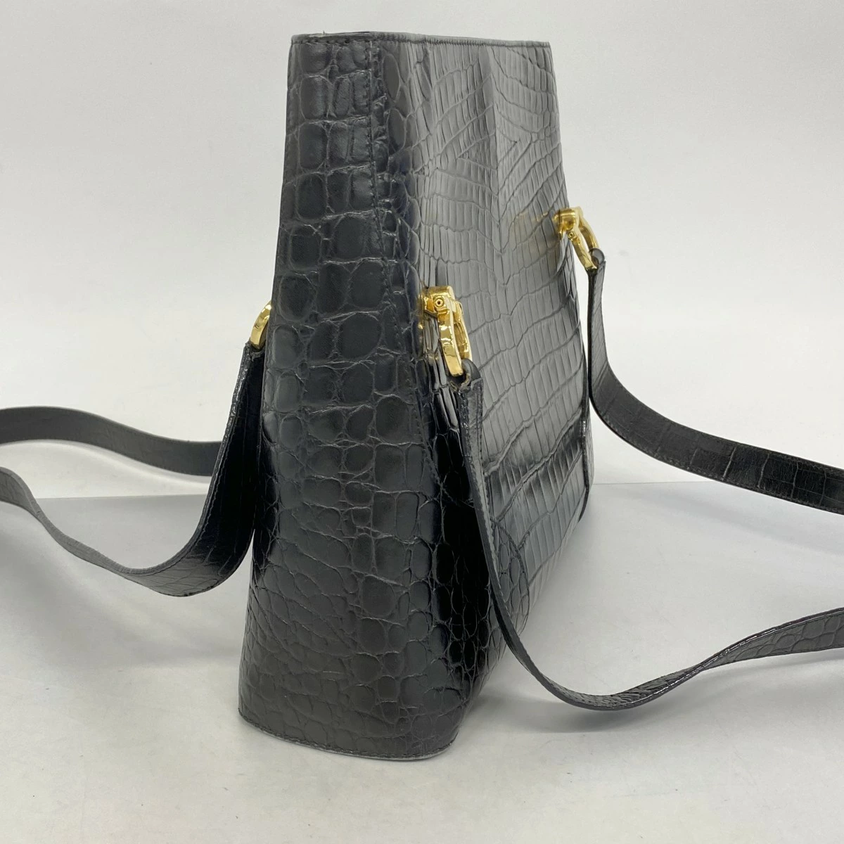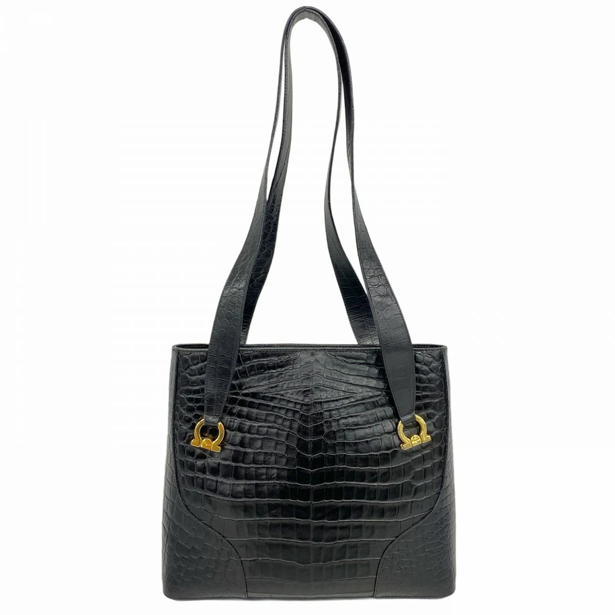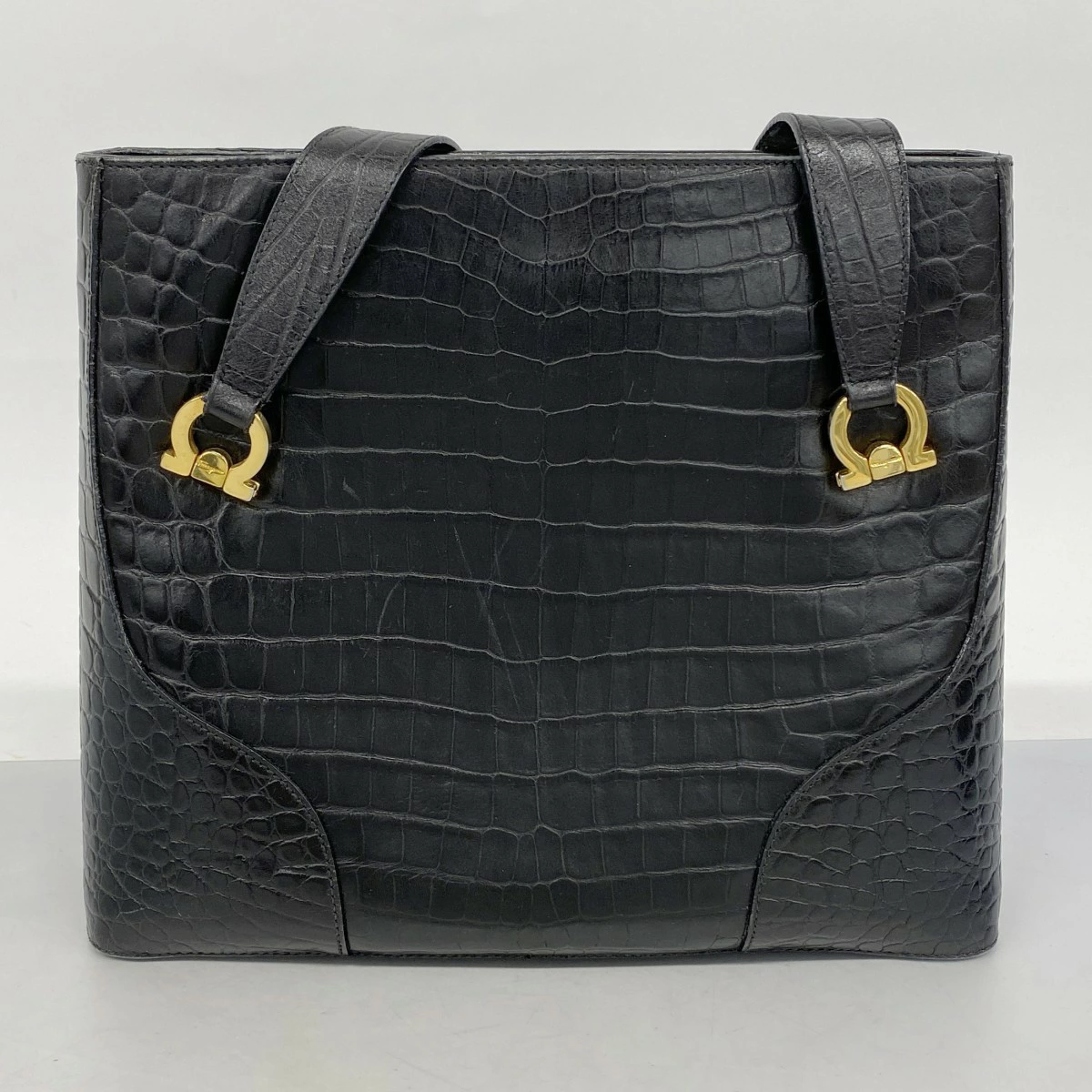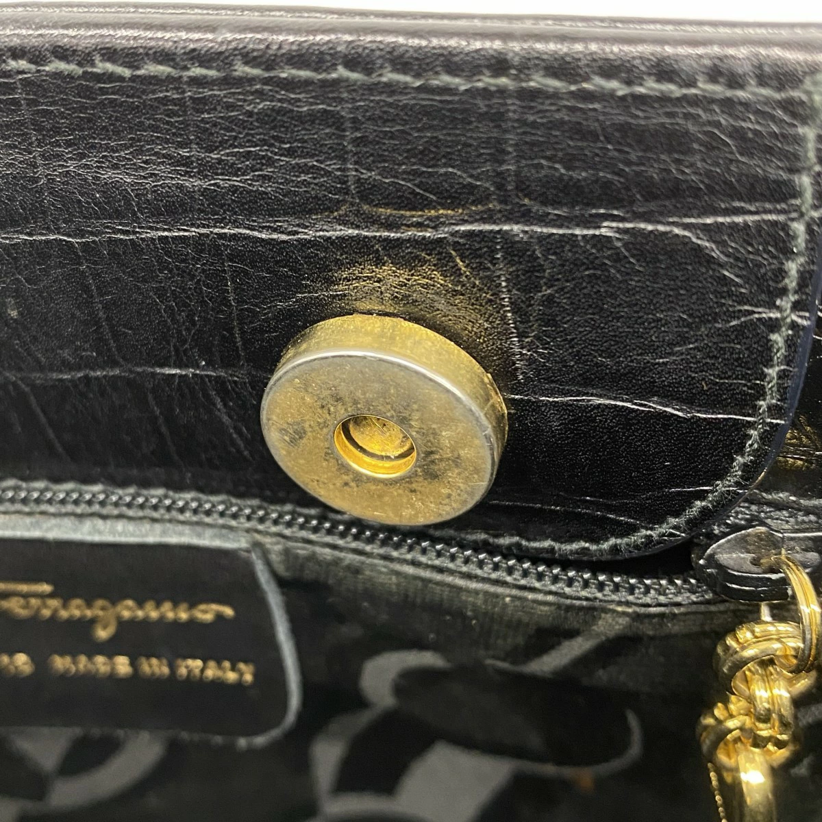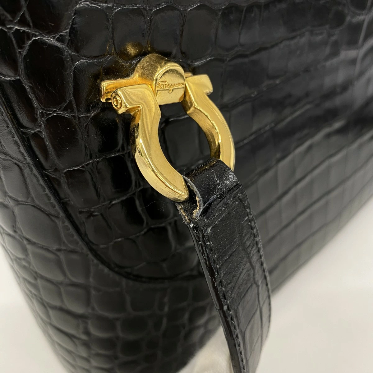 【5pa0978】サルヴァトーレフェラガモ ショルダーバッグ ガンチーニ レザー ブラック ゴールド金具【中古】レディース