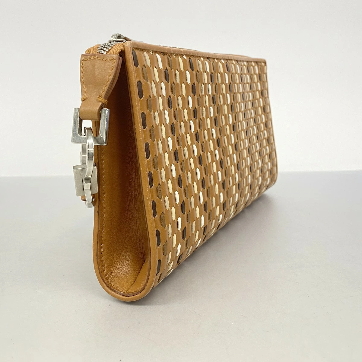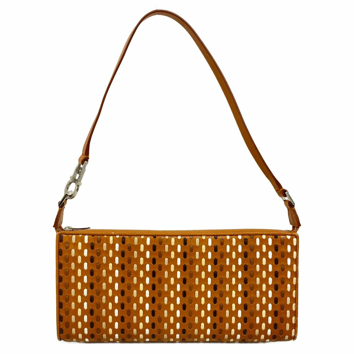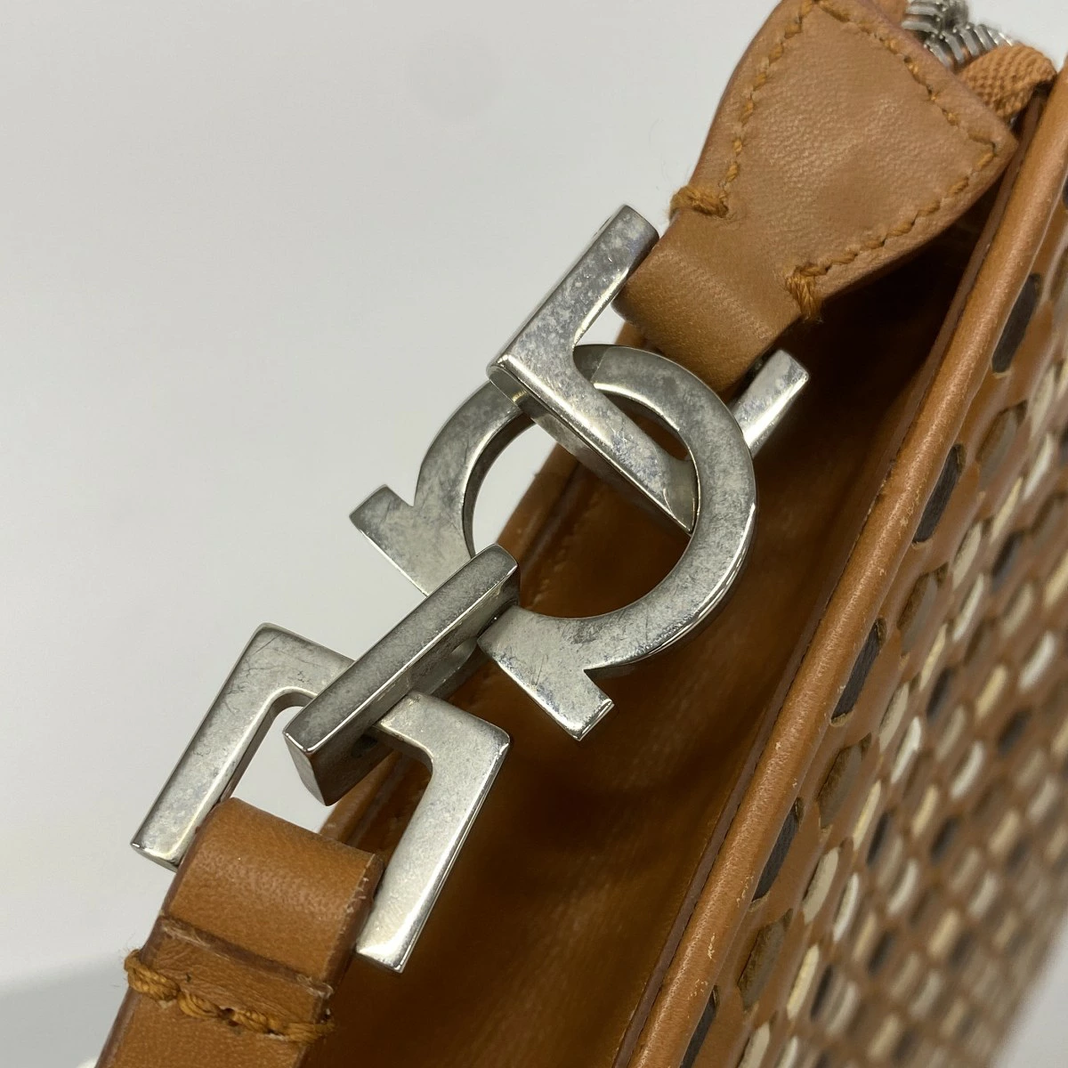 【5pa1079】サルヴァトーレフェラガモ ポーチ レザー ブラウン シルバー金具【中古】レディース