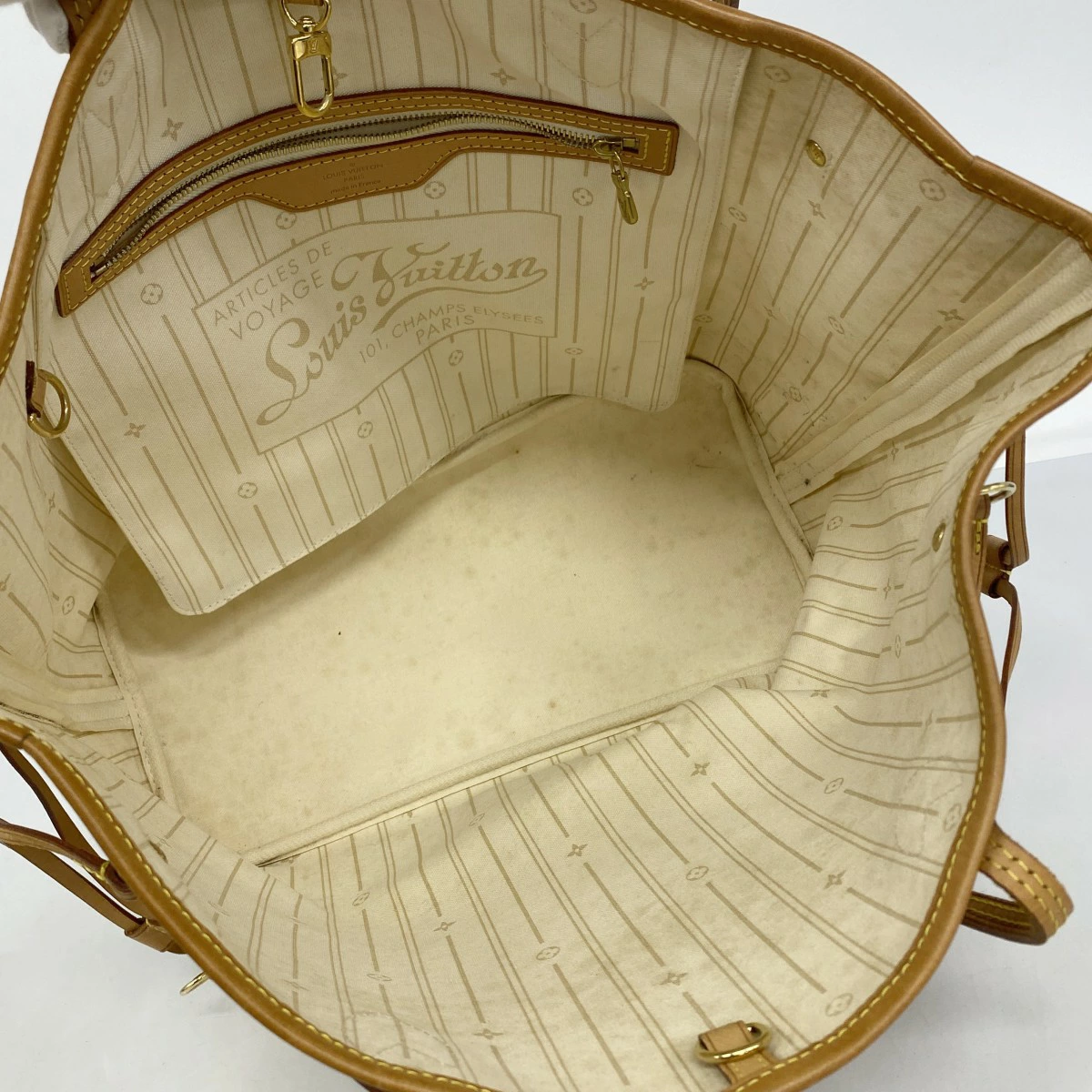 [5pa1092] Louis Vuitton Damier Azur Neverfull MM Tote Bag N51107 White [Pre-owned] Women's