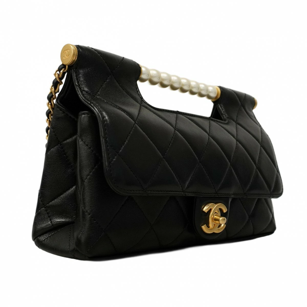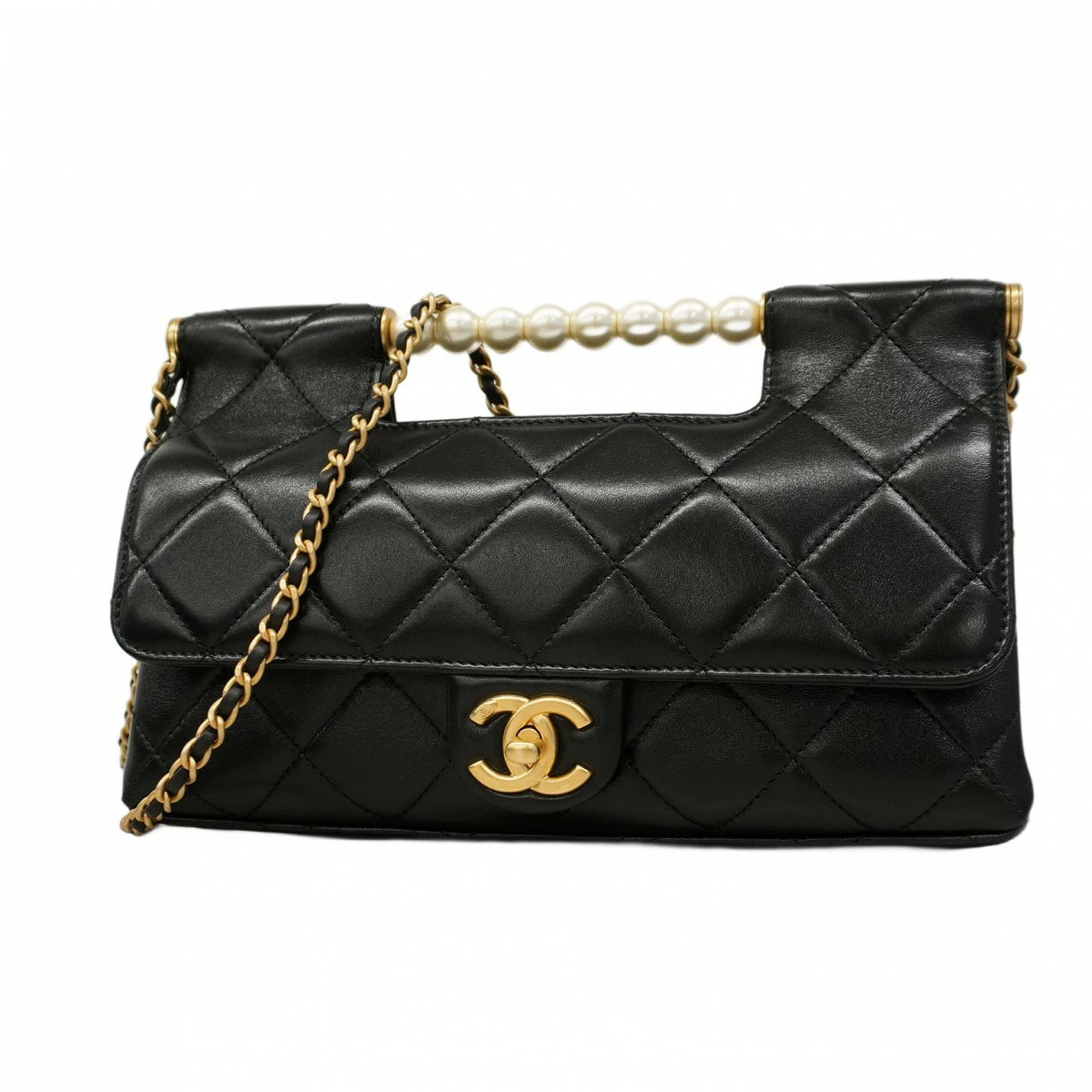【5pa1103-h】シャネル ハンドバッグ マトラッセ チェーンショルダー レザー チェーン ブラック ゴールド金具 2wayバッグ【中古】レディース