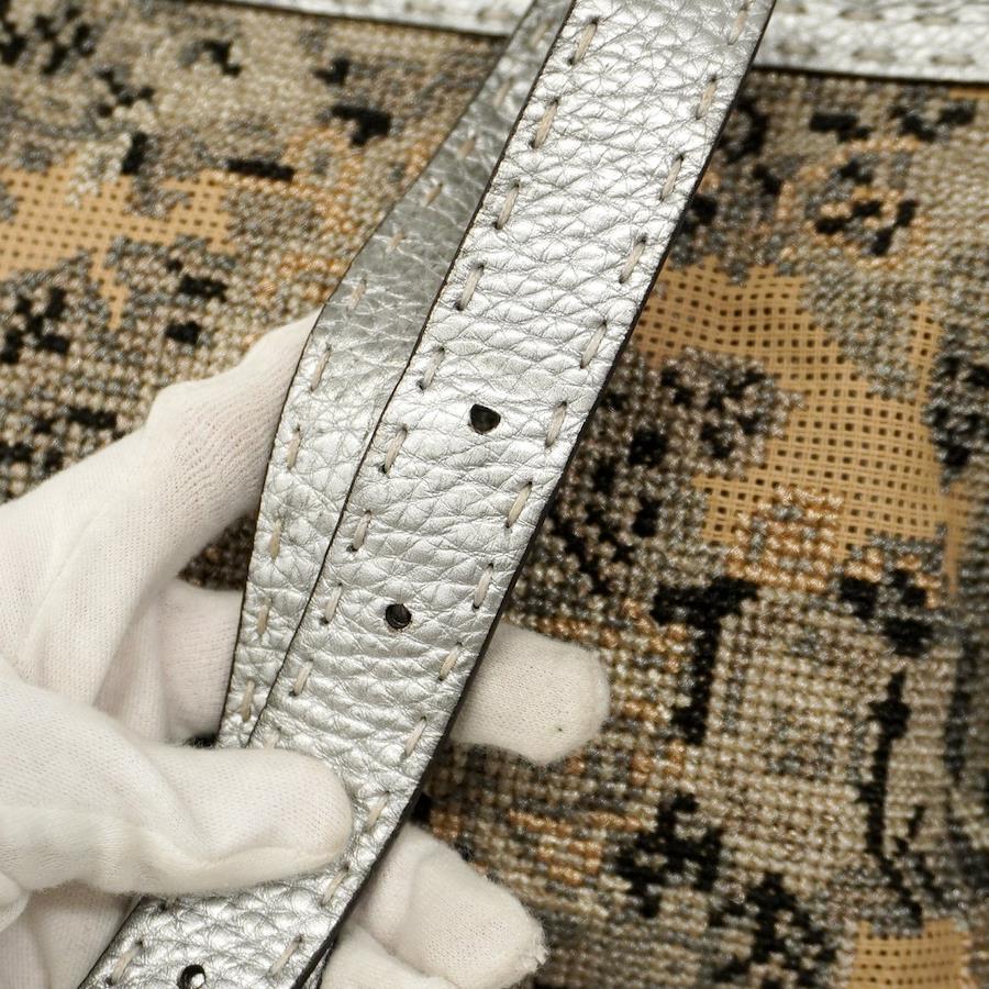 【5pa1113】フェンディ ハンドバッグ ピーカブー キャンバス レザー シルバー シルバー金具 2wayバッグ【中古】レディース