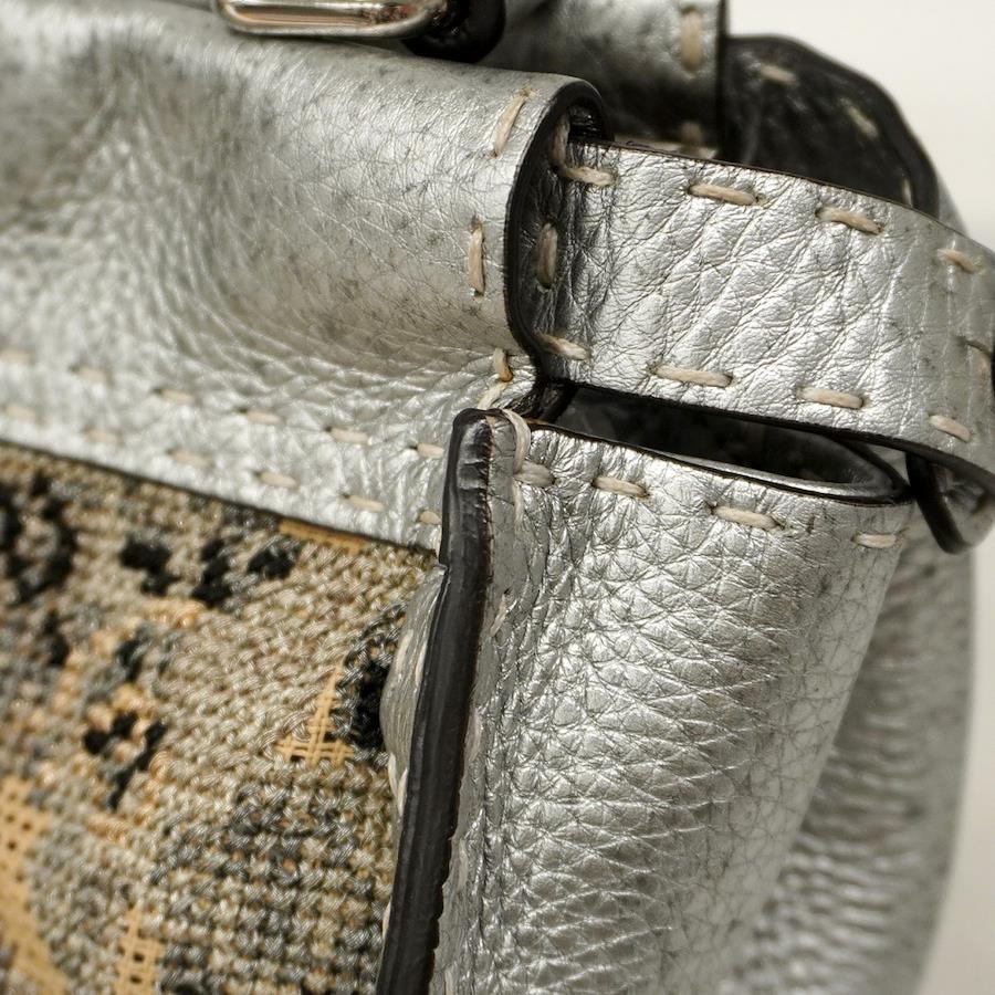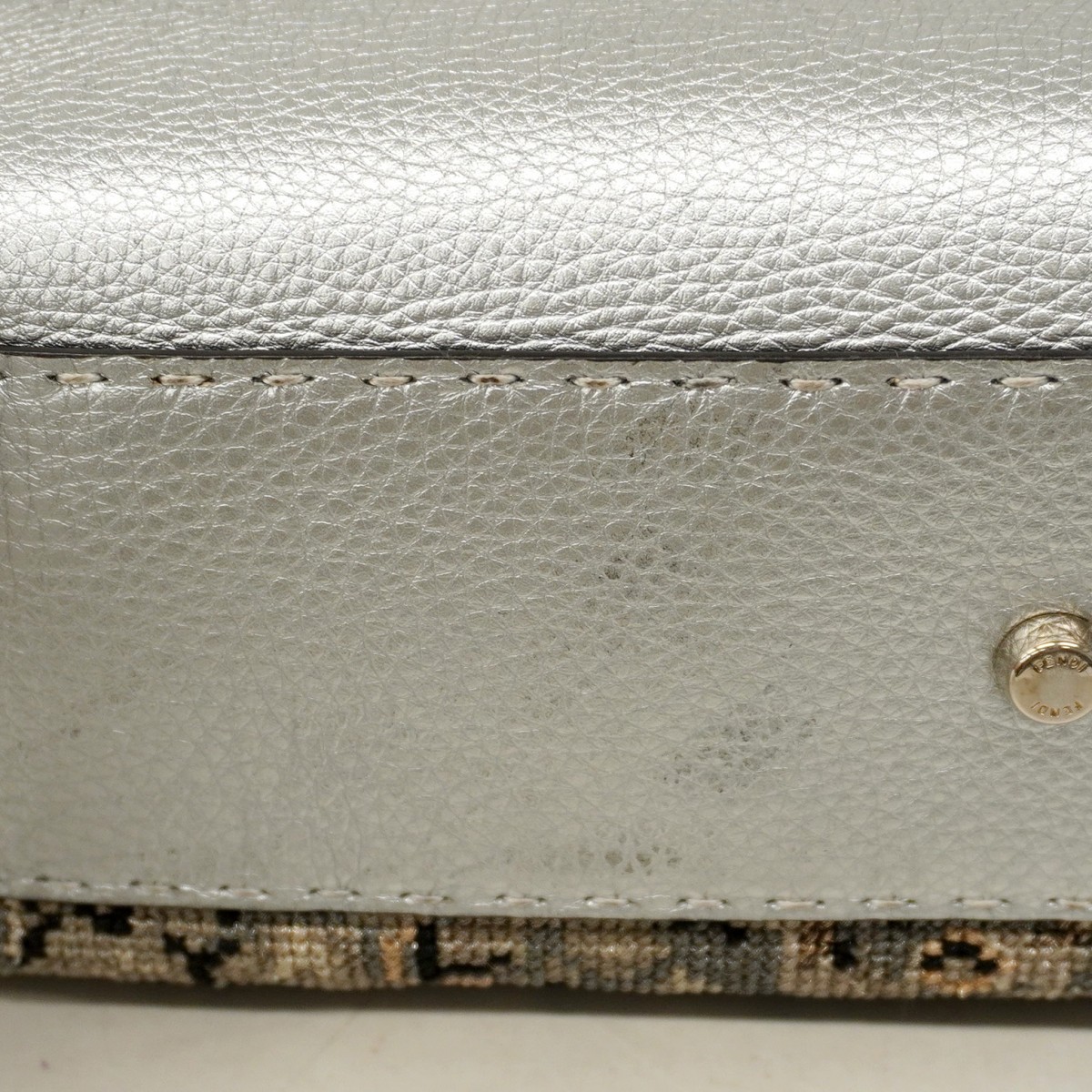 [5pa1113] Fendi Peekaboo Handbag, Canvas, Leather, Silver, Silver Hardware, 2-Way Bag, Pre-Owned, Women's