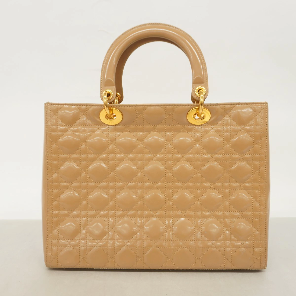 【5pa1184】クリスチャンディオール ハンドバッグ カナージュ レディディオール エナメル ブラウン ゴールド金具 2wayバッグ【中古】レディース