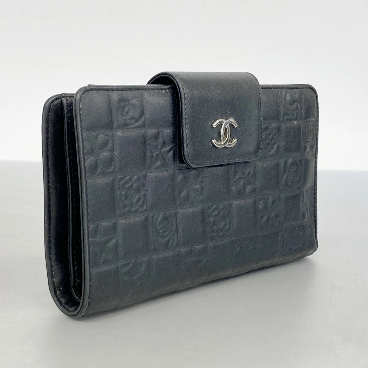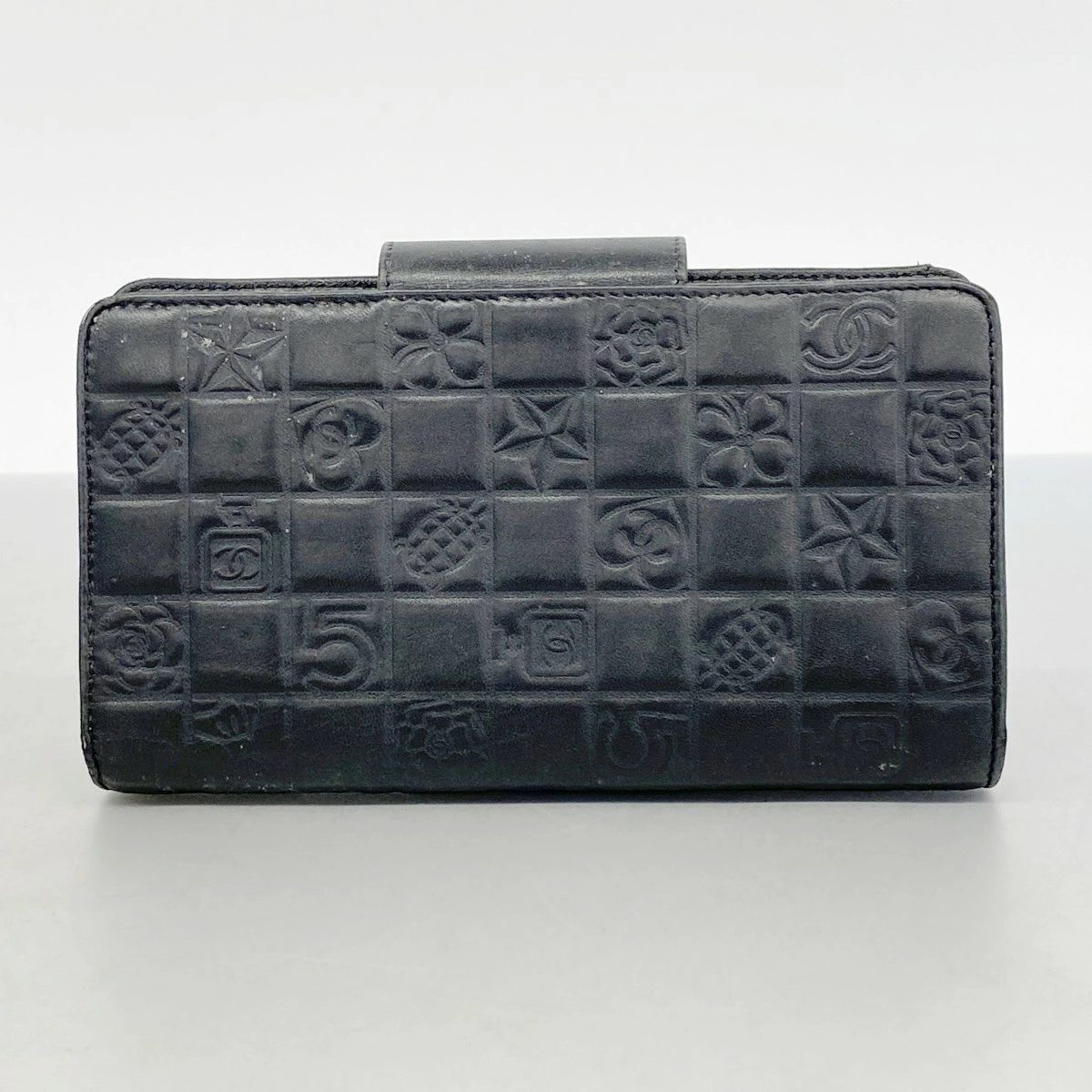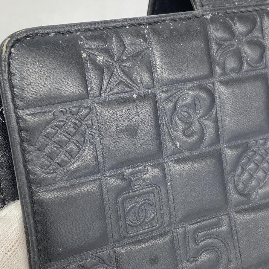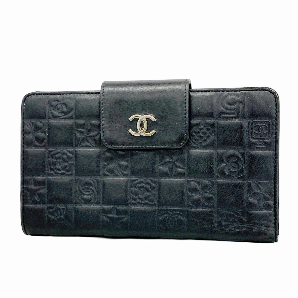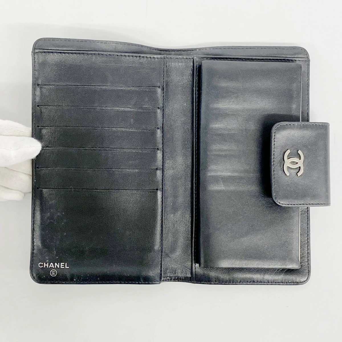 ★最終価格★SALE【5pa1199-h】シャネル 長財布 アイコン ラムスキン ブラック シルバー金具【中古】レディース