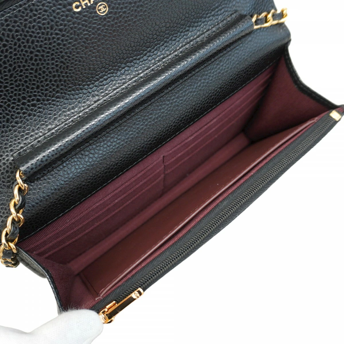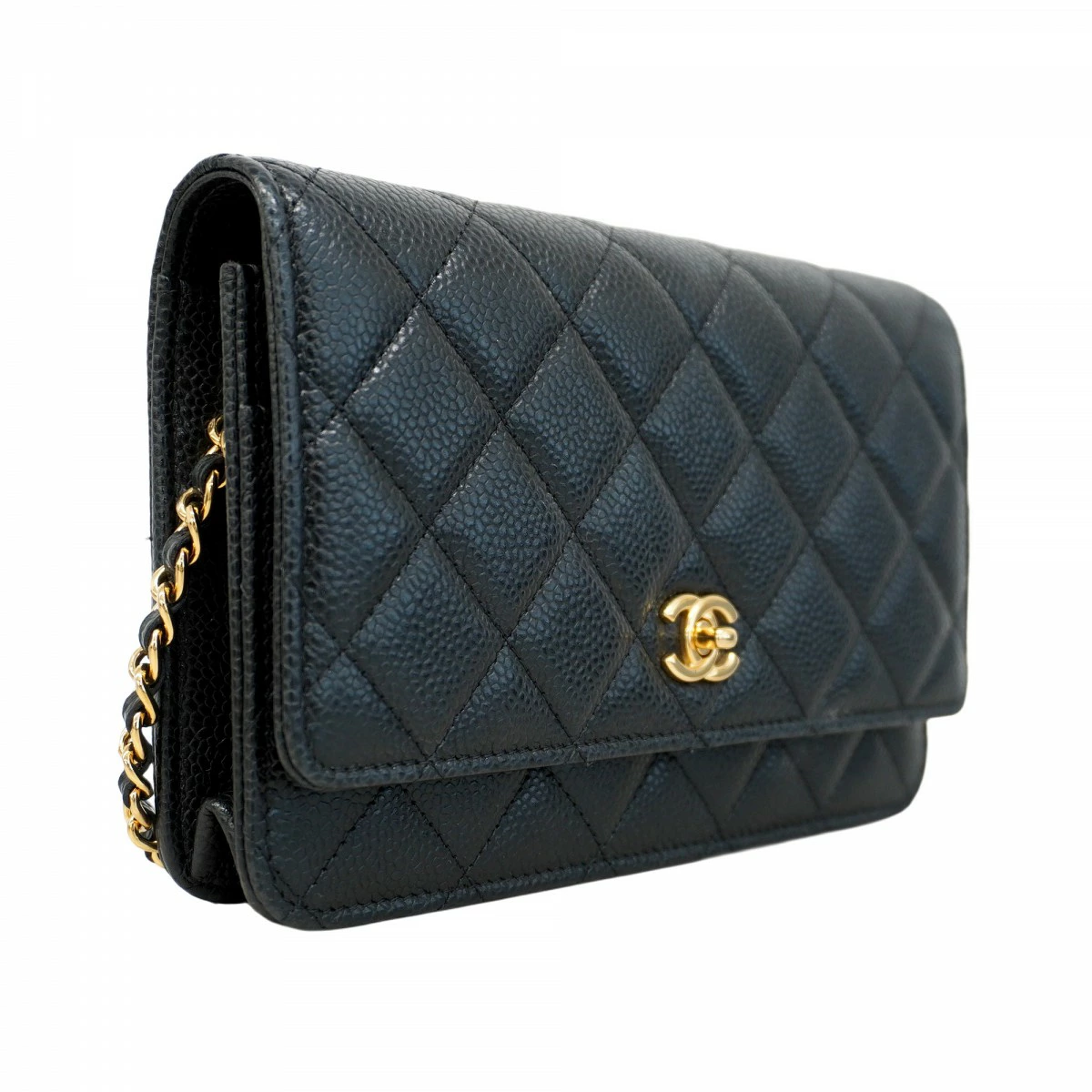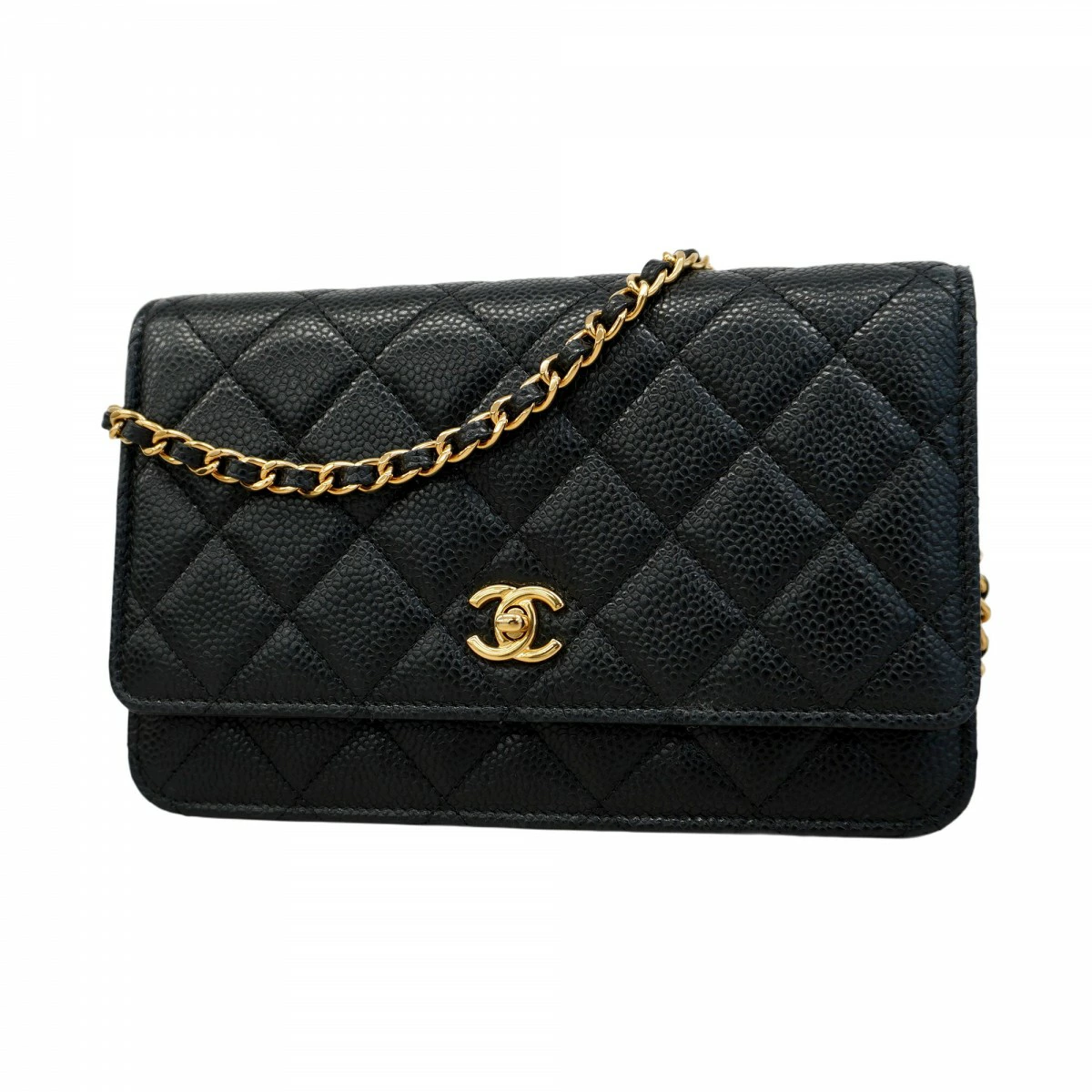 ★最終価格★SALE【5pa1323-h】シャネル ショルダーウォレット マトラッセ キャビアスキン ブラック ゴールド金具【中古】レディース