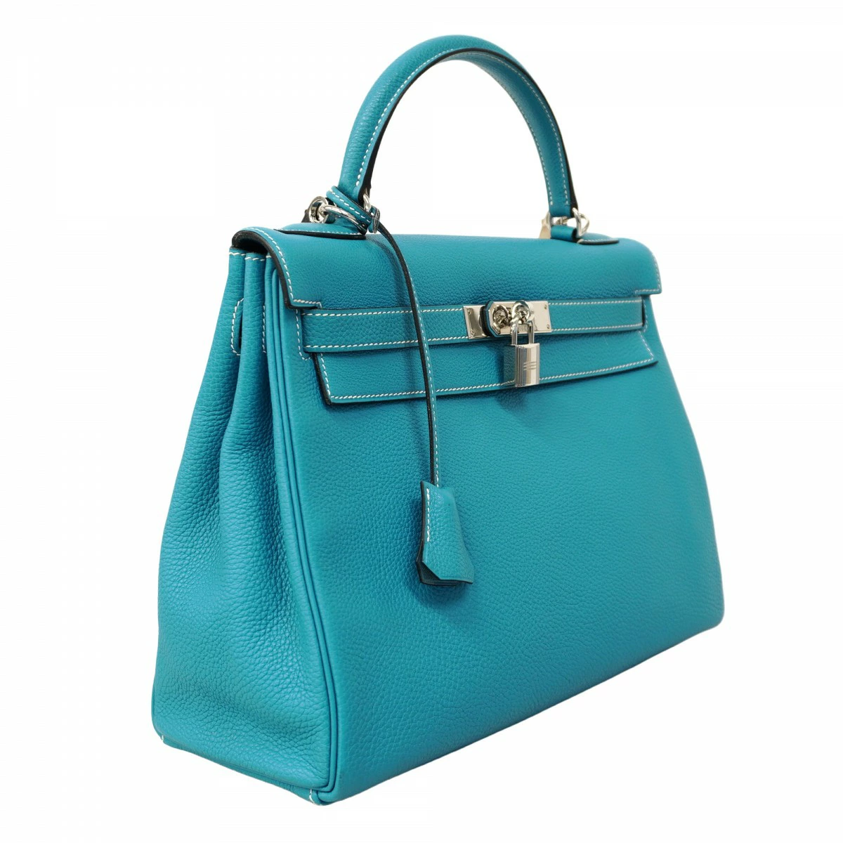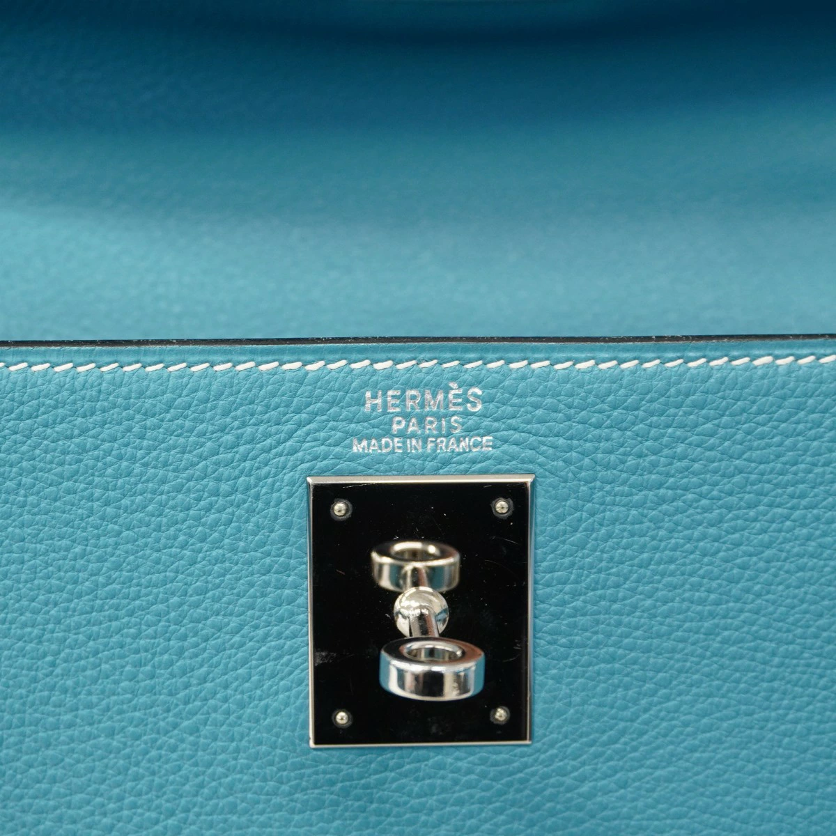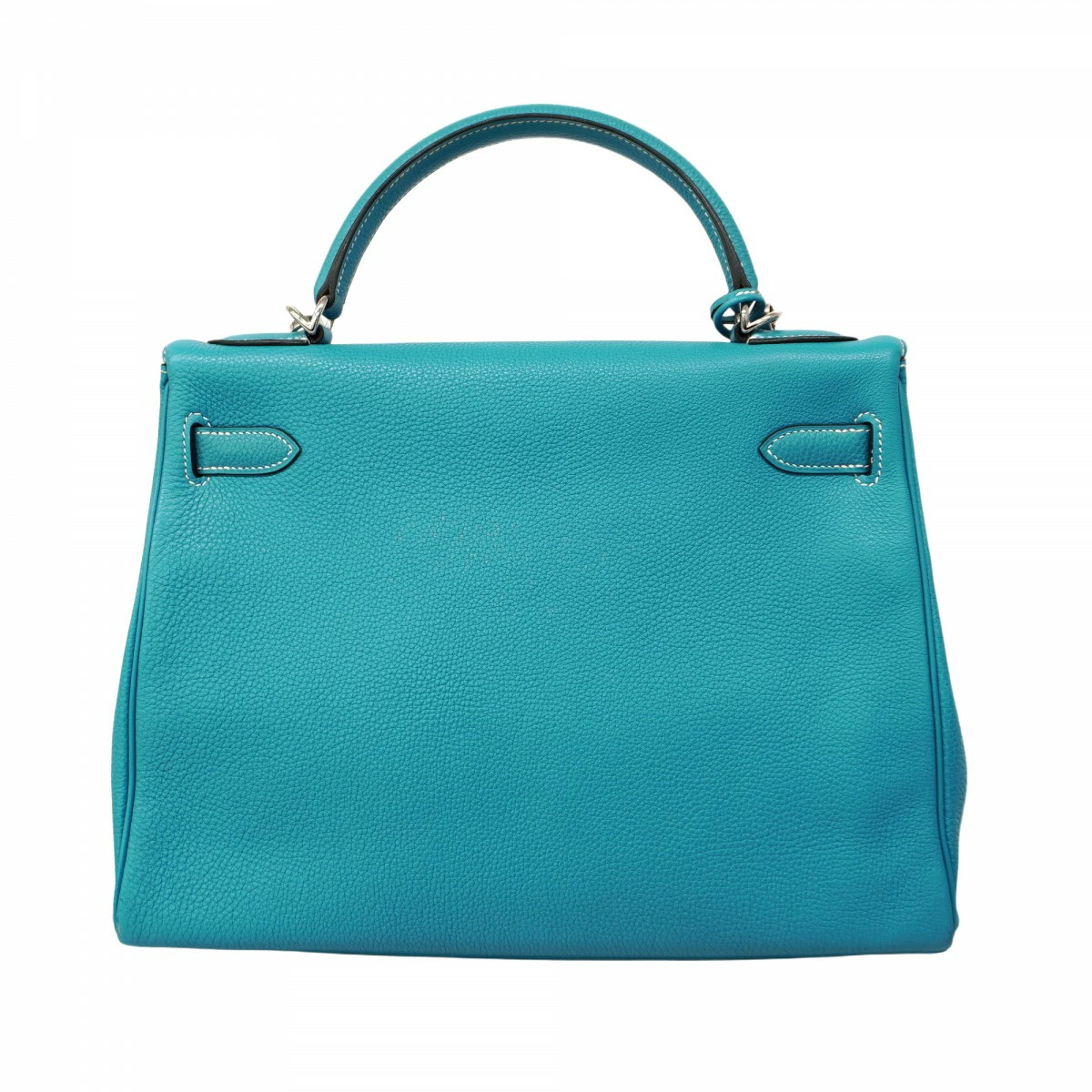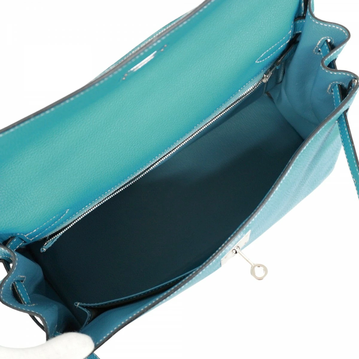 ★SALE【5pa1473-h】エルメス ハンドバッグ ケリー32 トゴ ブルージーン シルバー金具 □H刻印 2wayバッグ【中古】レディース