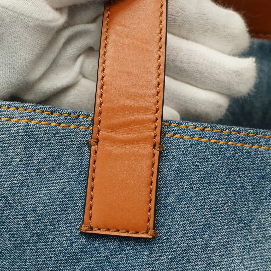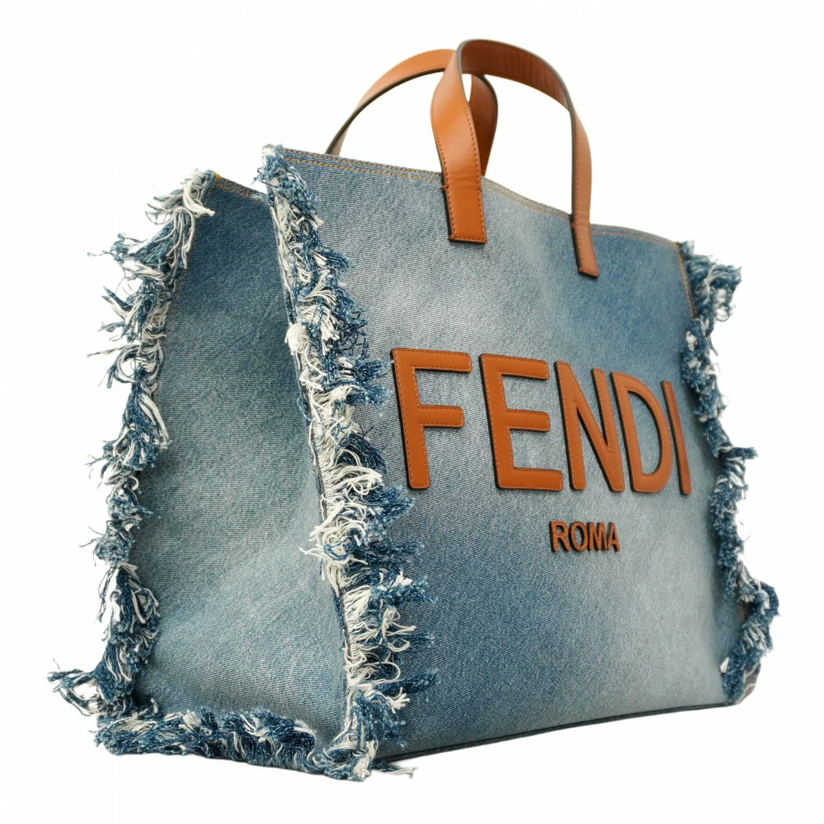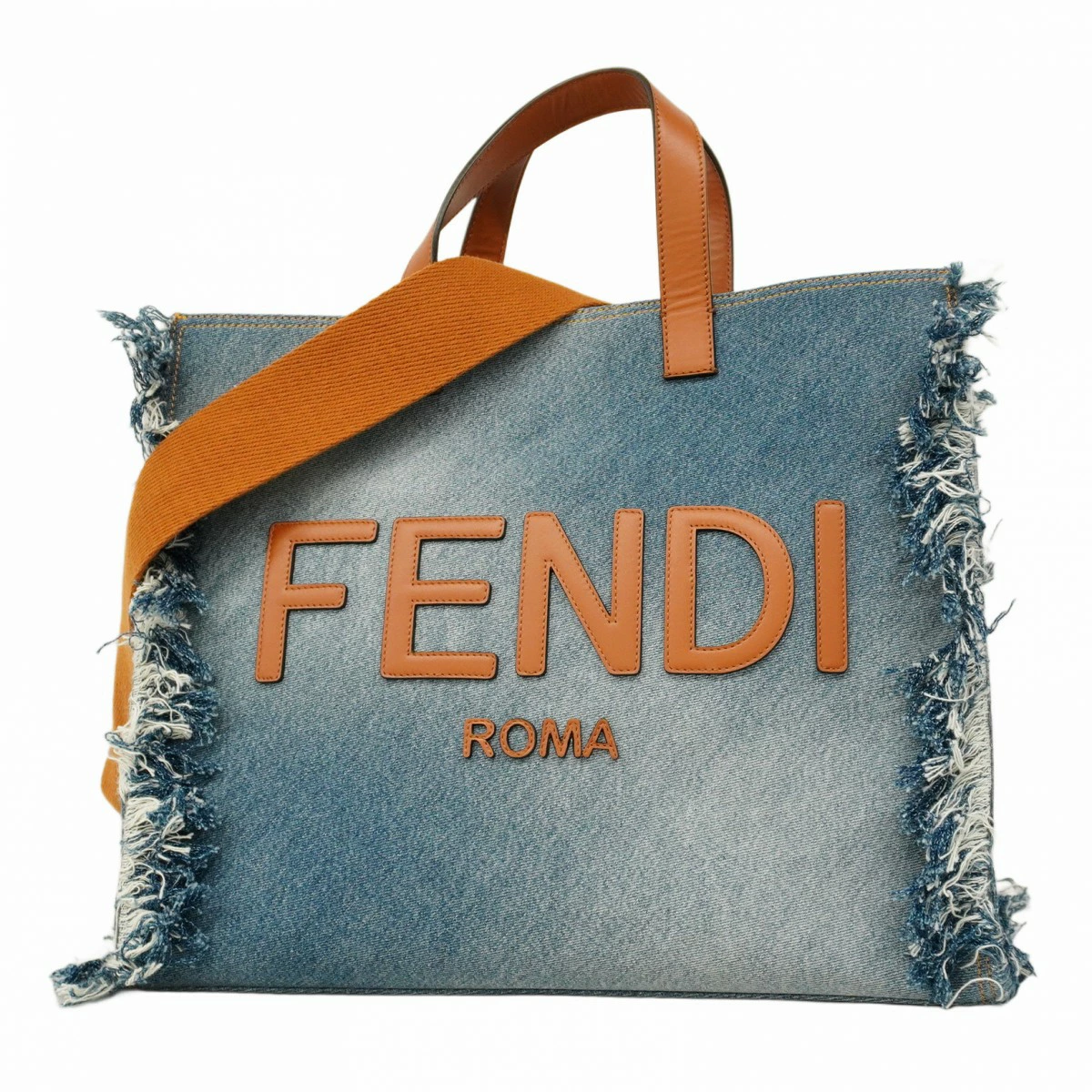 【5pb1682】フェンディ トートバッグ デニム ブルー ライトブラウン シルバー金具 2wayバッグ【中古】レディース