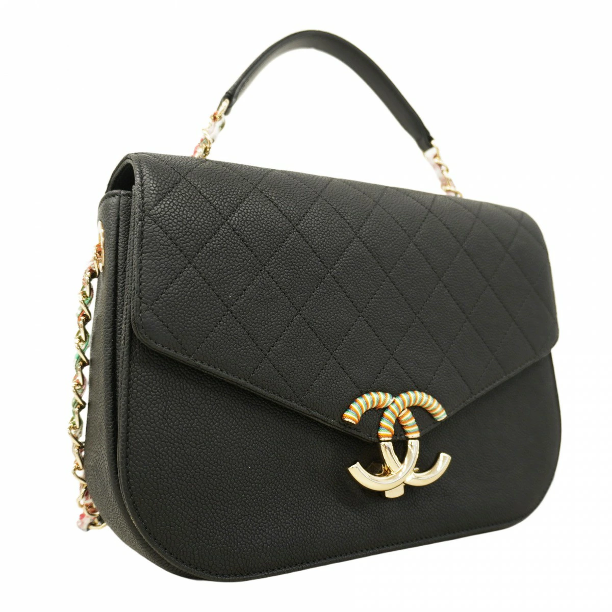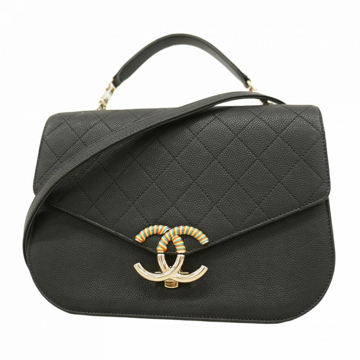 【5pb1977-h】シャネル ハンドバッグ マトラッセ チェーンショルダー キャビアスキン ブラック ゴールド金具 2wayバッグ【中古】レディース