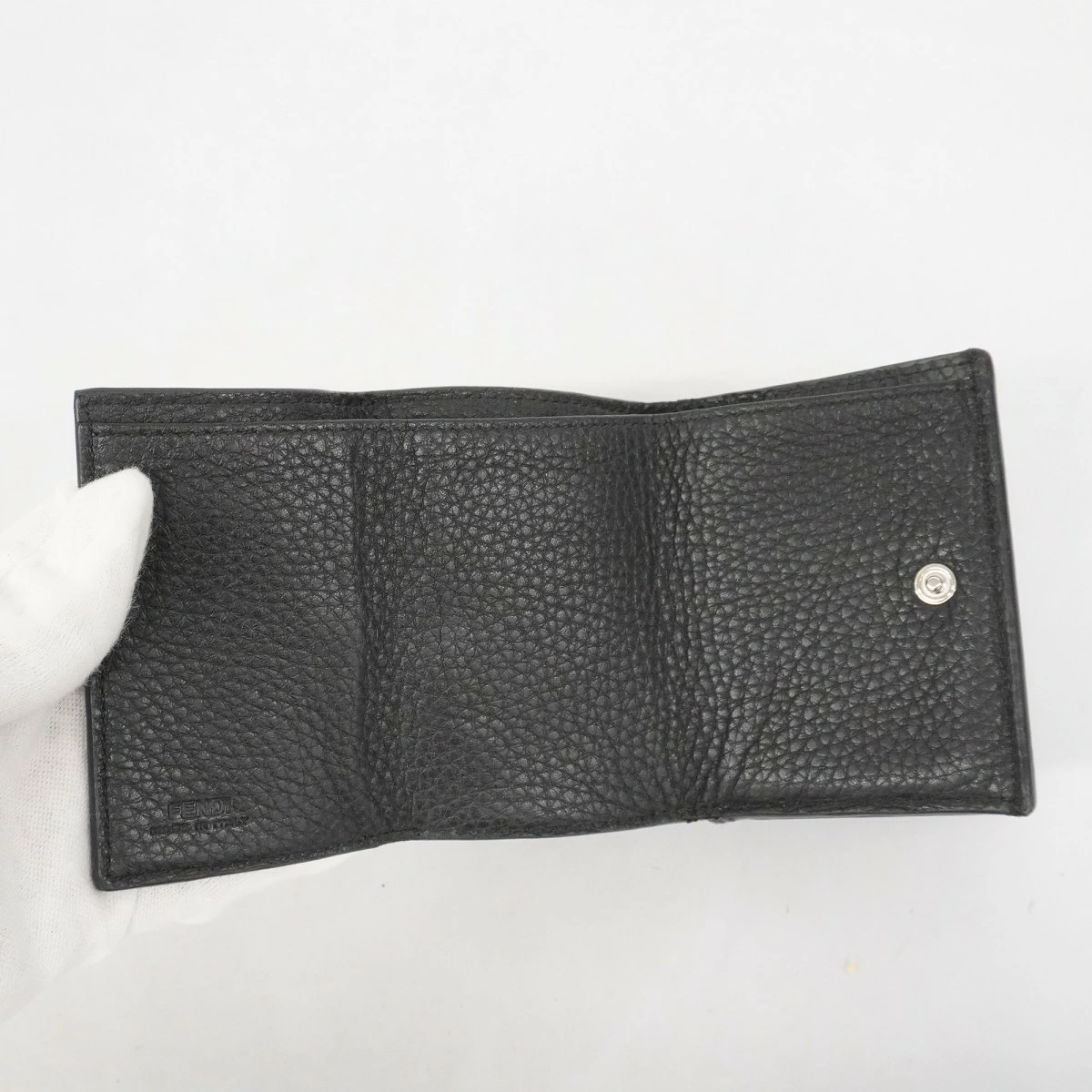 【5pb2411】フェンディ 三つ折り財布 レザー ブラック シルバー金具【中古】メンズ