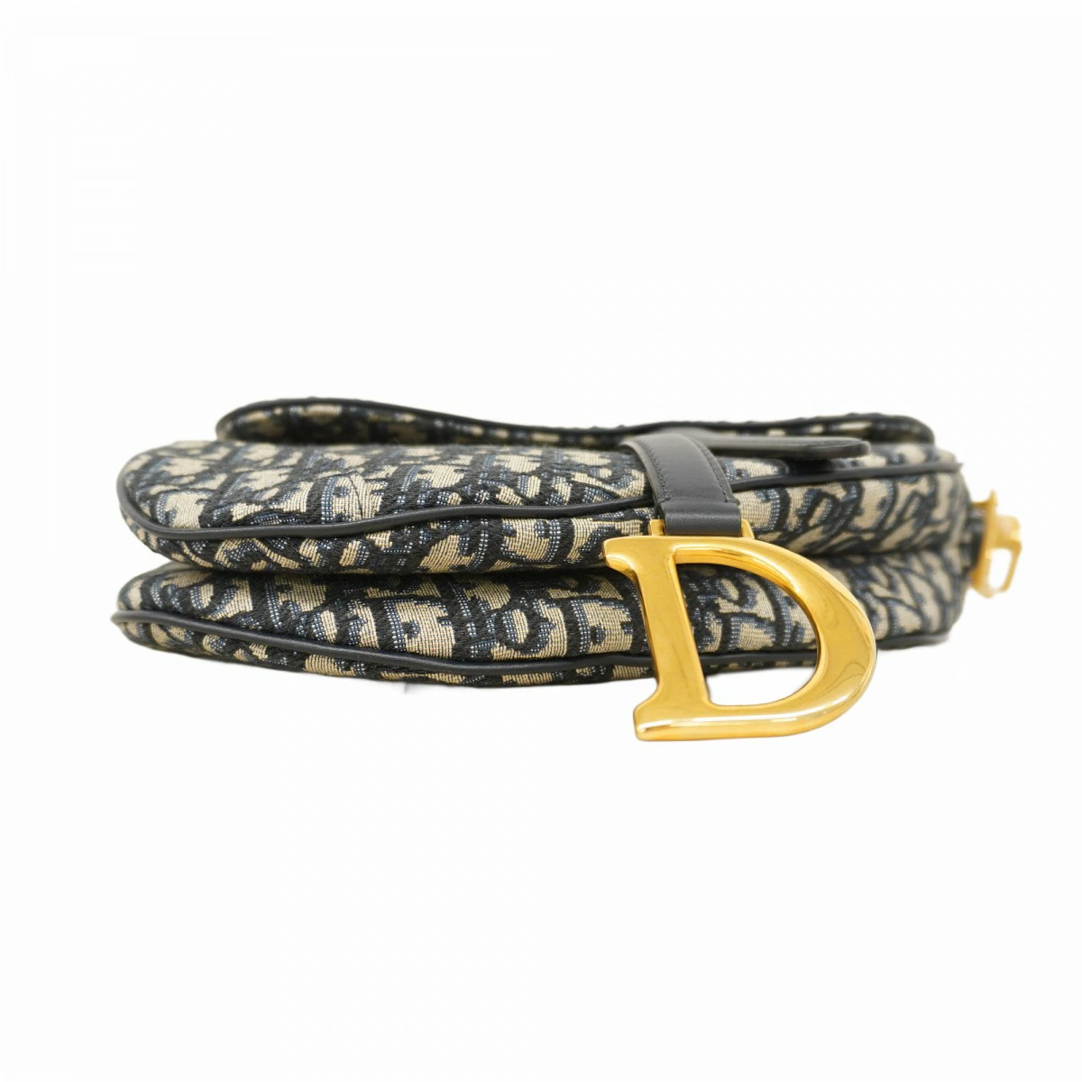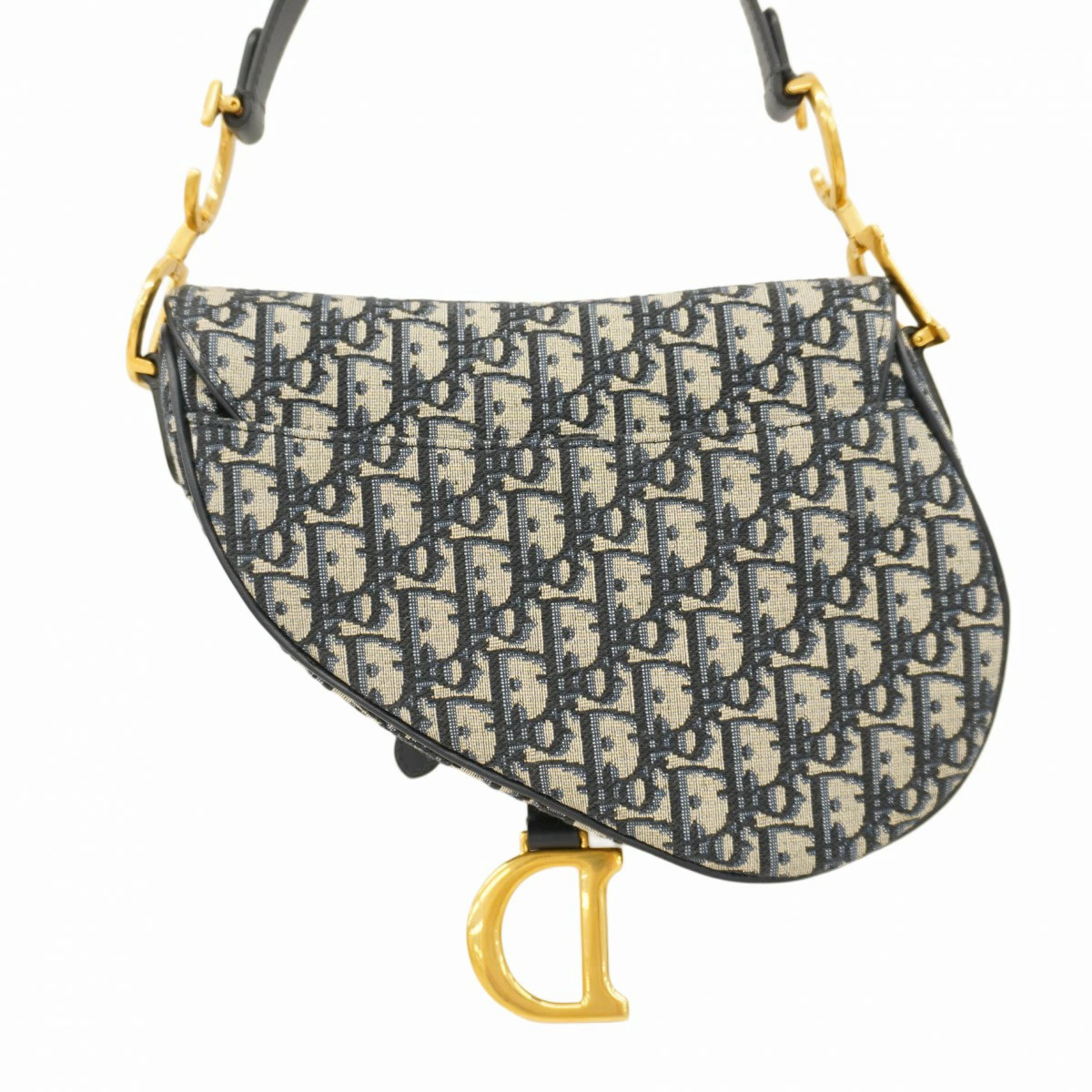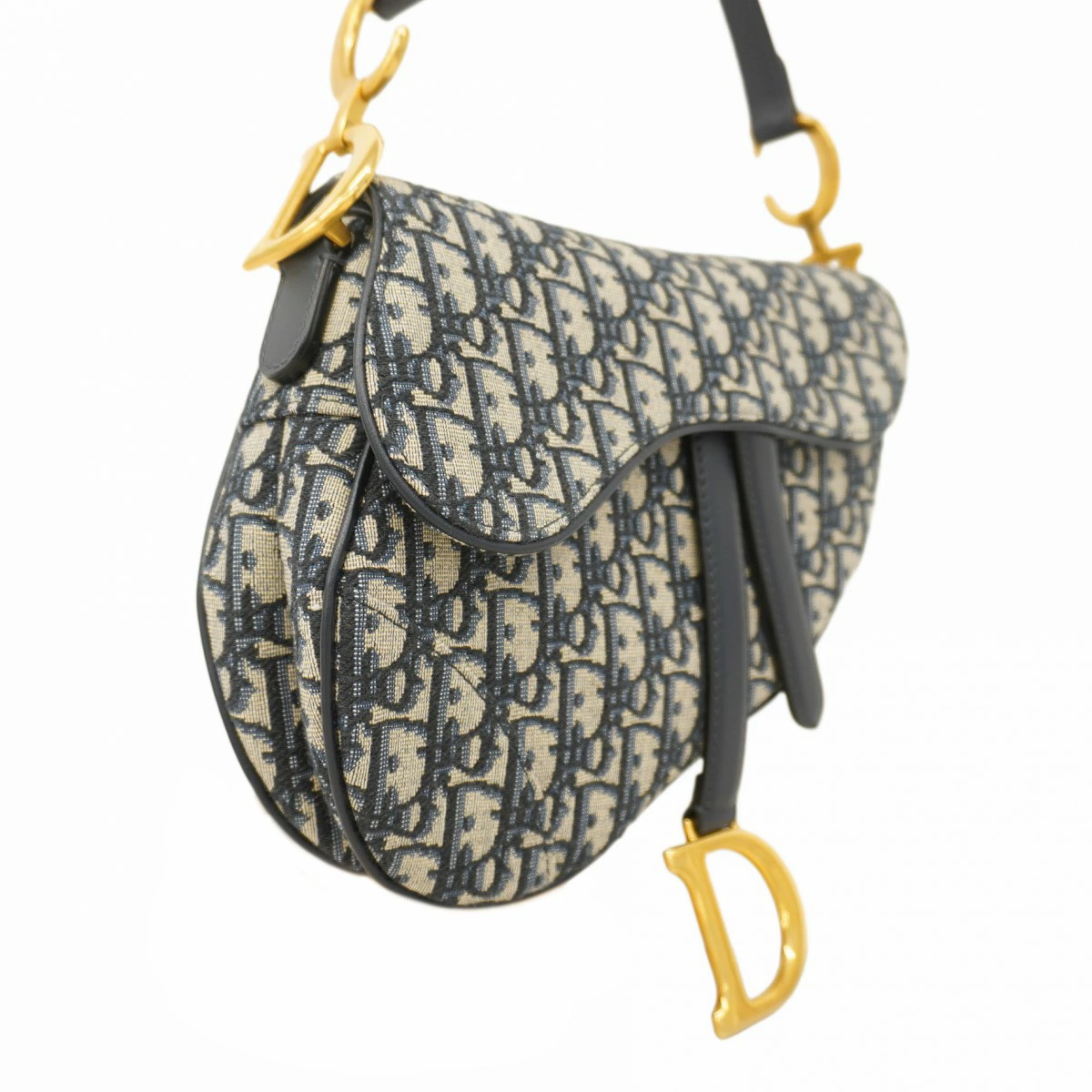 ★SALE【5pb2655】クリスチャンディオール ハンドバッグ トロッター オブリーク サドル キャンバス ネイビー ゴールド金具【中古】レディース