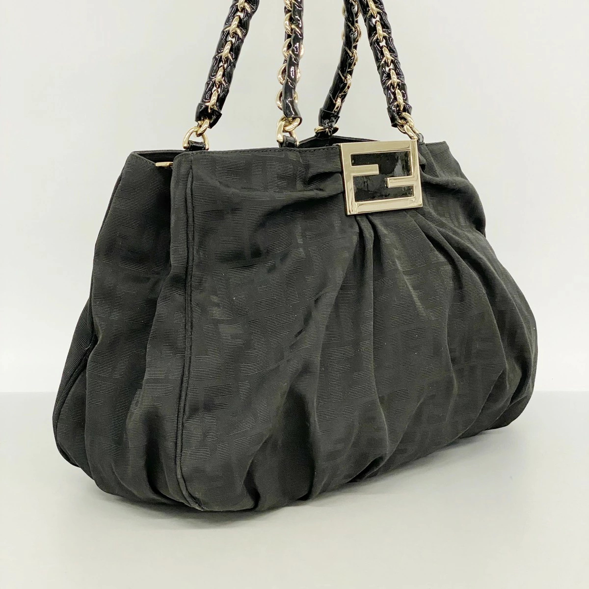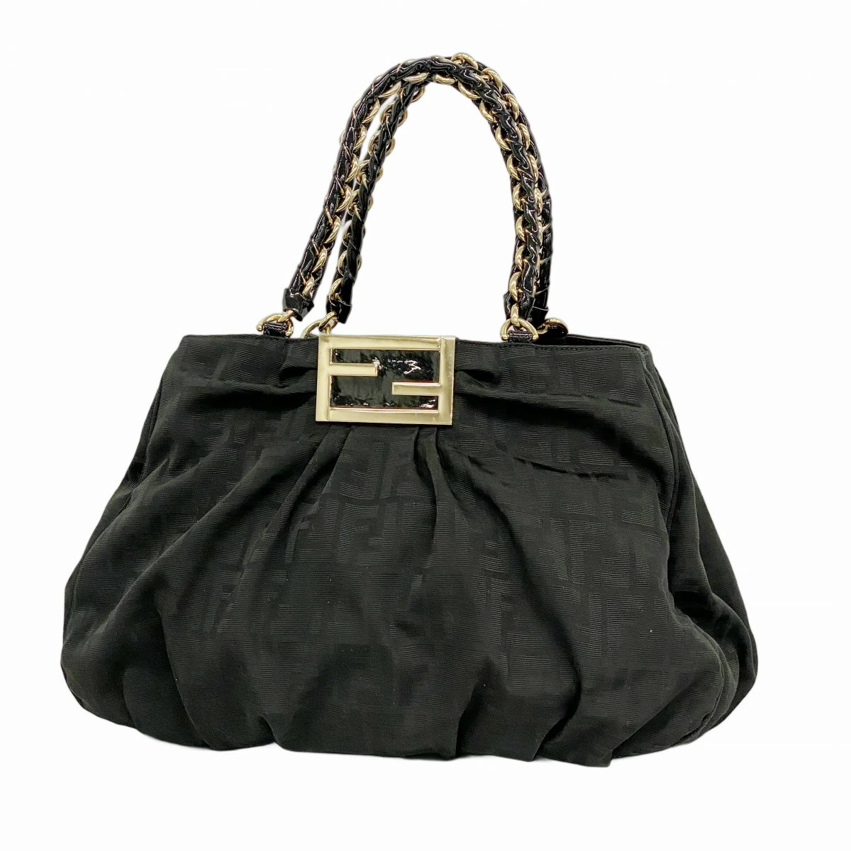 ★SALE【5pb2731】フェンディ トートバッグ ズッカ ナイロンキャンバス ブラック ゴールド金具【中古】レディース