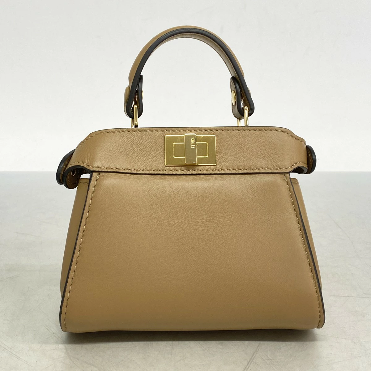 ★SALE【5pb2904】フェンディ ハンドバッグ ナノピーカブー レザー ベージュ ゴールド金具【中古】レディース