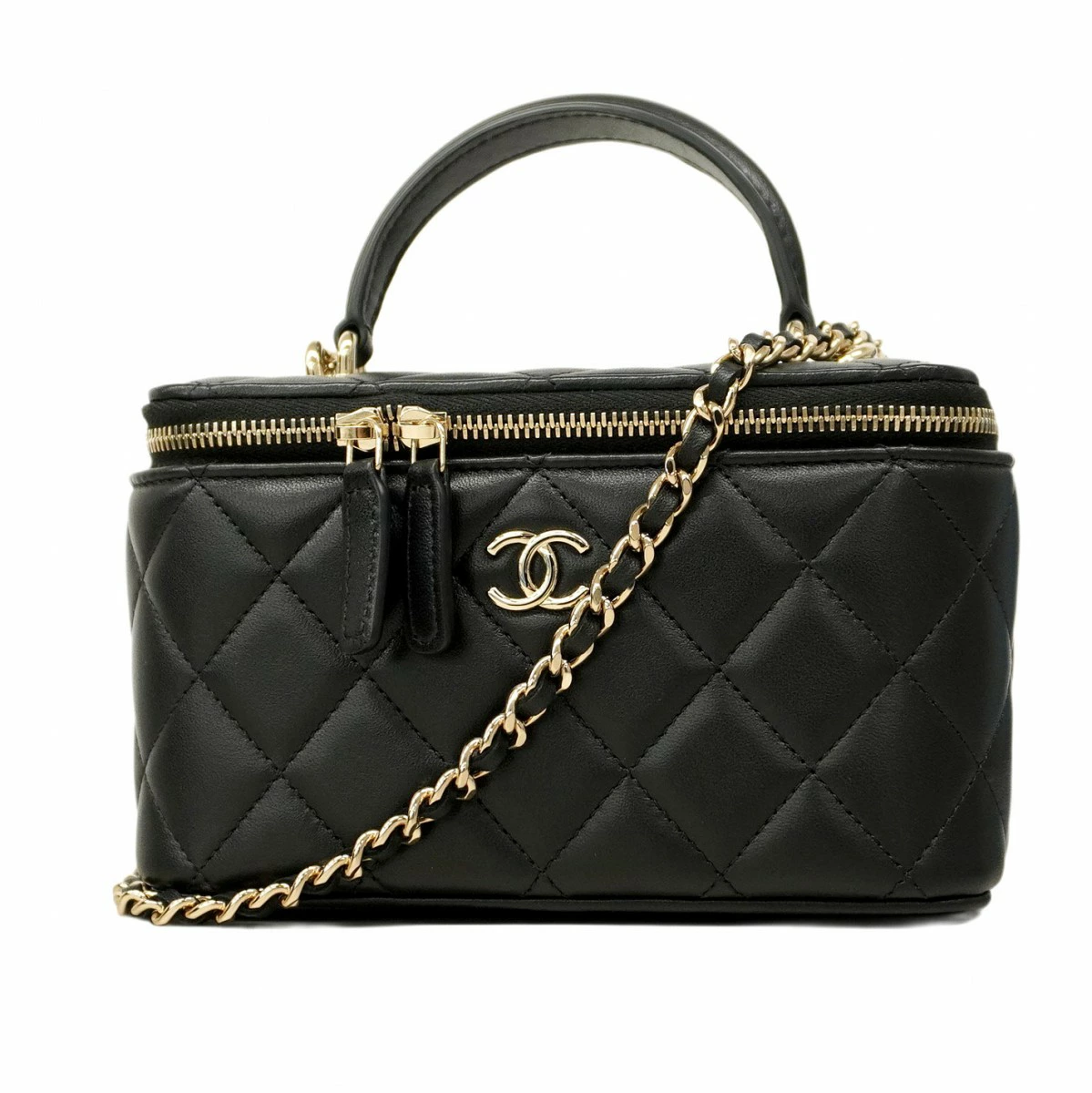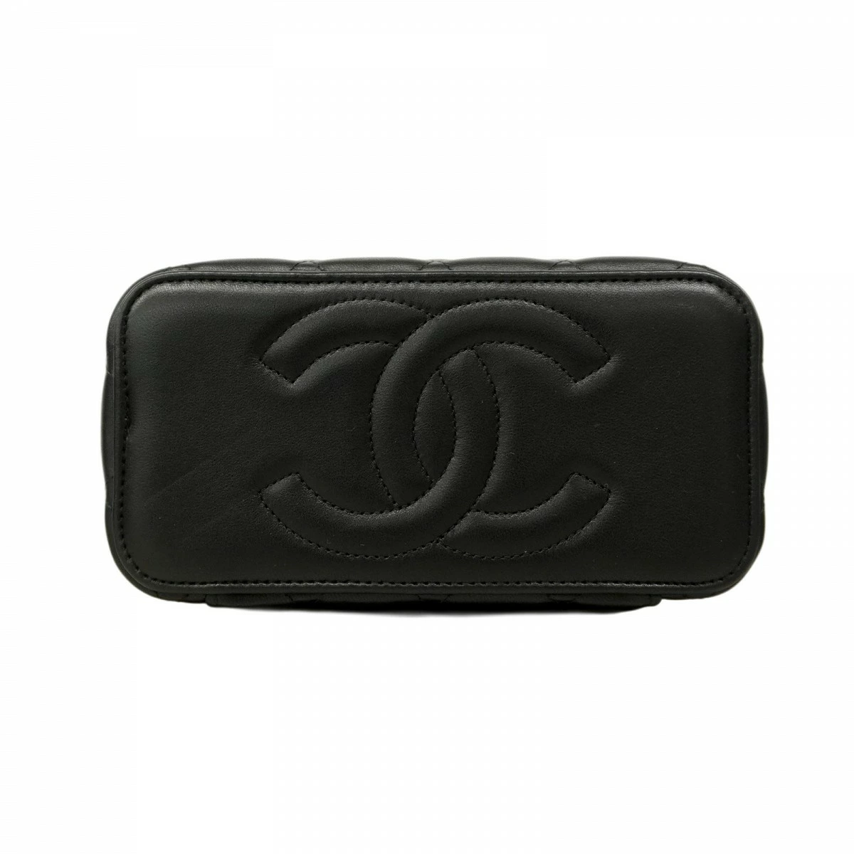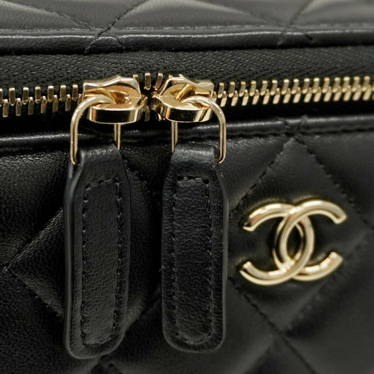 【5pb2951】シャネル バニティバッグ マトラッセ チェーンショルダー ラムスキン ブラック シャンパンゴールド金具 2wayバッグ【中古】レディース
