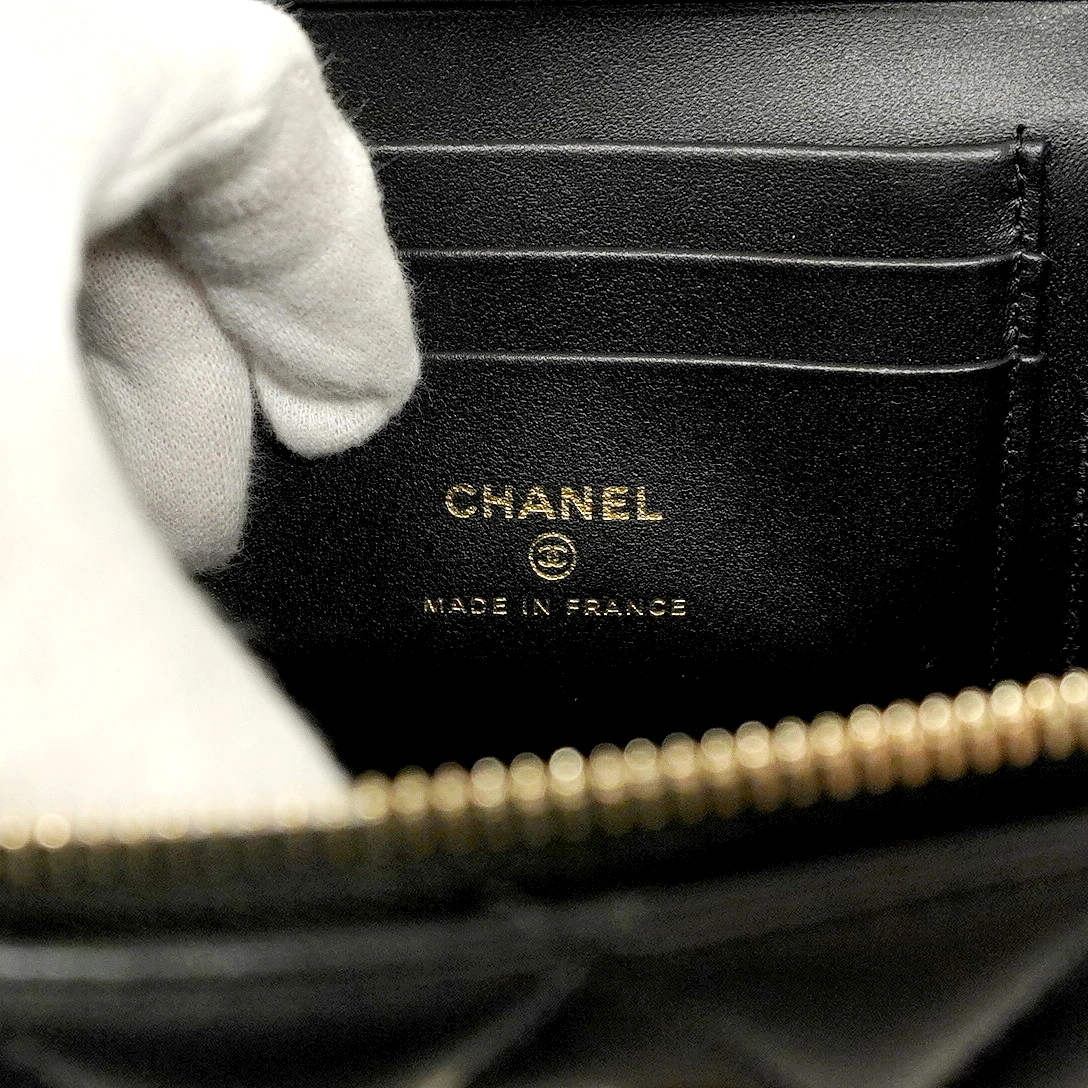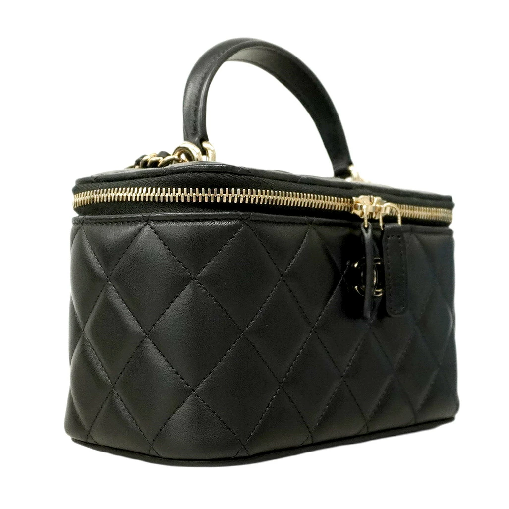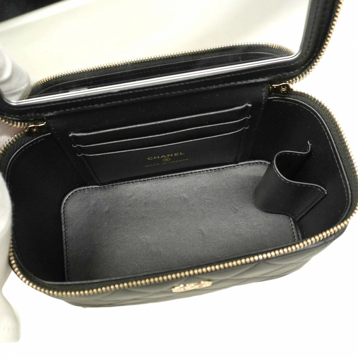 【5pb2951】シャネル バニティバッグ マトラッセ チェーンショルダー ラムスキン ブラック シャンパンゴールド金具 2wayバッグ【中古】レディース