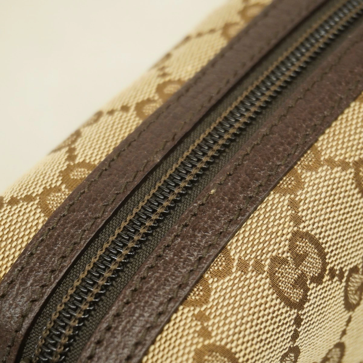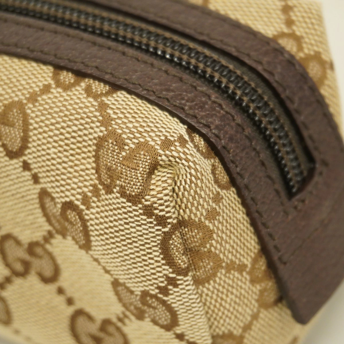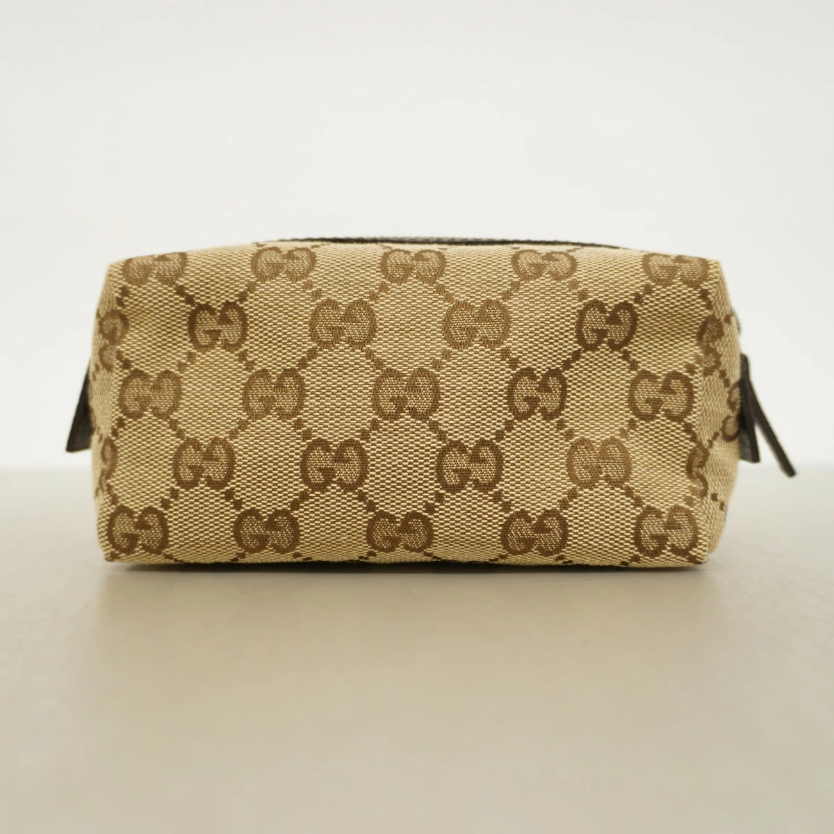【5pc3203】グッチ ポーチ GGキャンバス 29596 キャンバス ブラウン ベージュ シルバー金具【中古】レディース