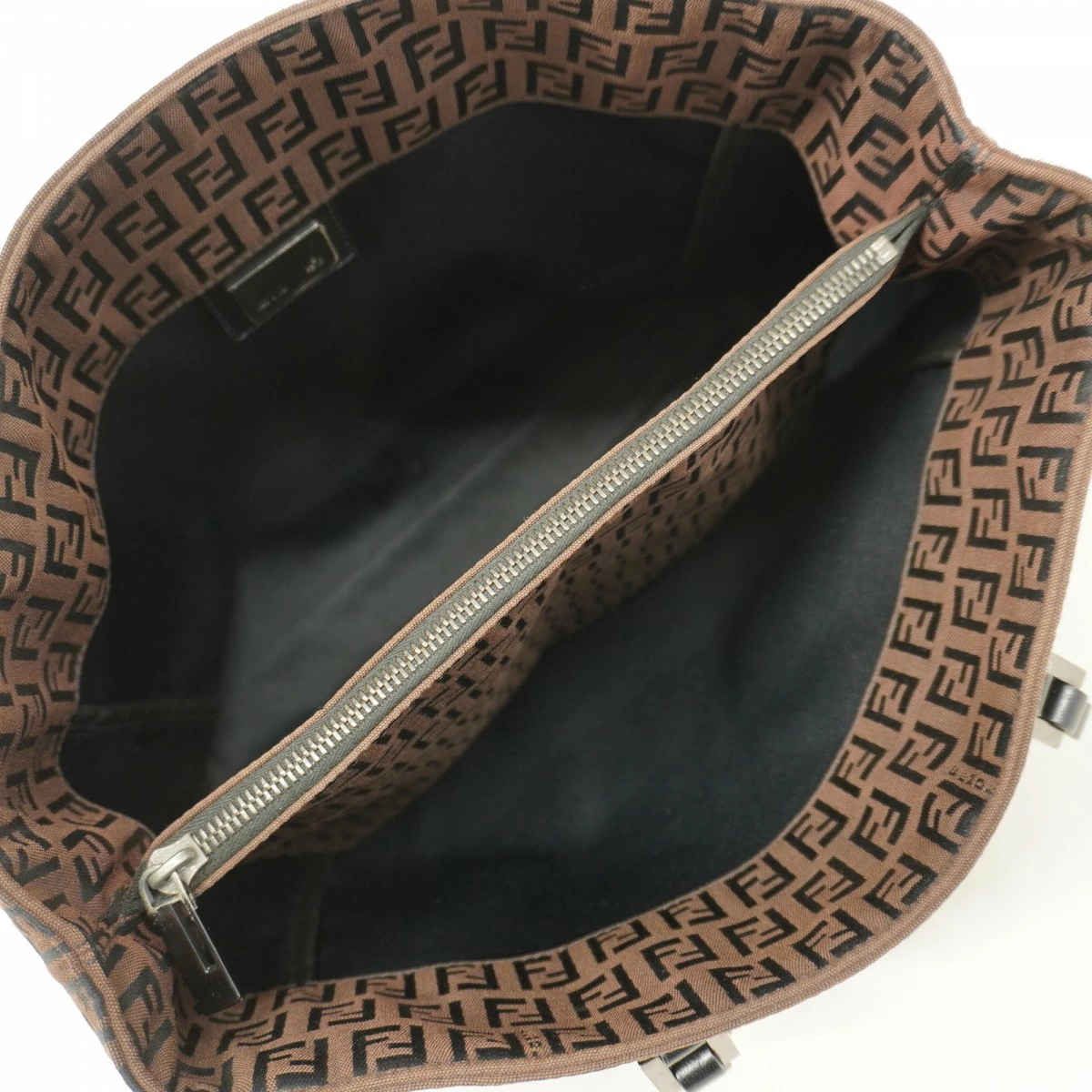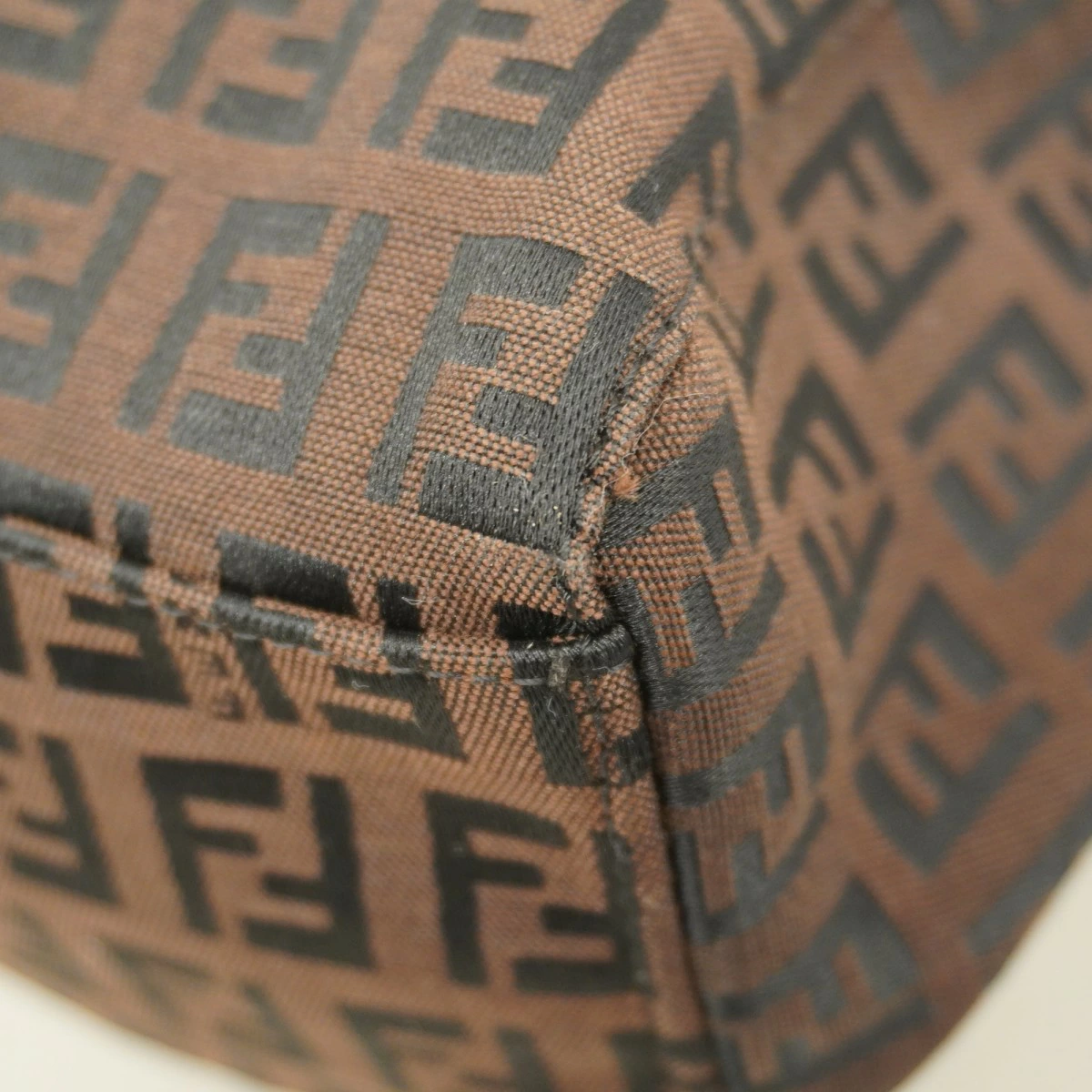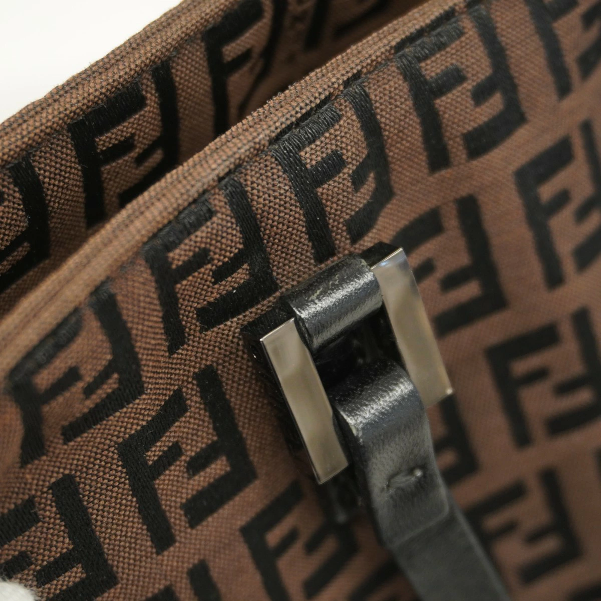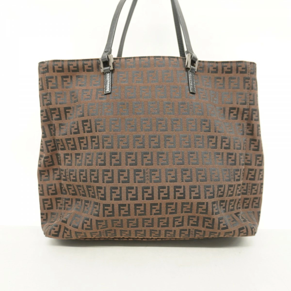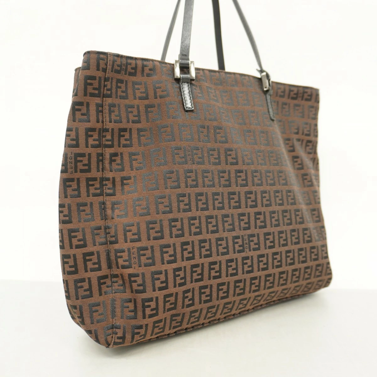 【5pc3206】フェンディ トートバッグ ズッキーノ ナイロンキャンバス ブラウン シルバー金具【中古】レディース
