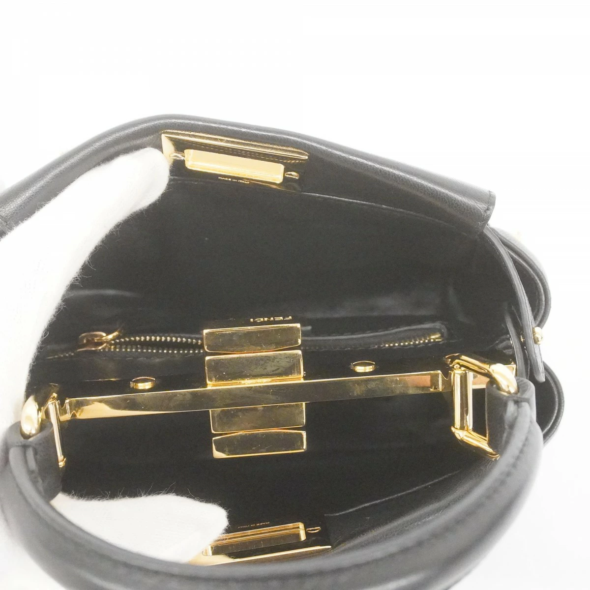★SALE【5pc3354】フェンディ ハンドバッグ ピーカブーXS レザー ブラック ゴールド金具【中古】レディース