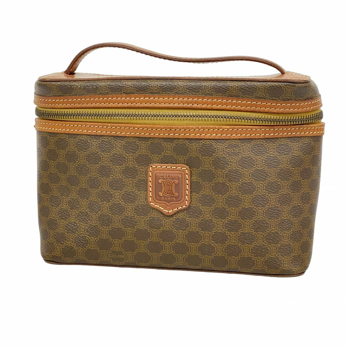 【5pc3498】セリーヌ バニティバッグ マカダム PVC ブラウン ゴールド金具【中古】レディース