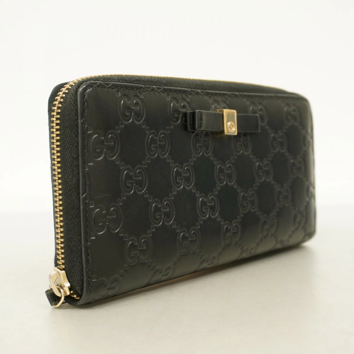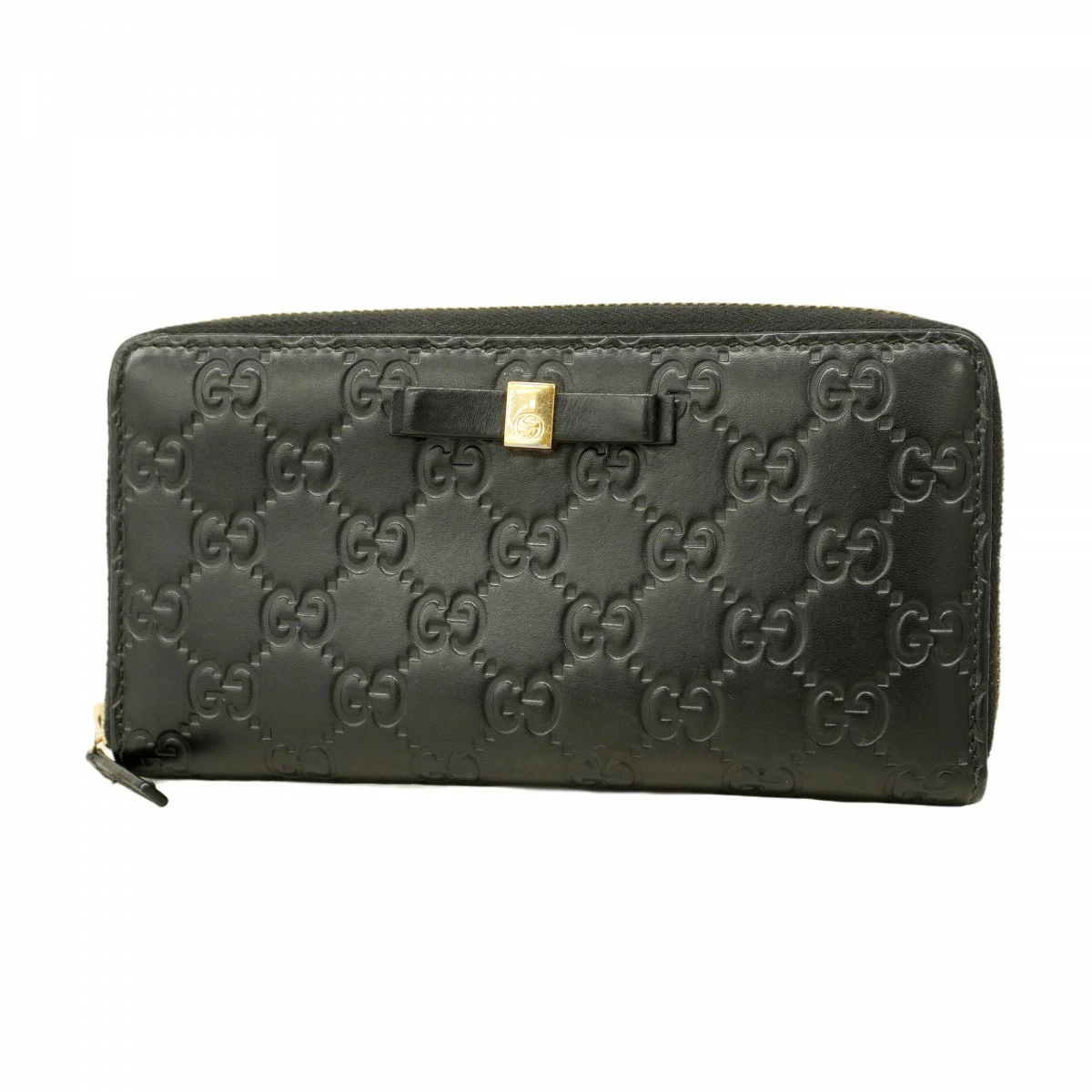 【5pc3872-k】グッチ 長財布 グッチシマ 388680 レザー ブラック ゴールド金具【中古】レディース