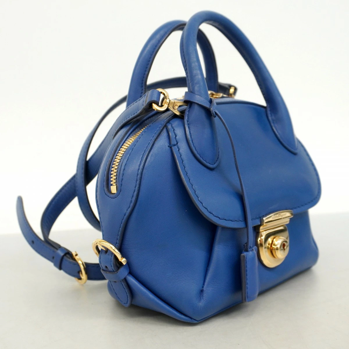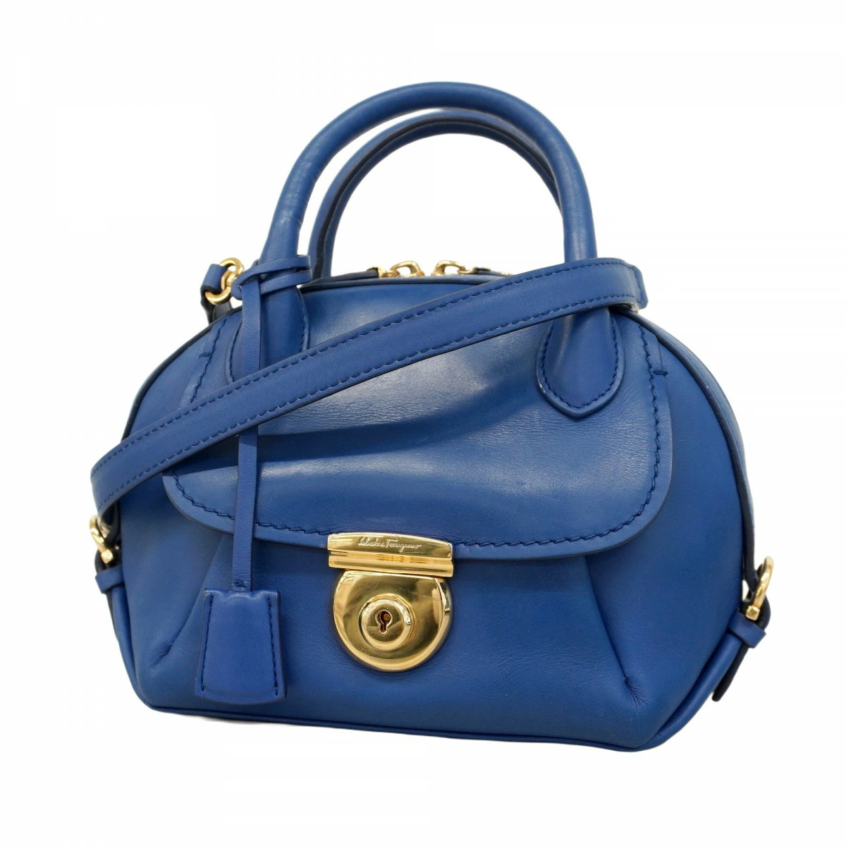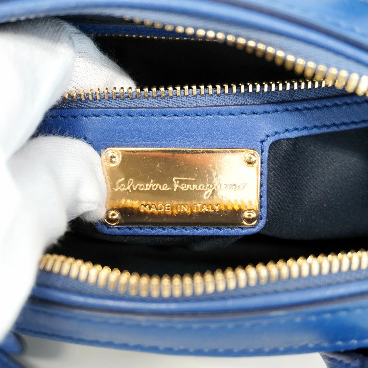 【5pc3941】サルヴァトーレフェラガモ ハンドバッグ フィアンマ レザー ブルー ゴールド金具 2wayバッグ【中古】レディース