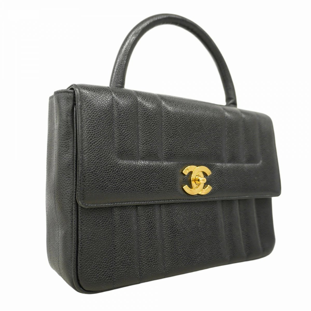 ★SALE【5pc3993】シャネル ハンドバッグ マドモアゼル キャビアスキン ブラック ゴールド金具【中古】レディース