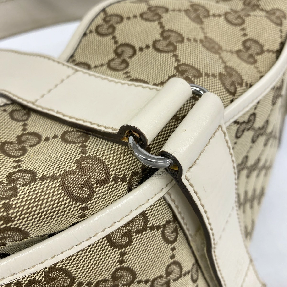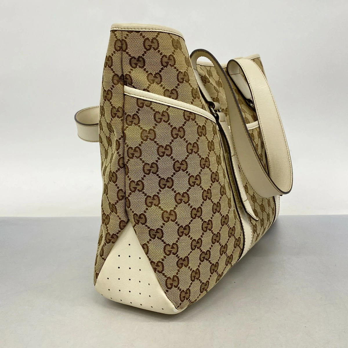 ★SALE【5pc4032-k】グッチ トートバッグ GGキャンバス 153238 キャンバス ブラウン ホワイト シルバー金具【中古】レディース