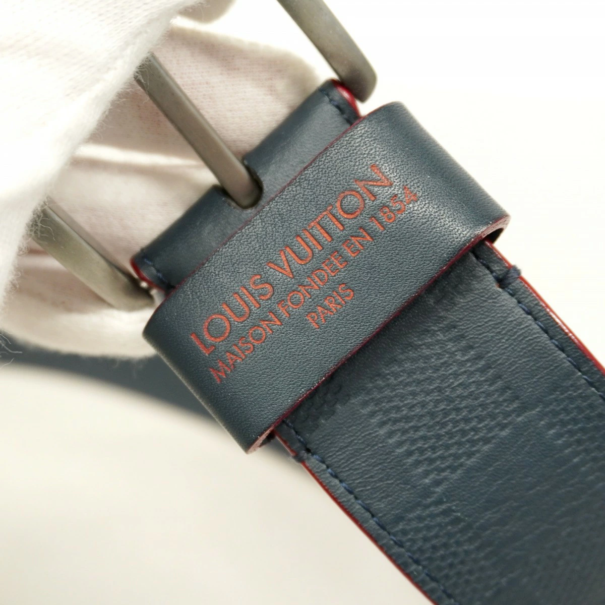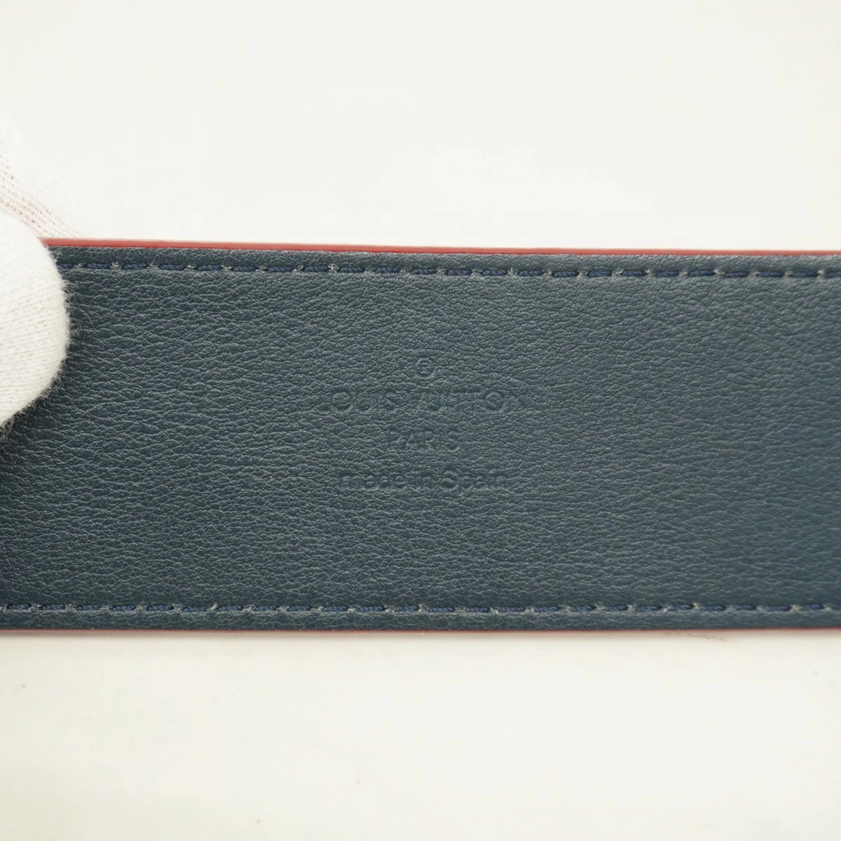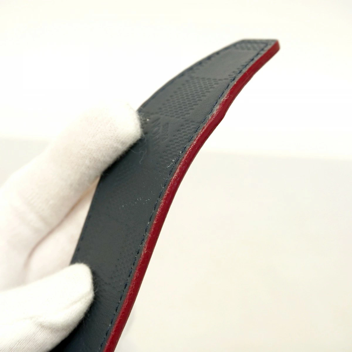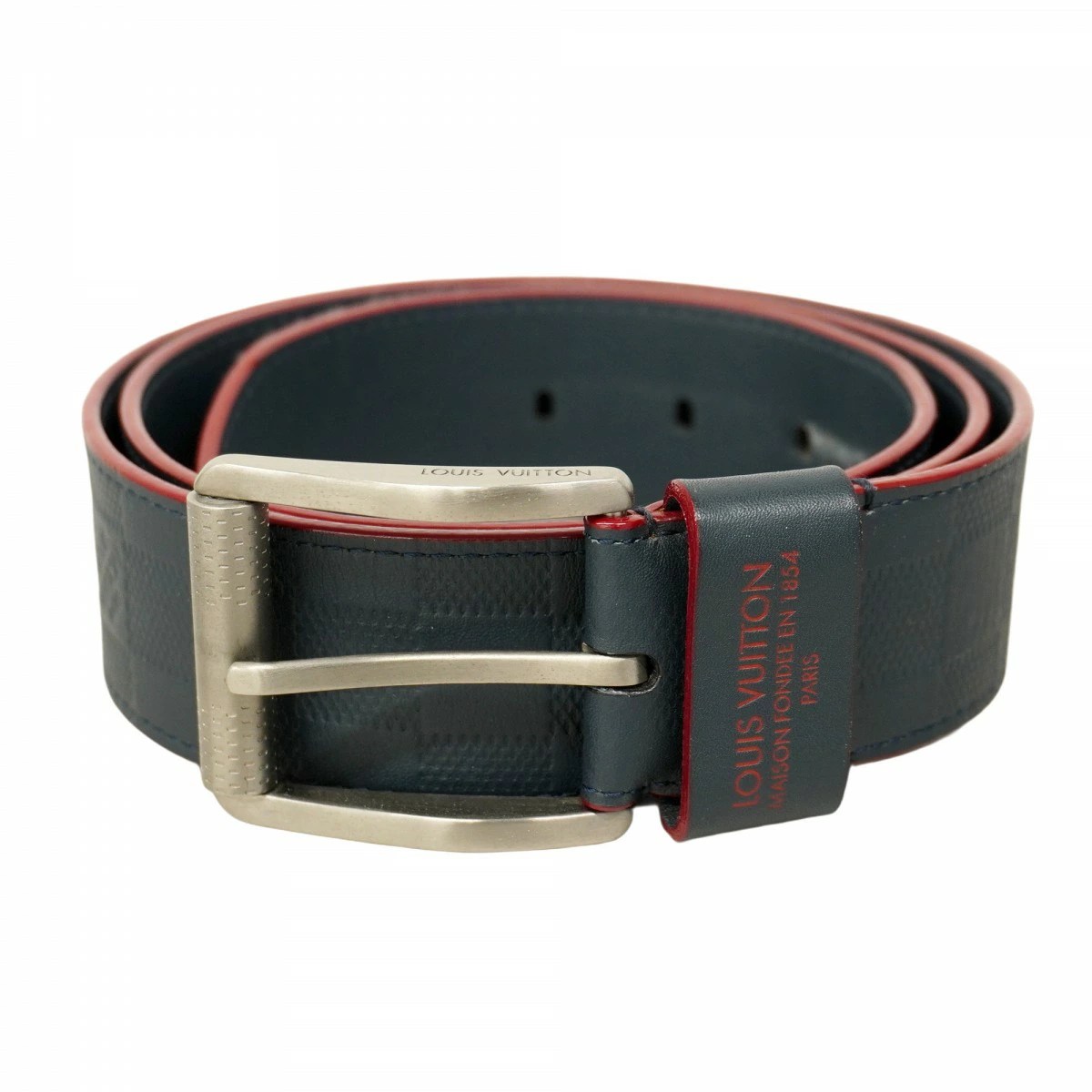【5pc4129-k】ルイヴィトン ベルト ダミエ・アンフィニ パターンベルト M9008 ネイビー レッド【中古】メンズ
