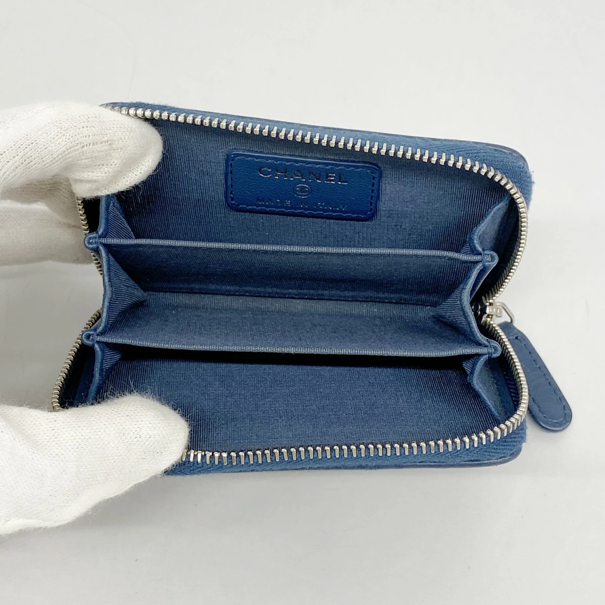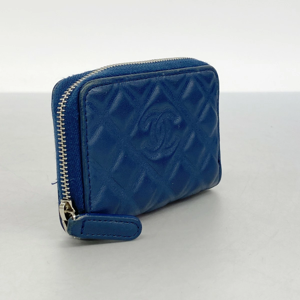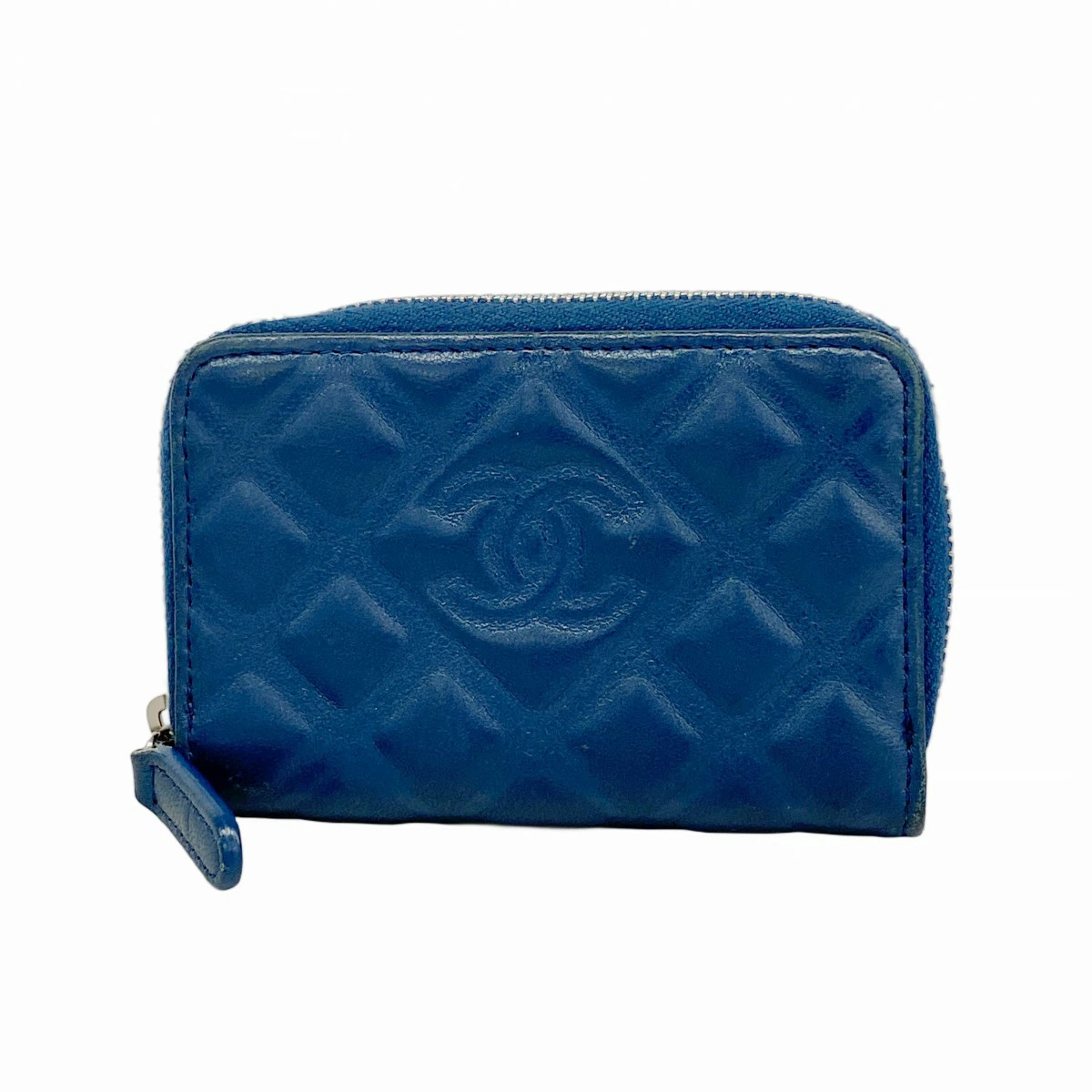 【5pd4777-k】シャネル コインケース マトラッセ ラムスキン ブルー シルバー金具【中古】レディース