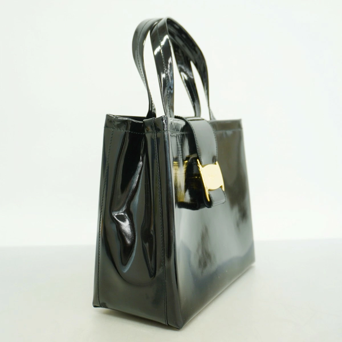 【5pd4968-r】サルヴァトーレフェラガモ ハンドバッグ ヴァラ パテントレザー ブラック ゴールド金具 2wayバッグ【中古】レディース