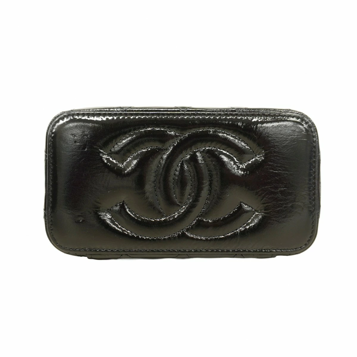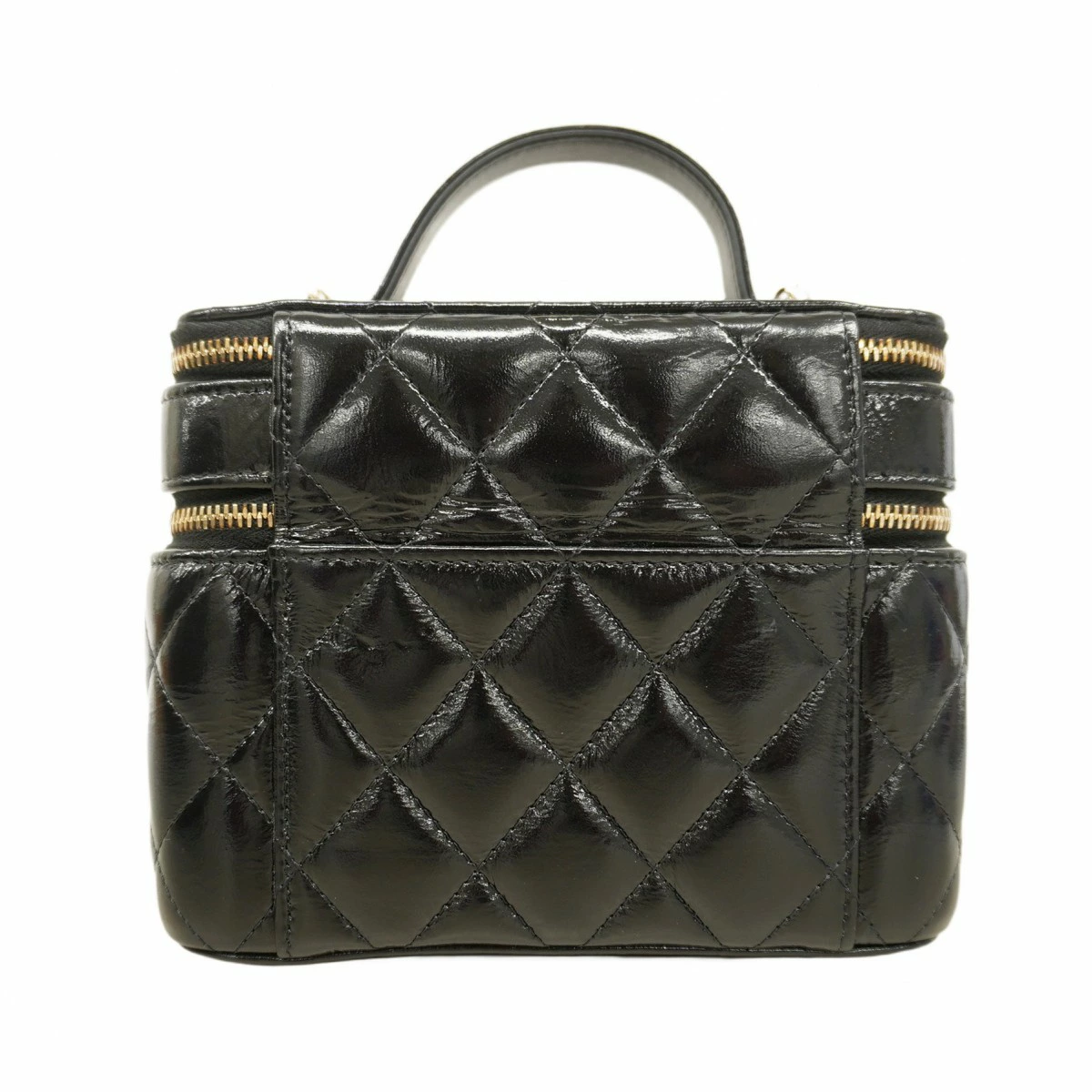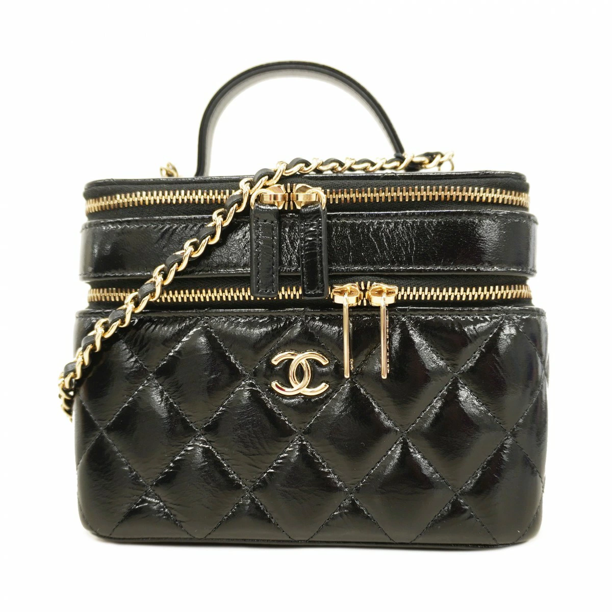 【5pd5747】シャネル バニティバッグ マトラッセ チェーンショルダー シャイニーラムスキン ブラック シャンパンゴールド金具【中古】レディース