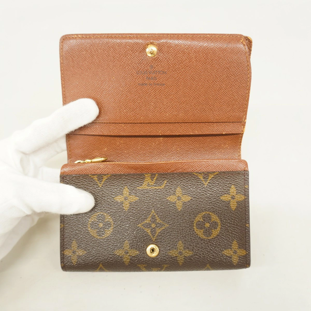 【5pd6328-k】ルイヴィトン 財布 モノグラム ポルトモネビエトレゾール M61730 ブラウン【中古】レディース