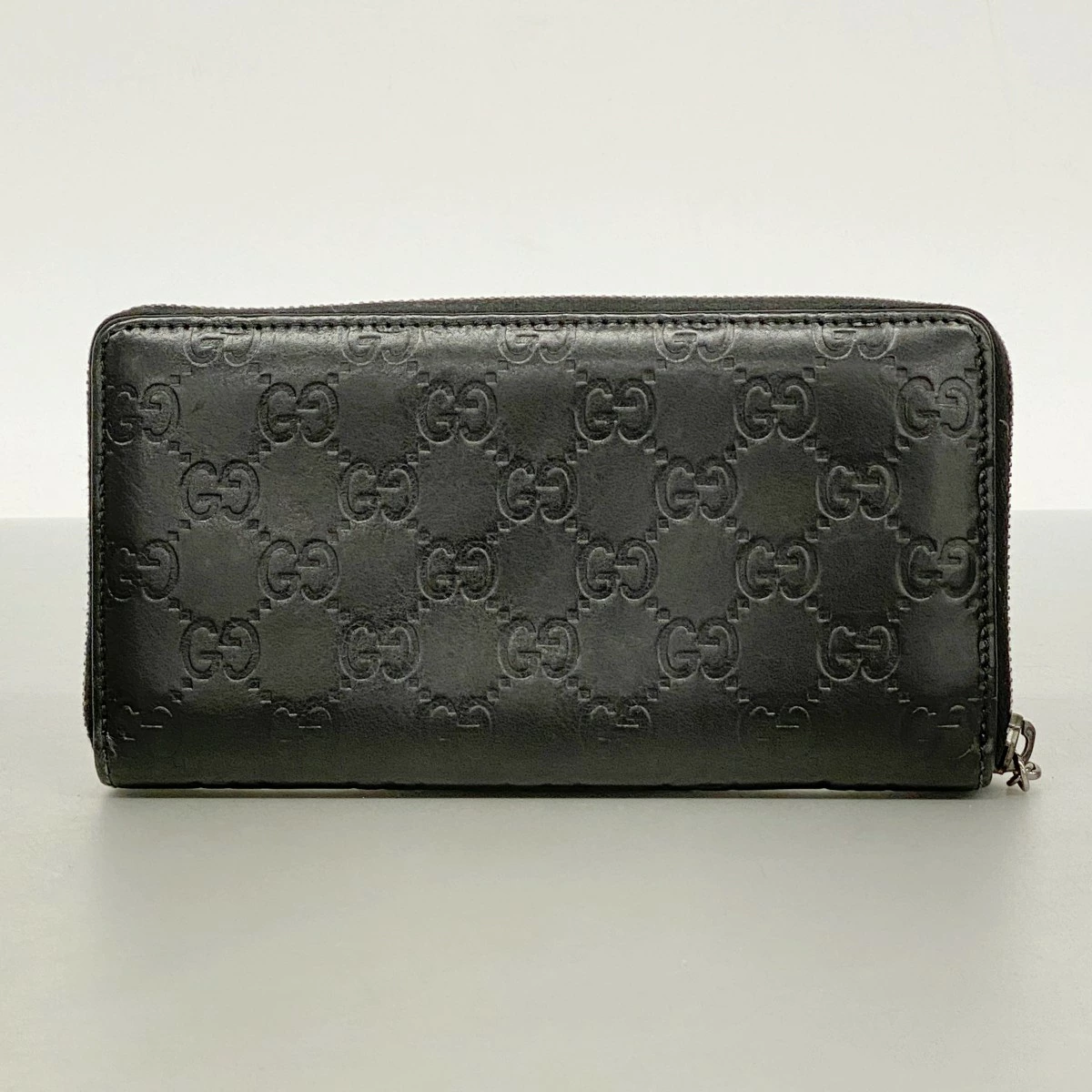 【5pd6380-k】グッチ 長財布 グッチシマ 224246 レザー ブラック シルバー金具【中古】レディース