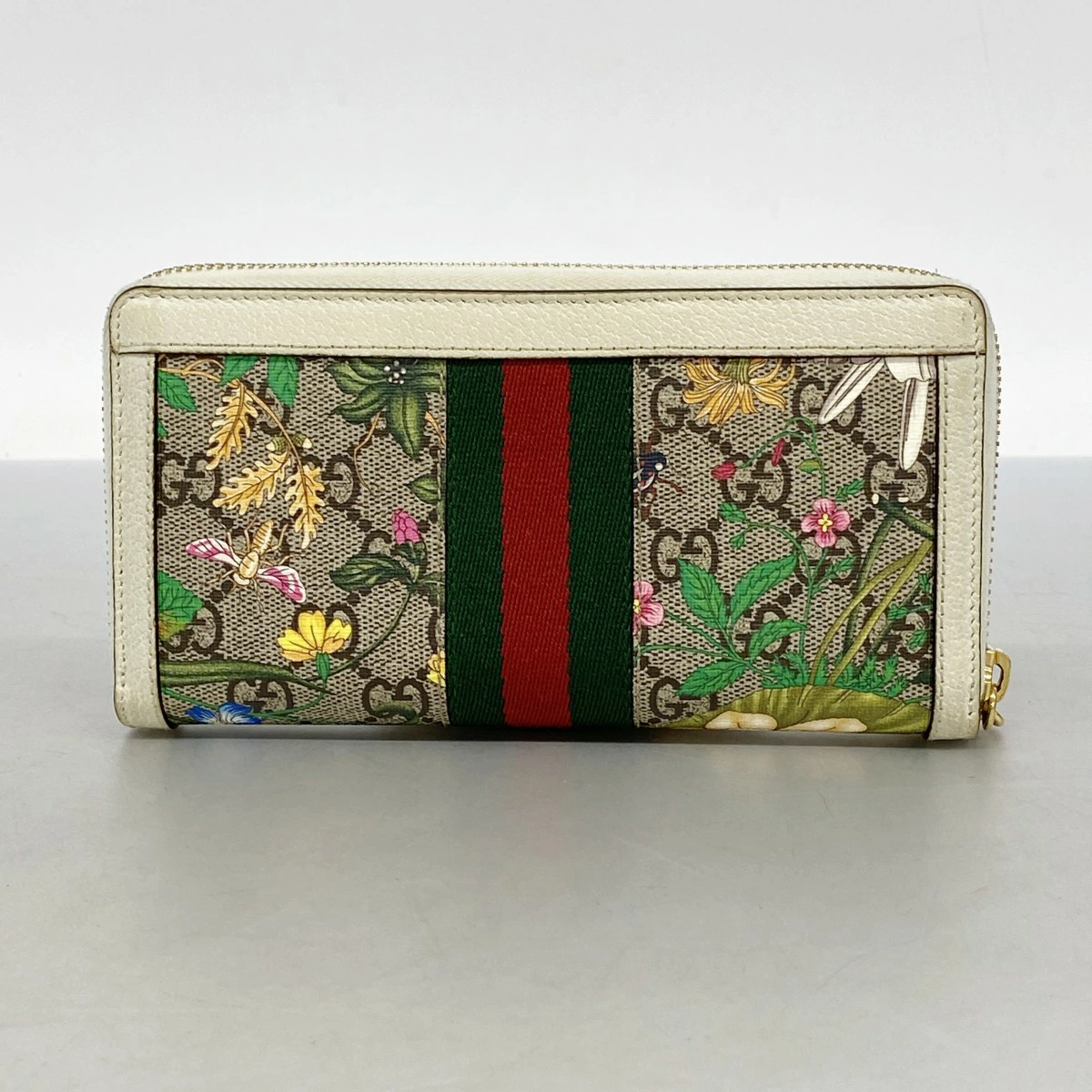 【5pd6381-k】グッチ 長財布 オフィディア GGフローラ 523154 PVC ベージュ マルチカラー ゴールド金具【中古】レディース