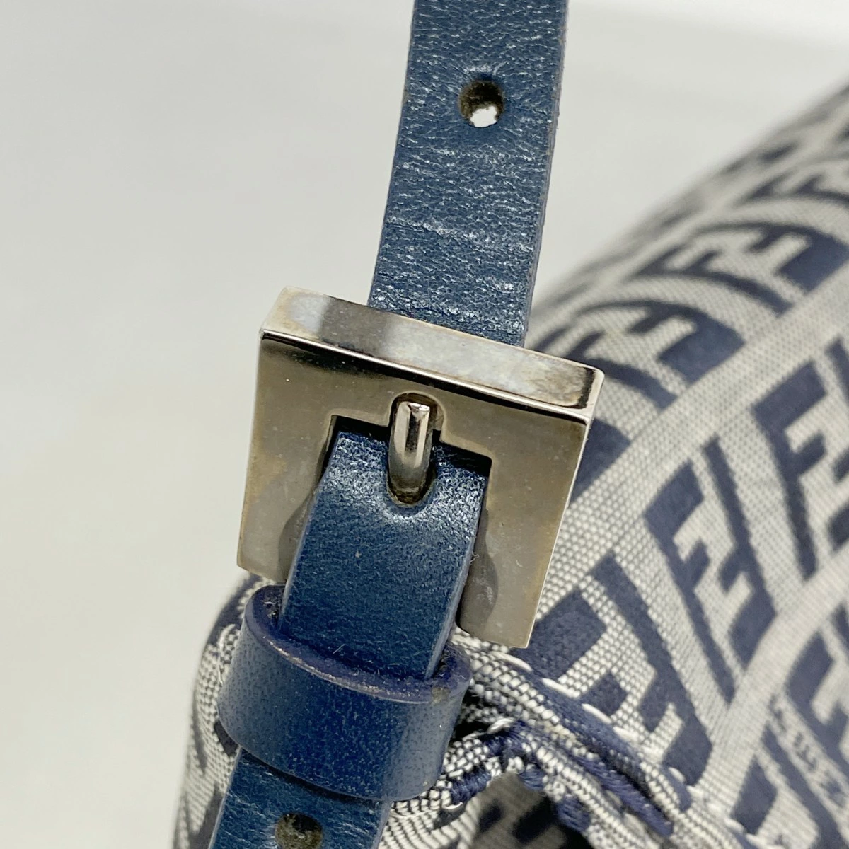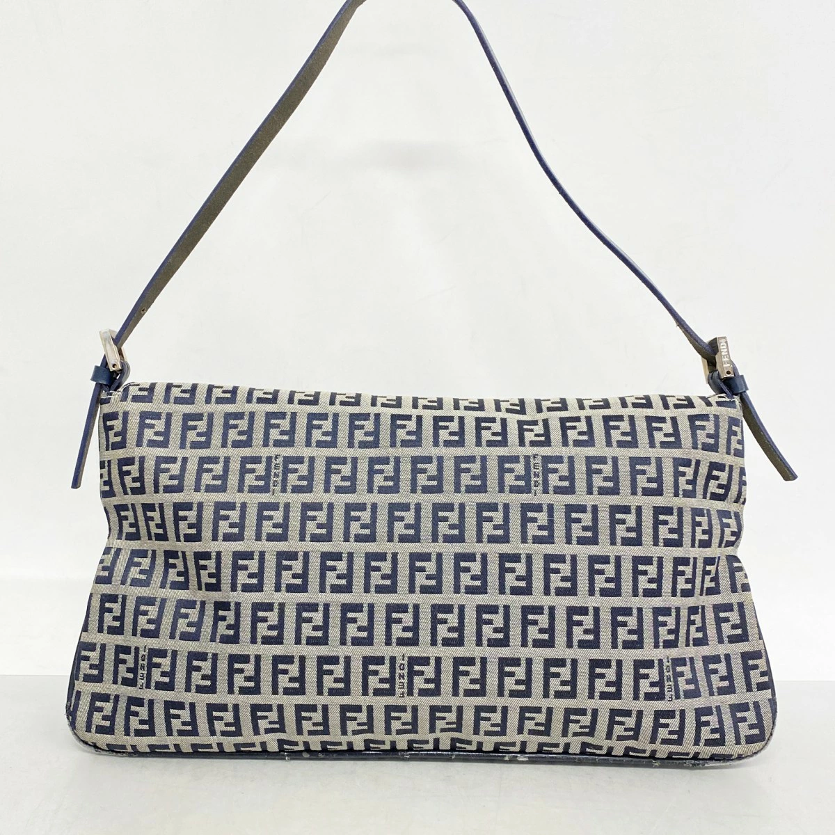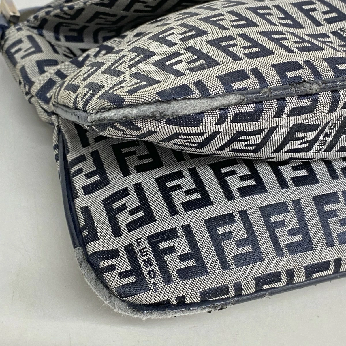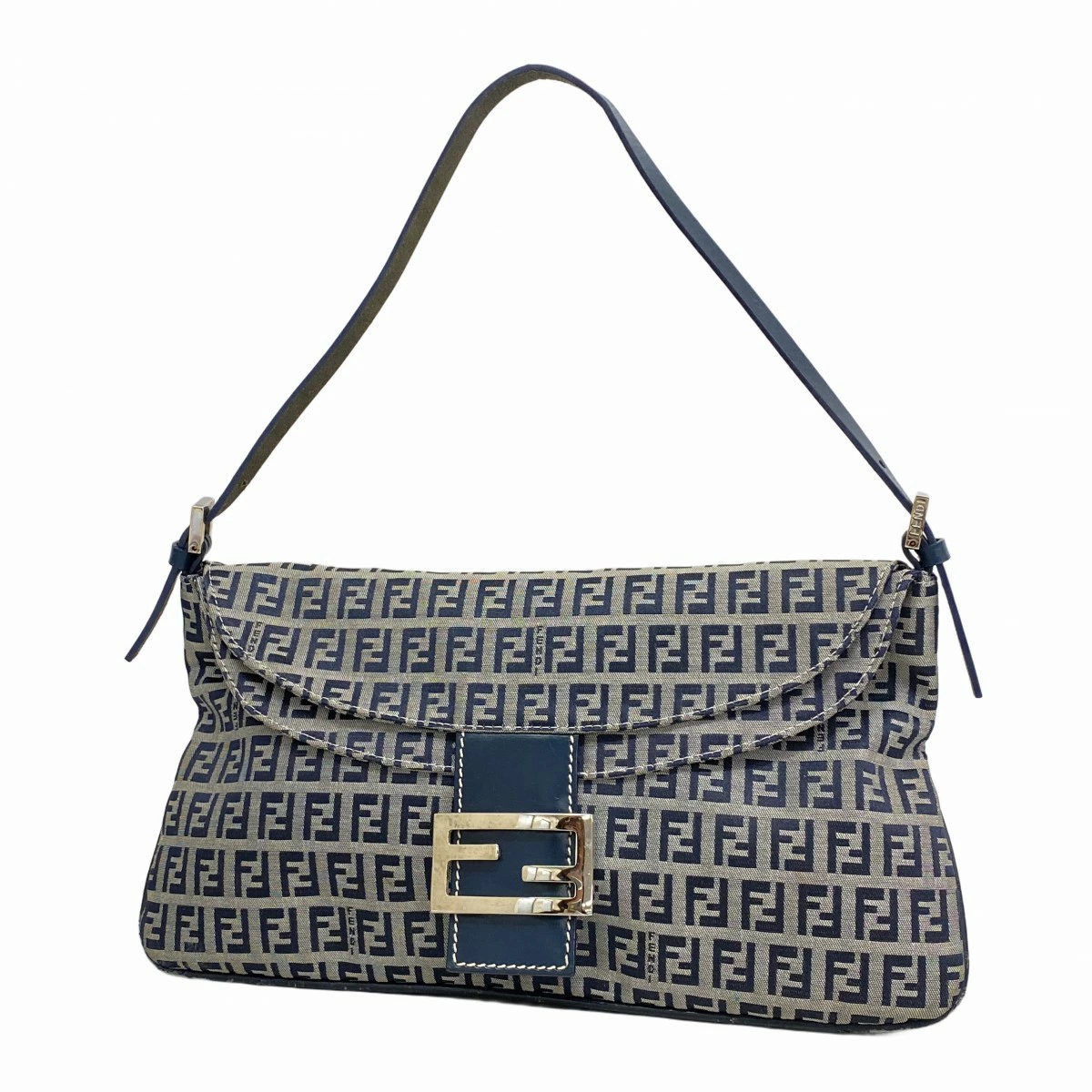 【5pd6492】フェンディ ハンドバッグ ズッキーノ ナイロンキャンバス ネイビー シルバー金具【中古】レディース