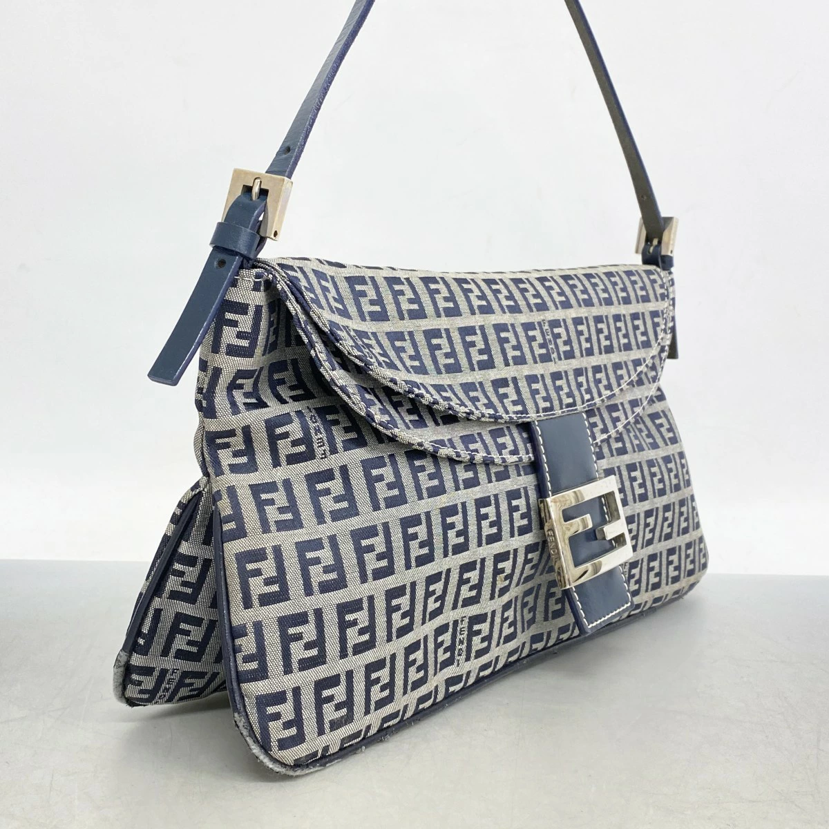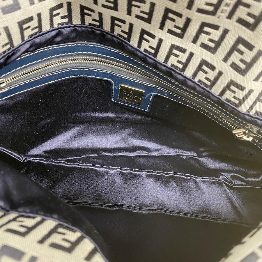 [5pd6492] Fendi Zucchino Handbag, Navy Blue, Nylon Canvas, Silver Hardware, Pre-owned, Women's