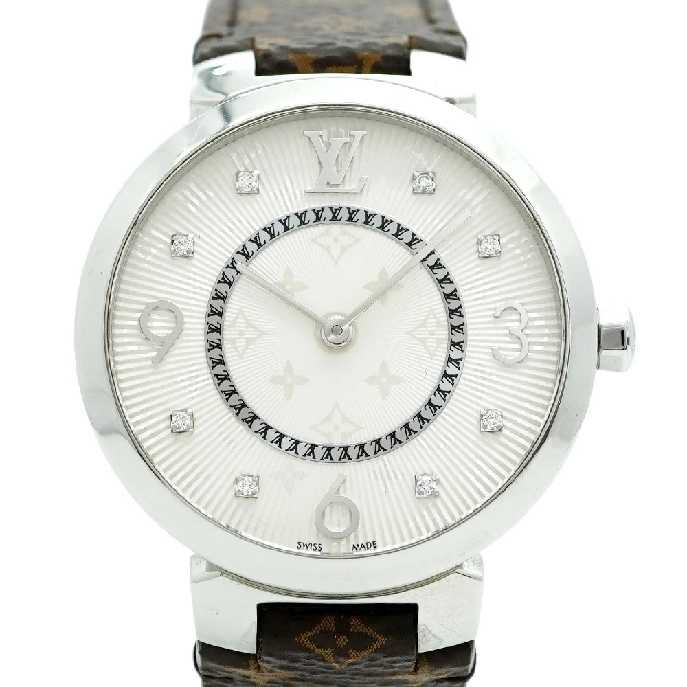 【5wwp0332】ルイヴィトン タンブール Q13MJ シルバー文字盤【中古】腕時計 レディース