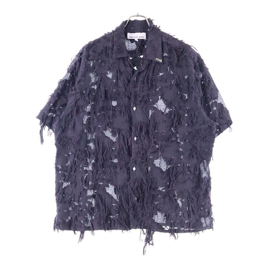 [モデル]CUT JACQUARD HALF SHIRT カットジャガード フリンジ 半袖シャツ パープル