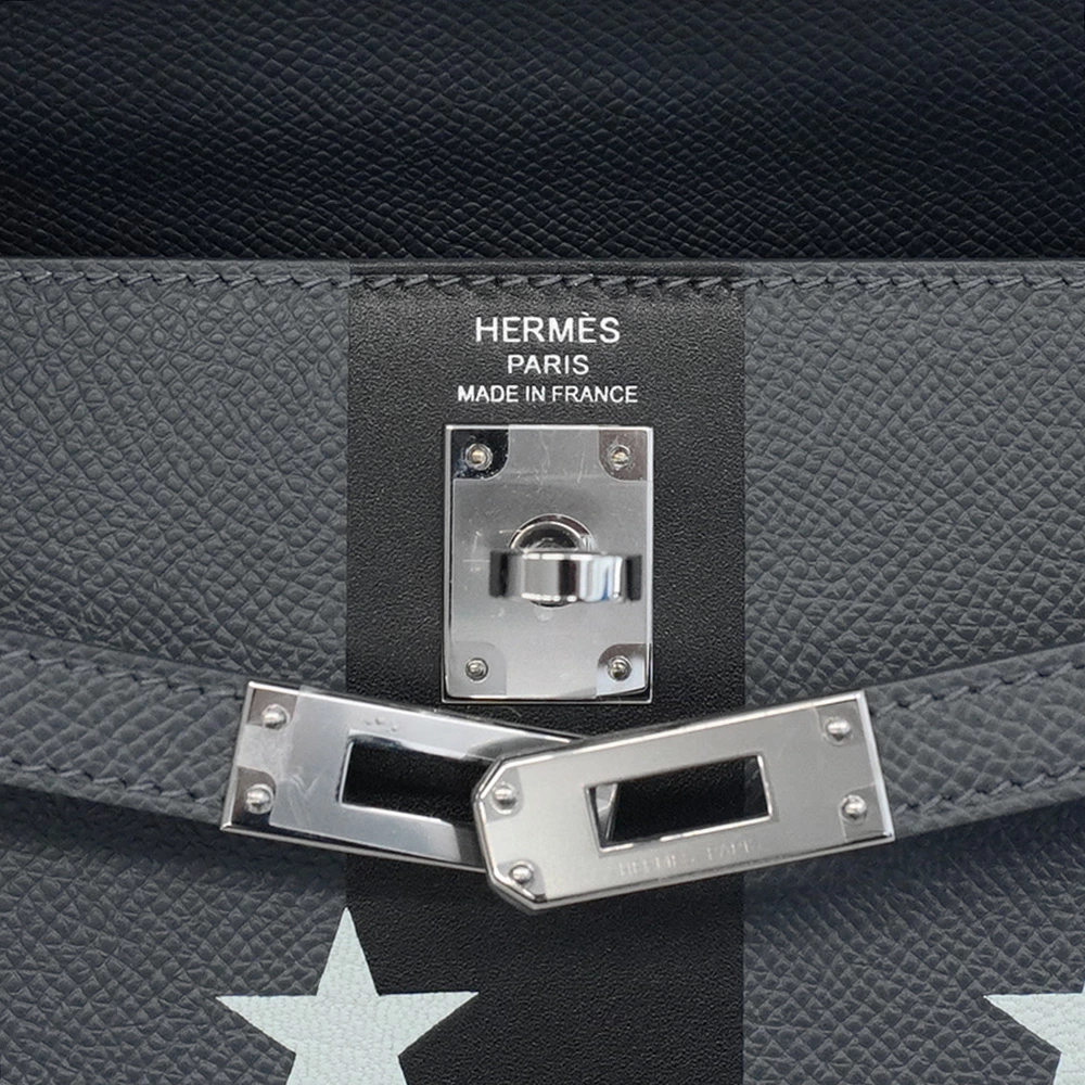 ★SALE【6bb1890-g】エルメス ハンドバッグ ケリー25 カザック エトワール ヴォーエプソン アルドワーズ/ブラック/ヴェールペパーミント シルバー金具 W刻印 2wayバッグ【中古】レディース